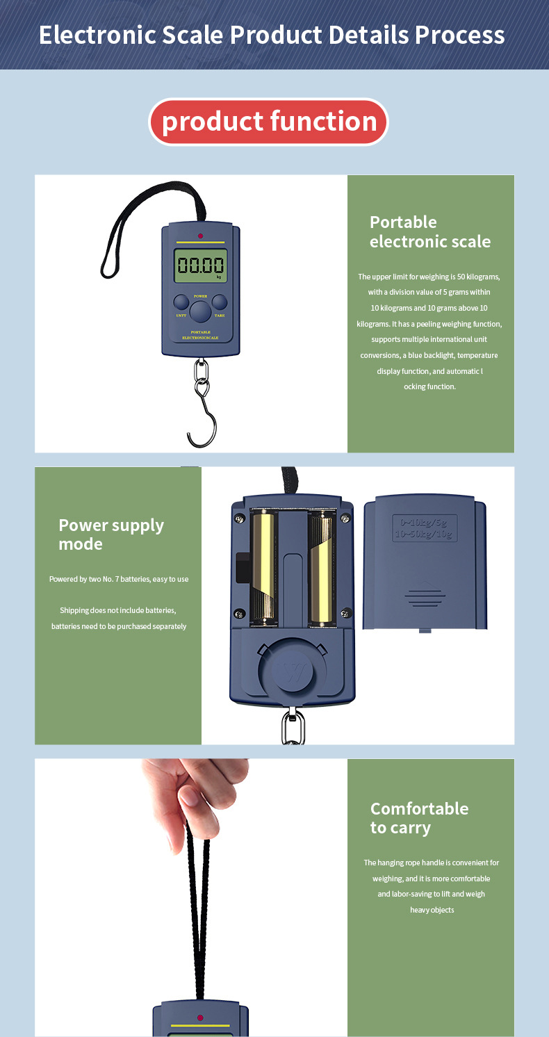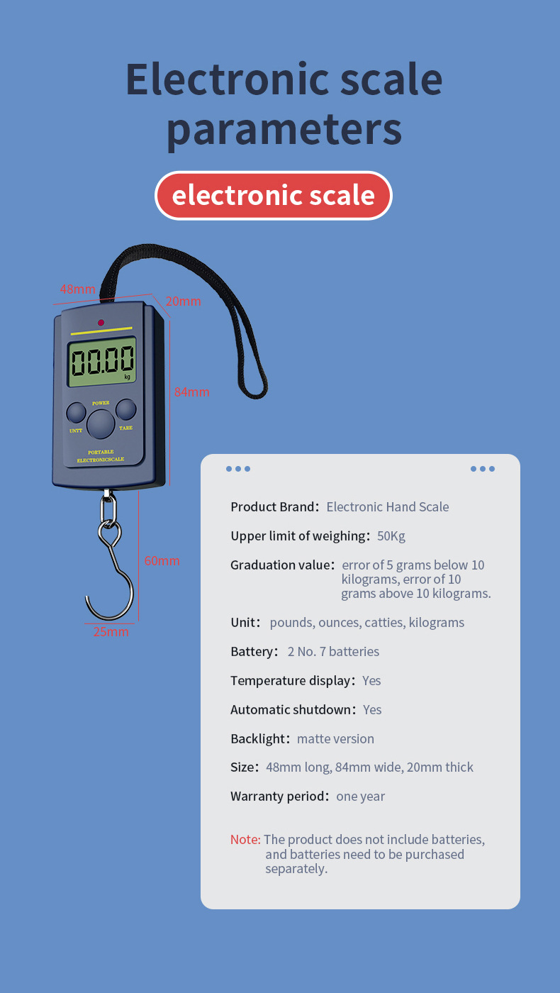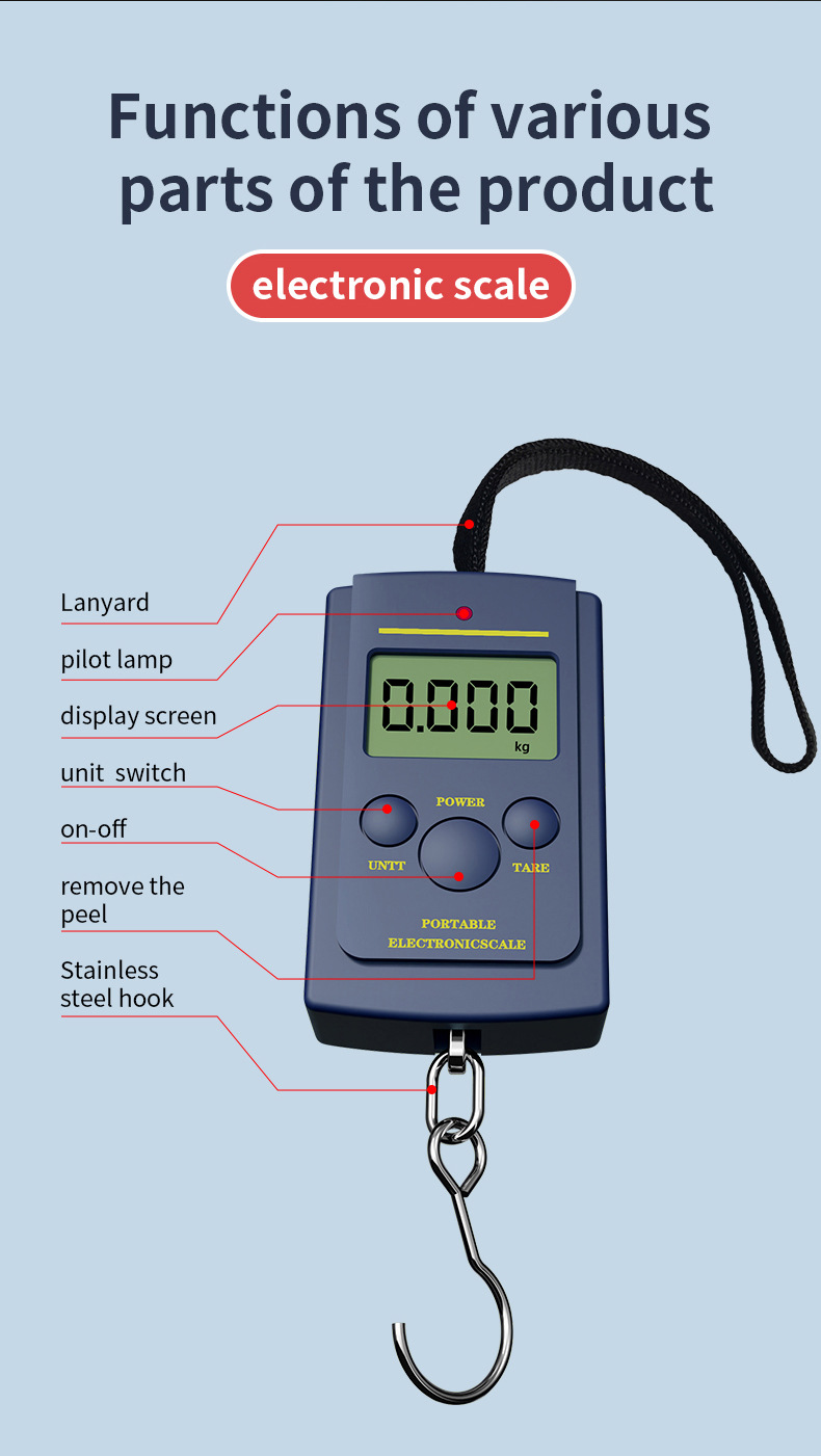 •多功能:这种秤不仅仅是用来称行李或鱼的重量,还可以用于其他目的,比如称包裹、蔬菜等。