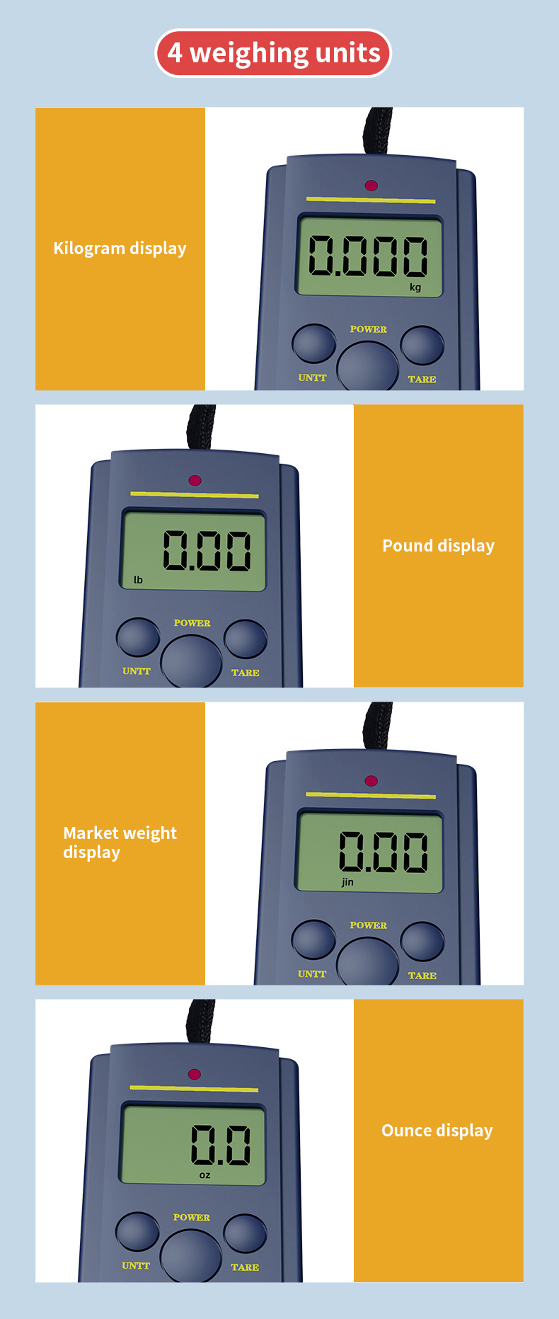 •数字显示:即使在低光条件下,数字显示也可以轻松读取重量,并且无需手动计算。