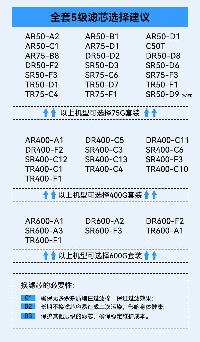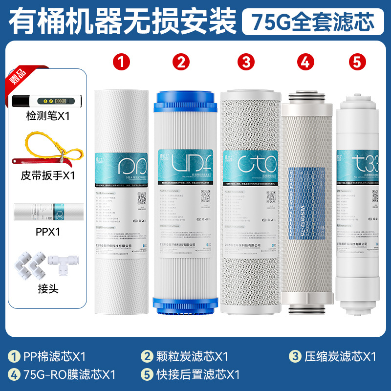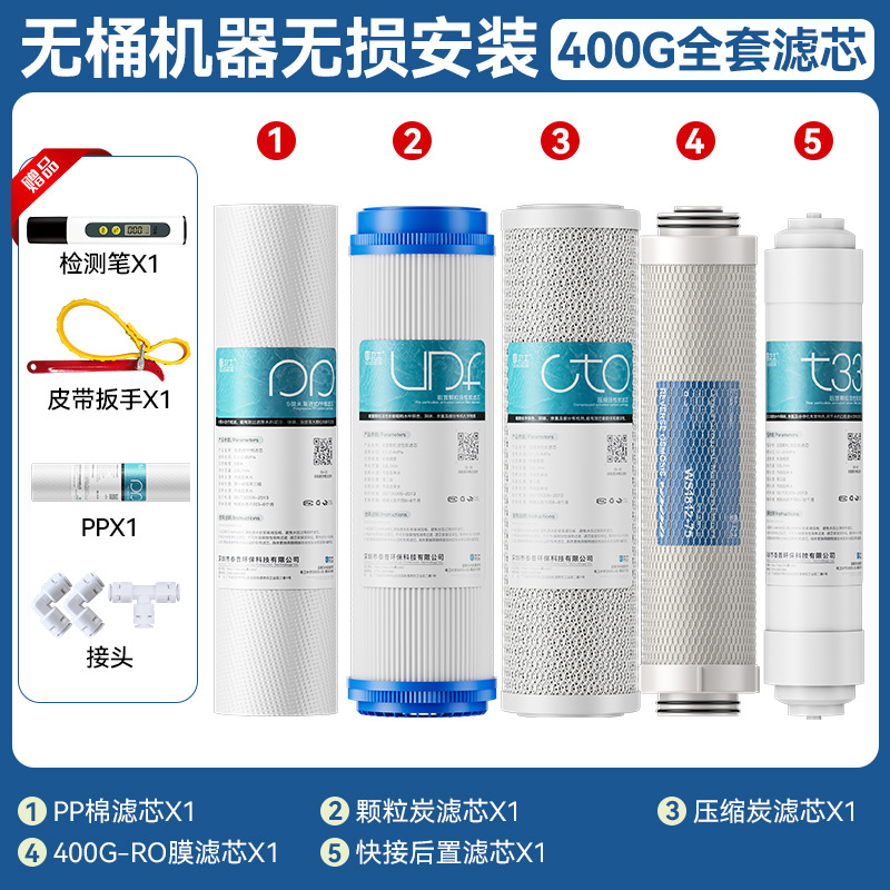 Полный комплект 75G (с бочковой машиной); Полный комплект 75G на два года (с бочковой машиной); Полный комплект 400G (без бочковой машины); Полный комплект 400G на два года (без бочковой машины); Уровень 3 (без мембраны обратного осмоса); Уровень 4 (без мембраны обратного осмоса); Мембрана обратного осмоса 50/75G; Мембрана обратного осмоса 400G; Мембрана обратного осмоса 600G; 800G RO мембрана; 75G полный комплект из 5 предметов (с бочкой); 400G полный комплект из 5 предметов (с бочкой); 600G полный комплект из 5 предметов (безствольная машина); 800G полный комплект из 5 предметов (безствольная машина)