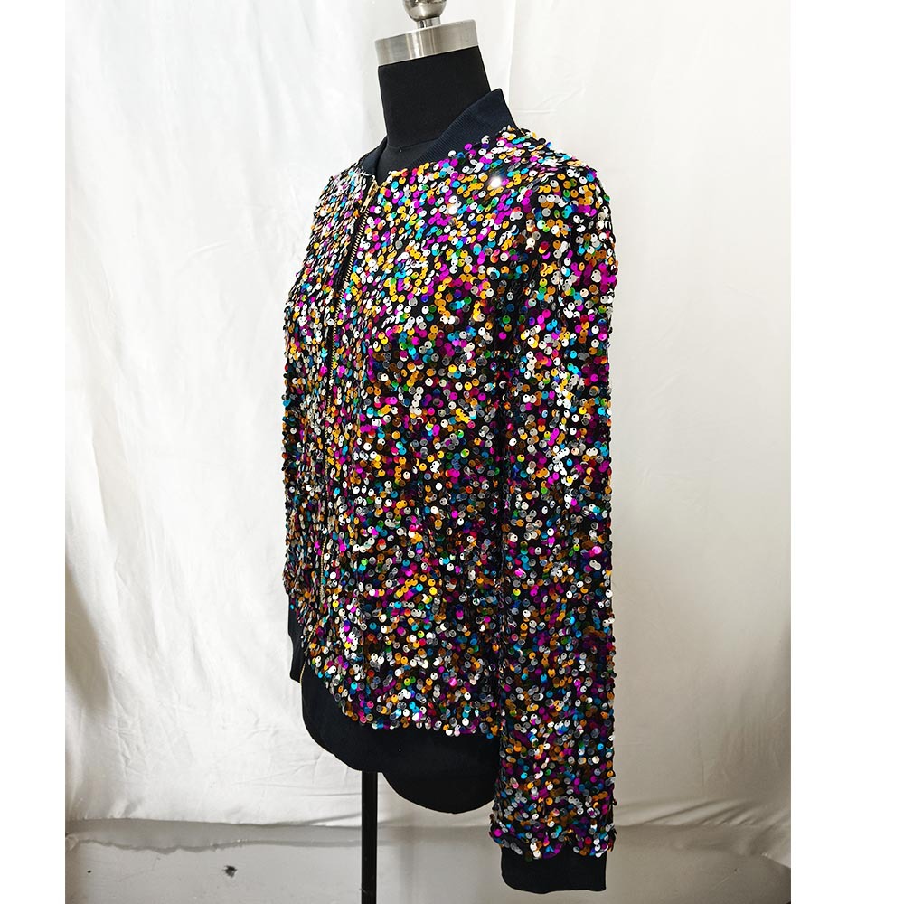 Сетчатая вышитая бисерна европейская и американская блестка куртка топ 2024 темпераментная мода весна и осень цветные блестки с длинными рукавами женская одежда