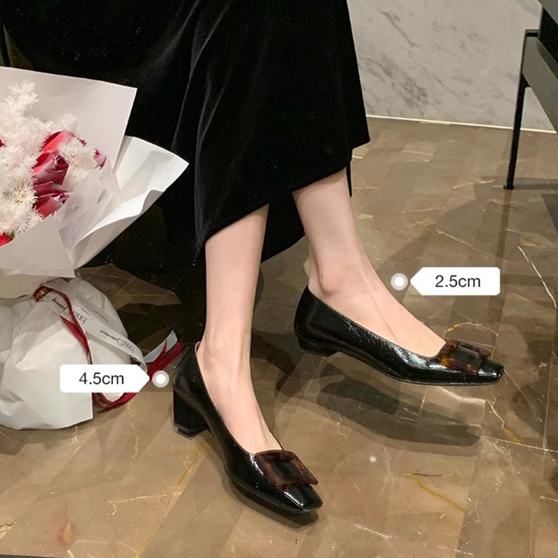 В наличии и готовы к отправке ~ Классические элегантные неглубокие дышащие туфли Grape Mom с квадратным носком, универсальные туфли на высоком каблуке и массивном каблуке с квадратной пряжкой.