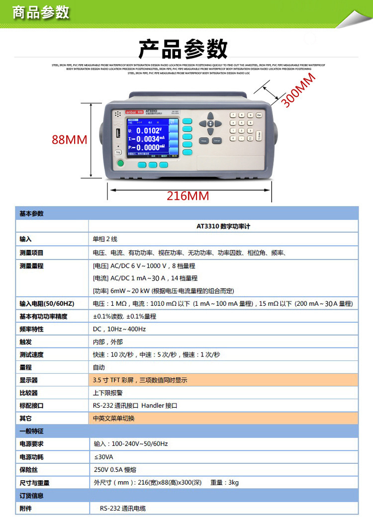 Amber AT3310 переменный и постоянный ток цифровой измеритель мощности измеритель электрических параметров Напряжение 1000V/ток 20A
