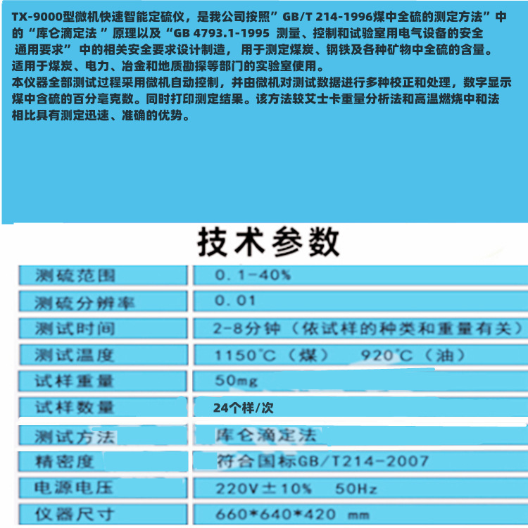 10、自动化程度高,体积小,是目前实验室理想的测硫仪器。