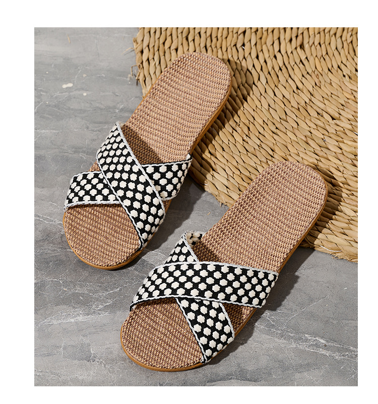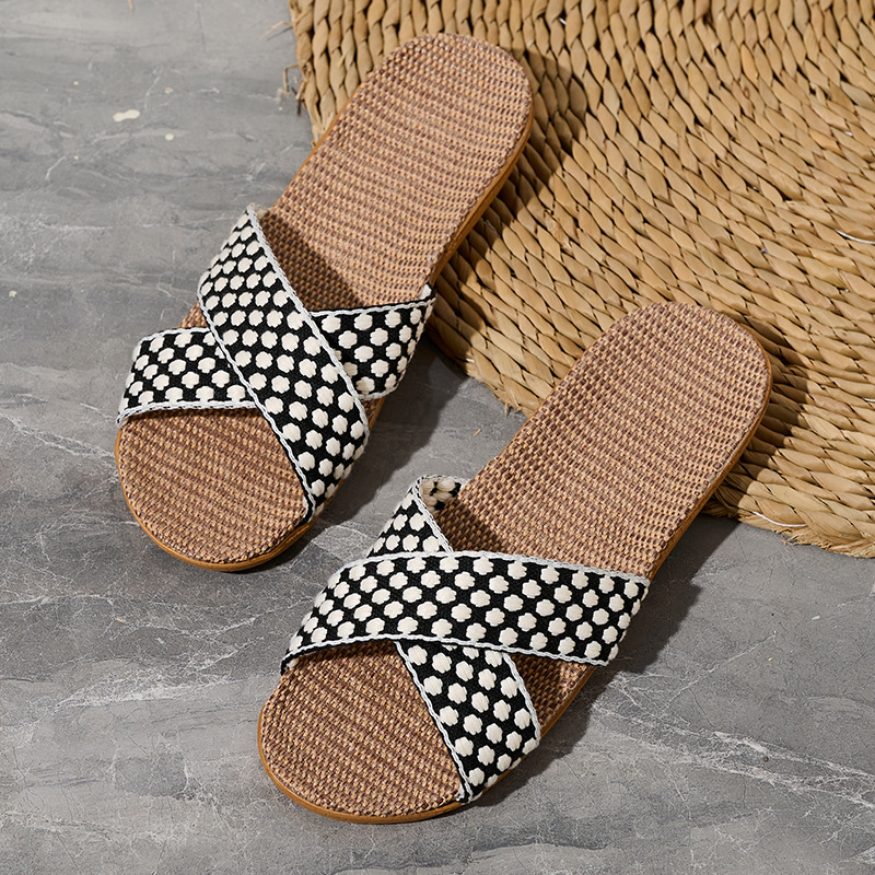 Внешняя торговля Новый этнический стиль льняные тапочки дышащие и тихие домашние напоенные перетаскивания