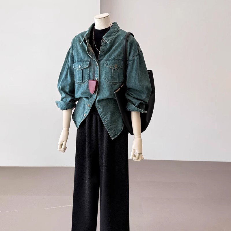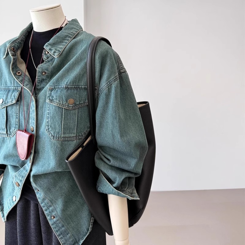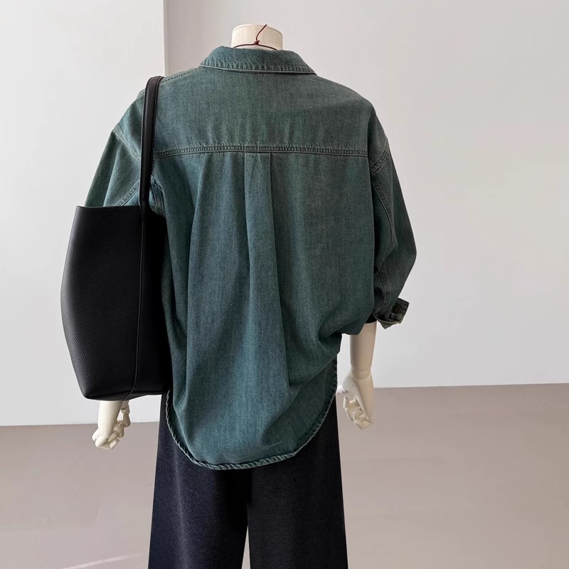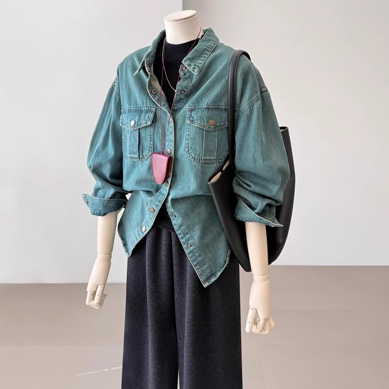 Лавочник рекомендует рекомендовать самоудержание ~ Ретро мойка легкая роскошная синяя джинсовая рубашка женская осень и зима