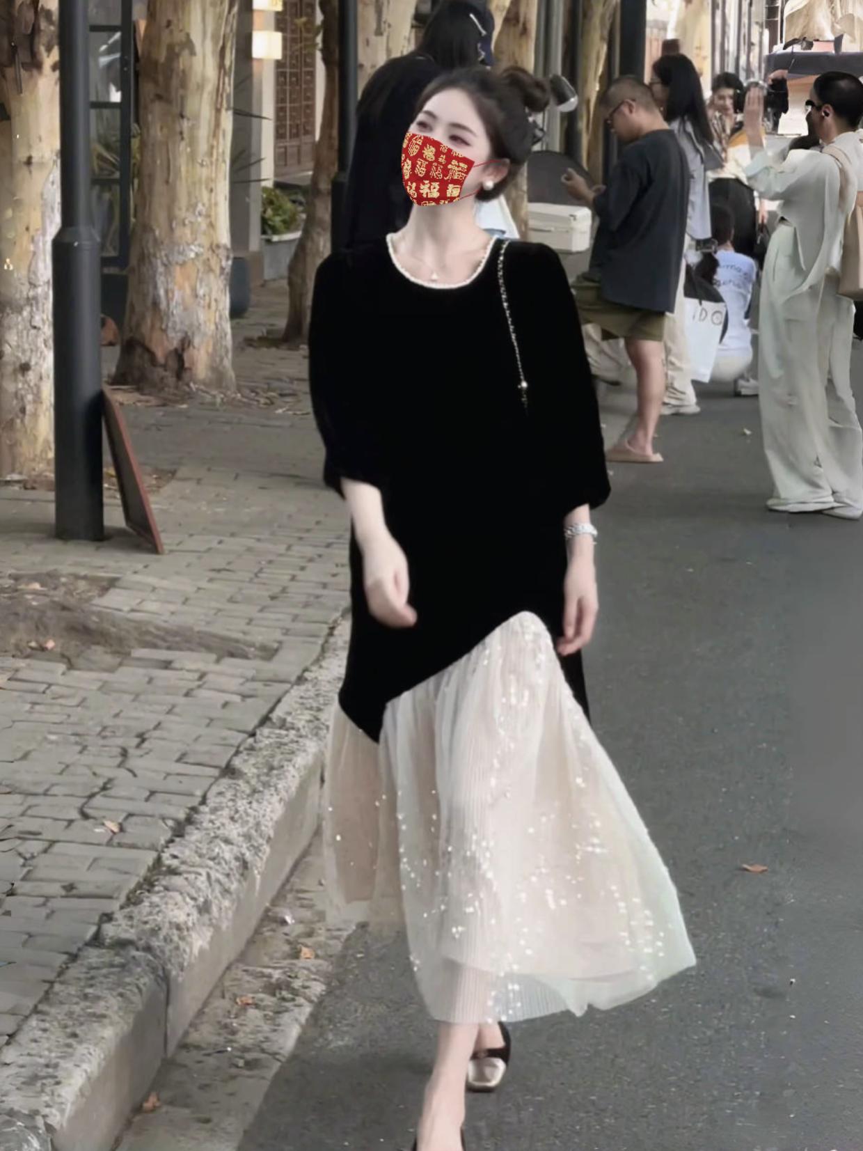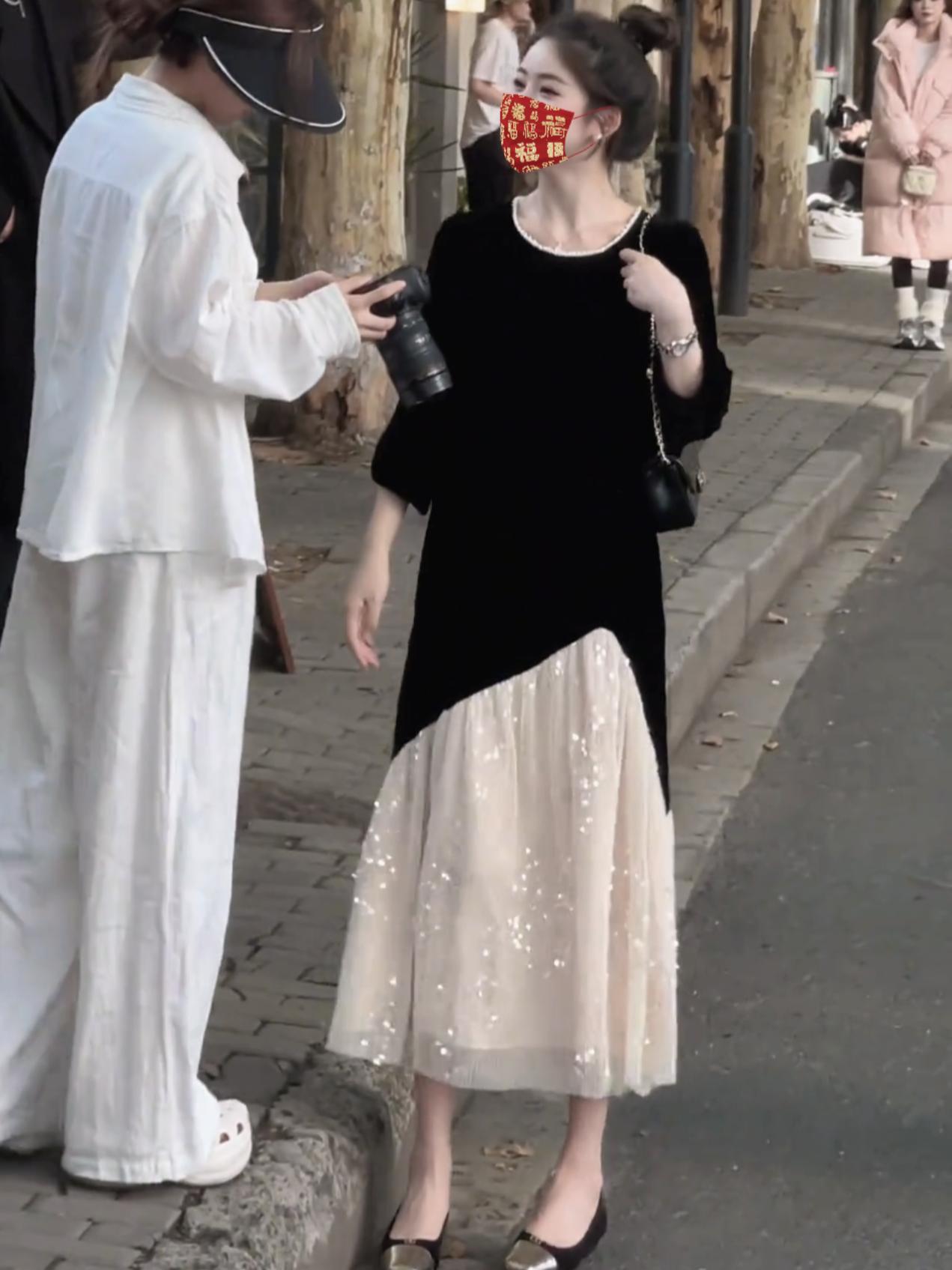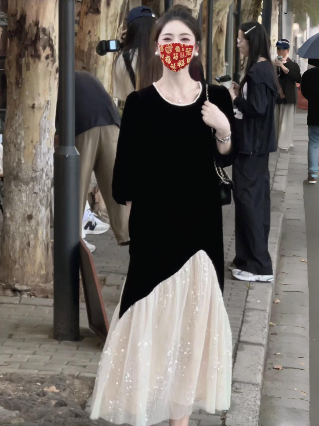 2733 женщины большого размера поддельные две черные бархатные платья толстые MM сшитые блестки