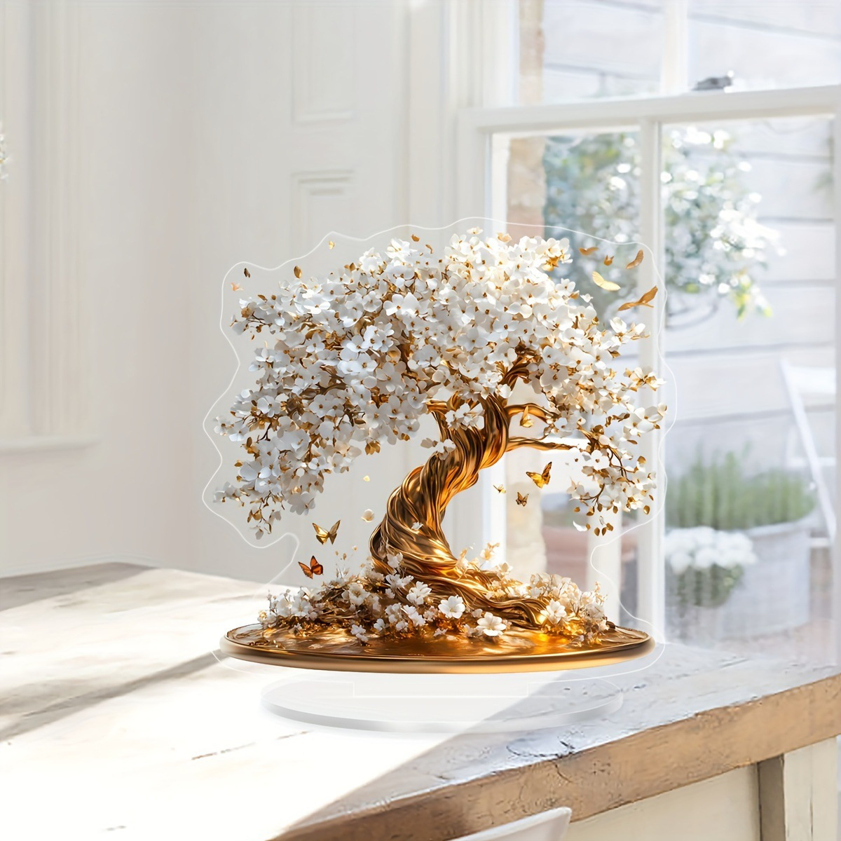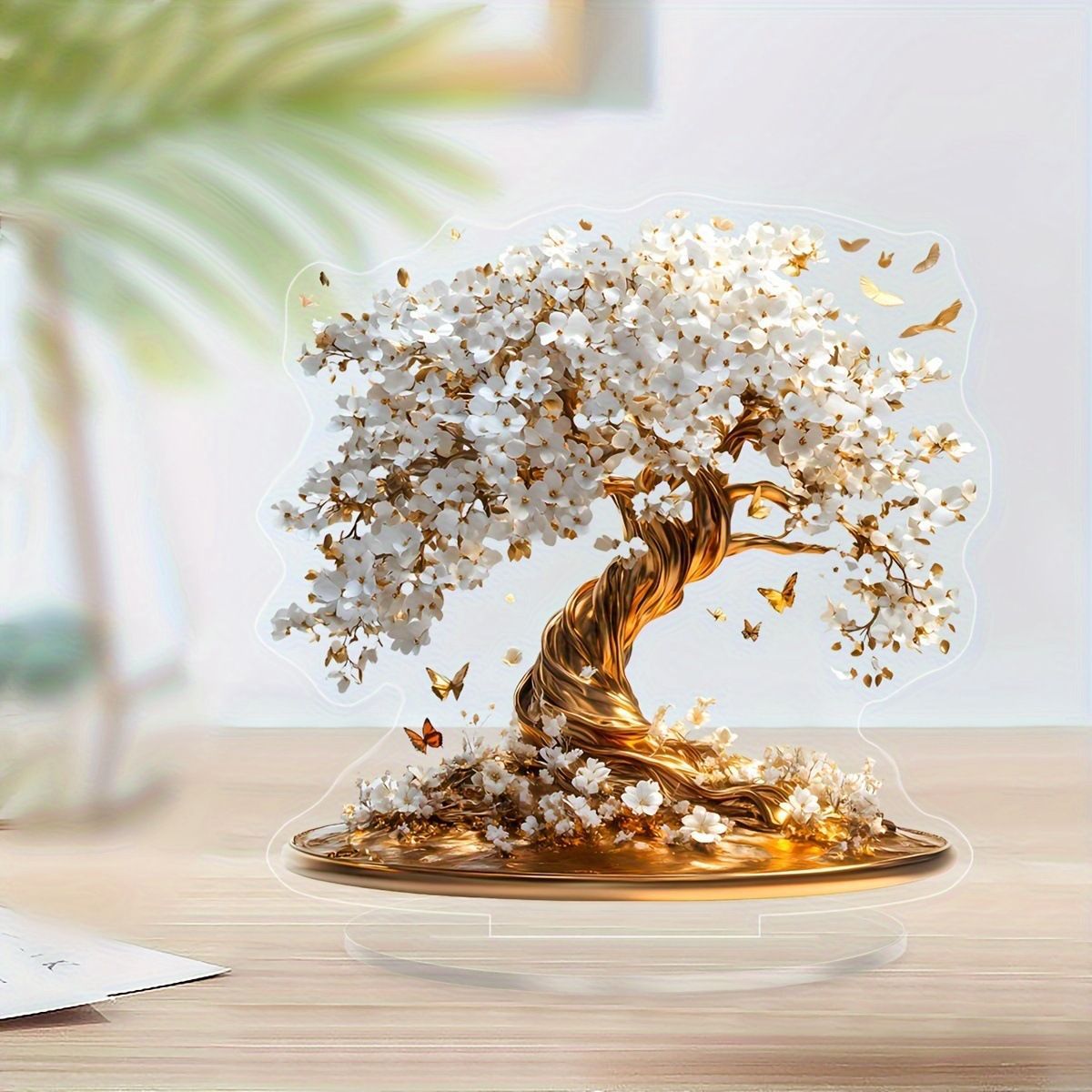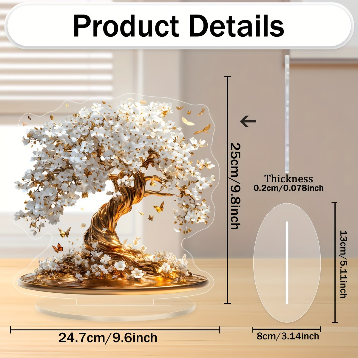Трансграничное цветущее дерево 2D плоская акриловая рождественская сцена с основанием для украшения дома и офиса