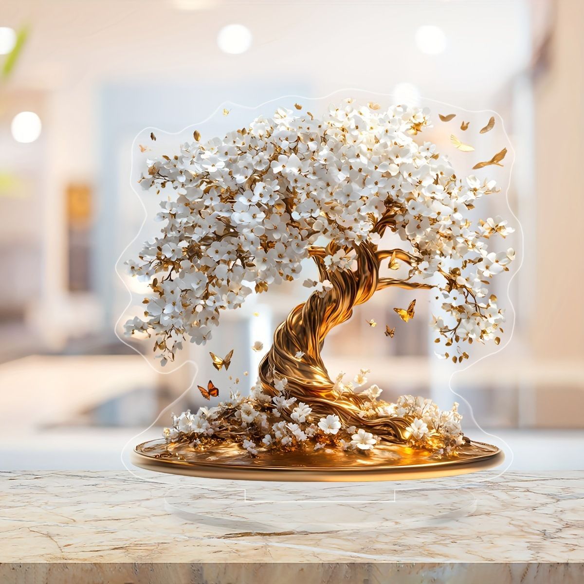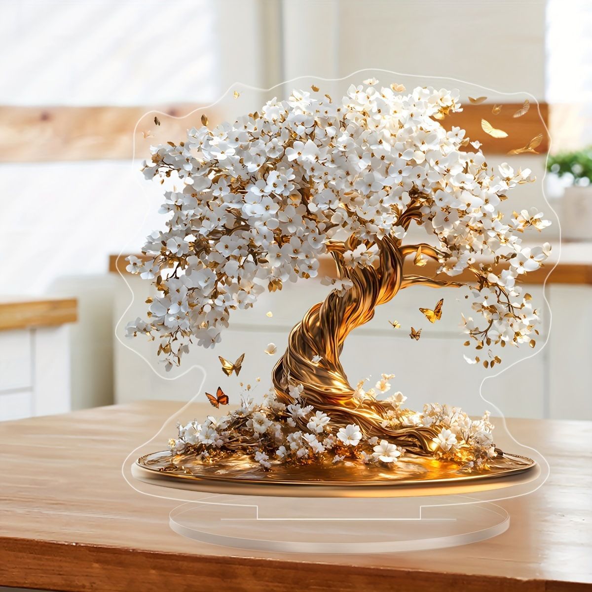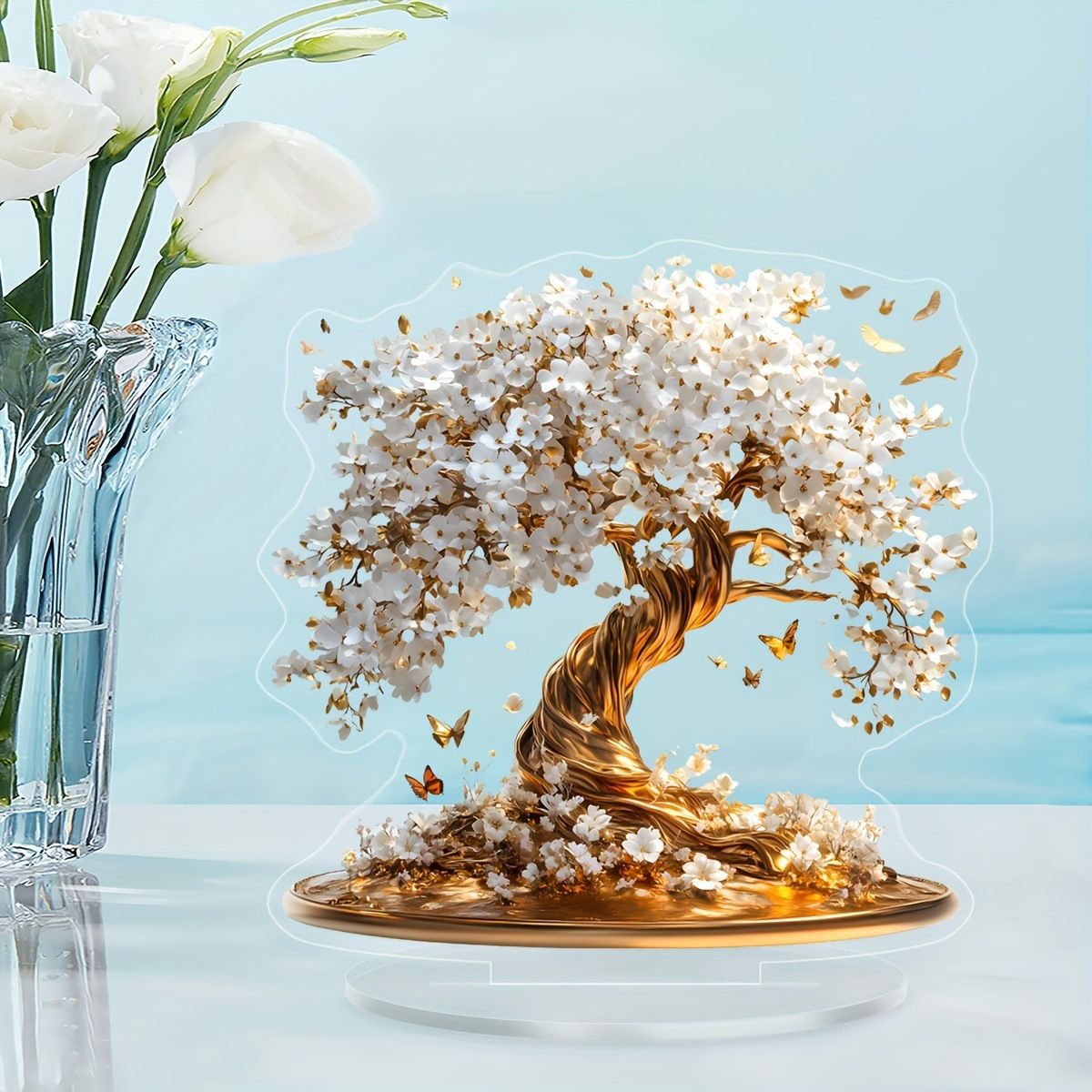 Трансграничное цветущее дерево 2D плоская акриловая рождественская сцена с основанием для украшения дома и офиса