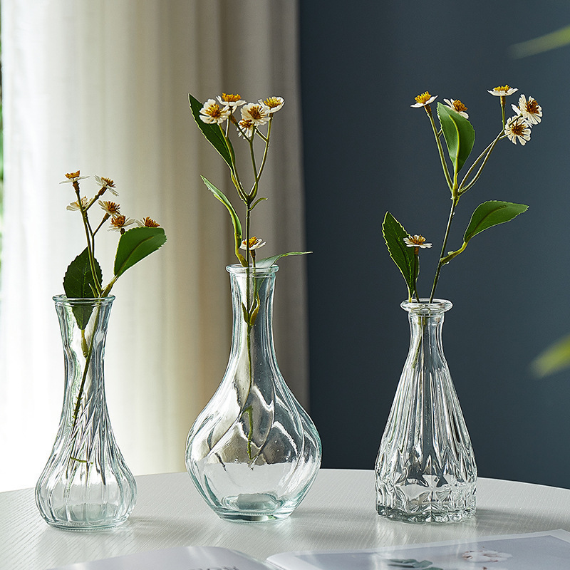 Французская винтажная маленькая ваза с рельефным стеклом с высоким содержанием цвета цветочная ваза прозрачная гидропонная цветочная композиция для гостиной декоративная ваза