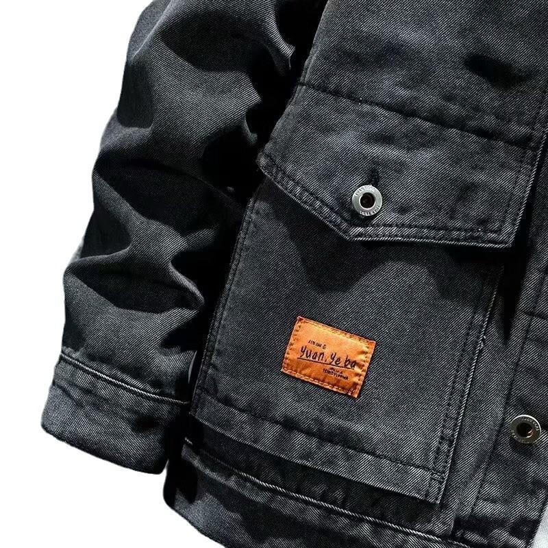 Лангер сплошной цвет высокого уровня черный серый весенний и осенний джинсовый пиджак мужской прилив молодежная однобортная пара с длинными рукавами