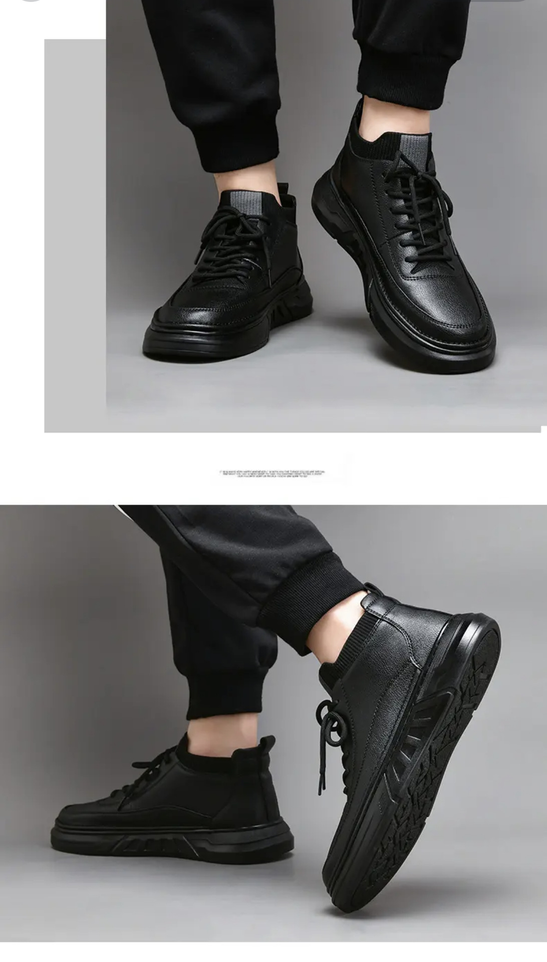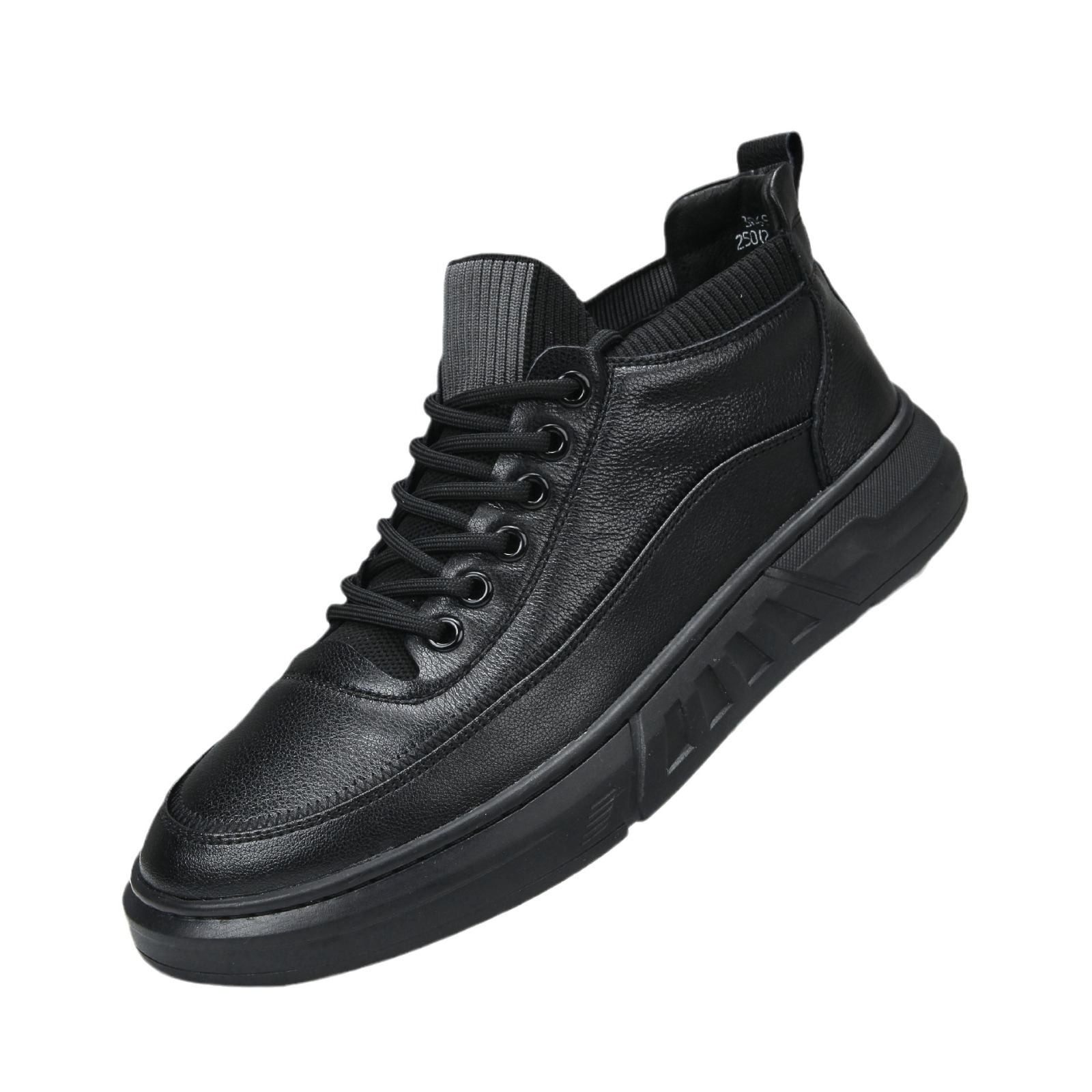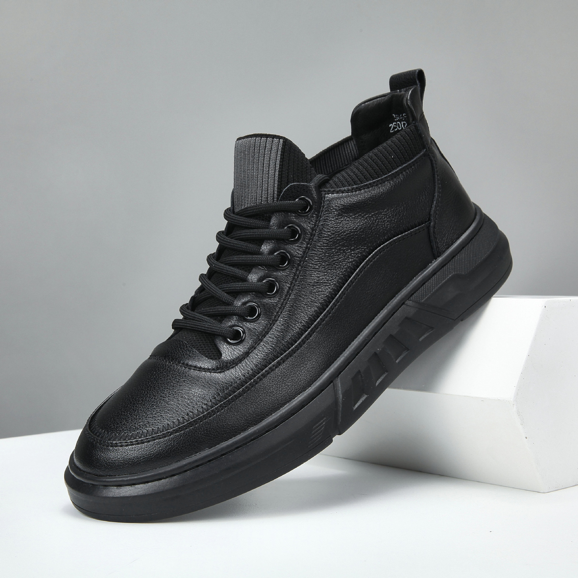 Черная модная обувь 2024 новая весна осень мужская обувь повседневная кожаная обувь доска противоскользящая спортивная обувь на открытом воздухе