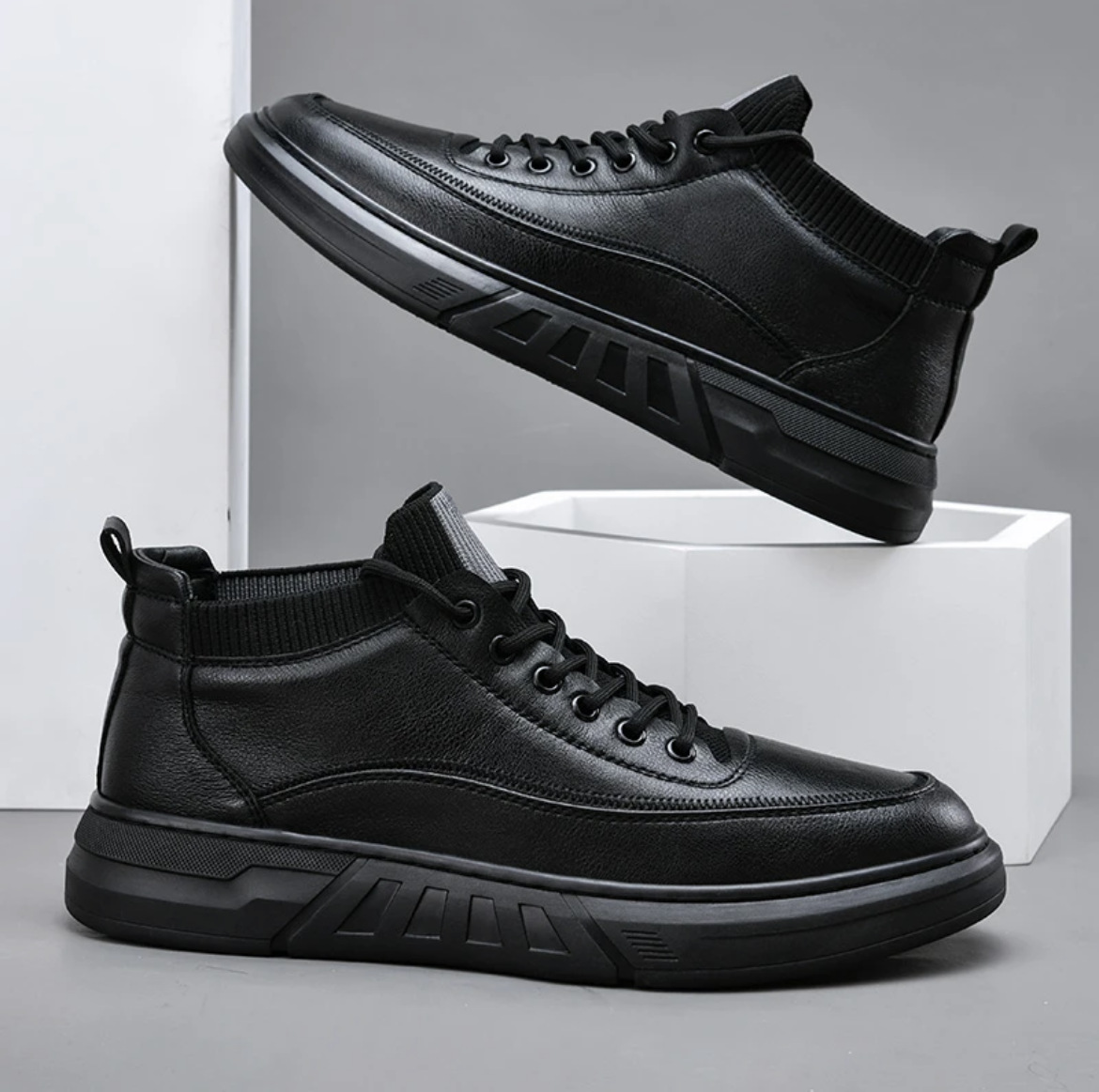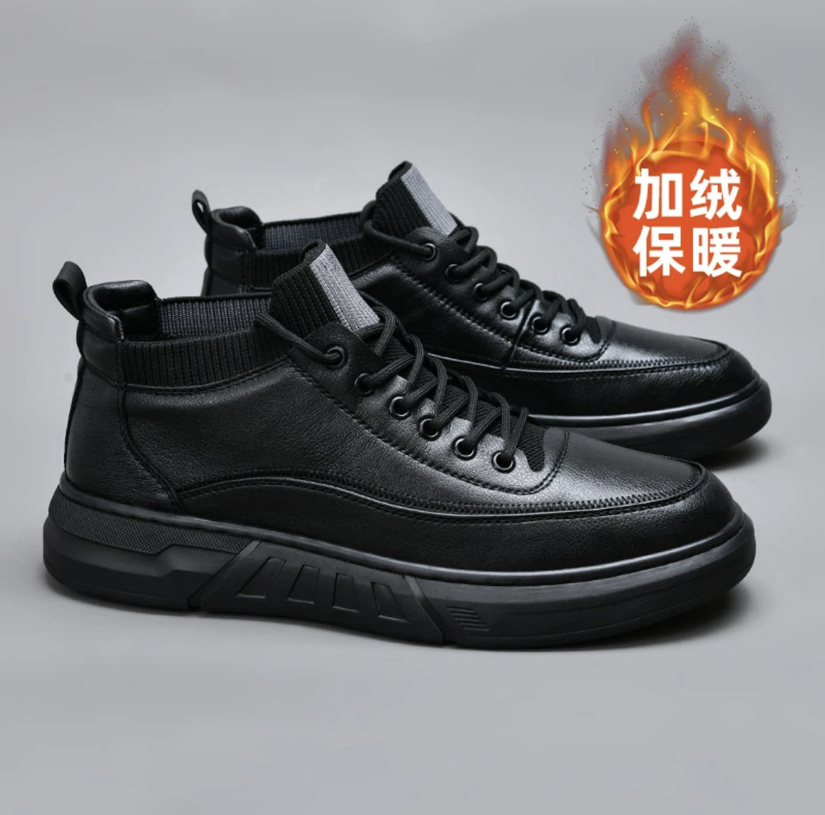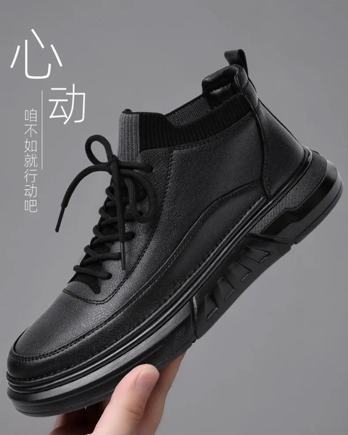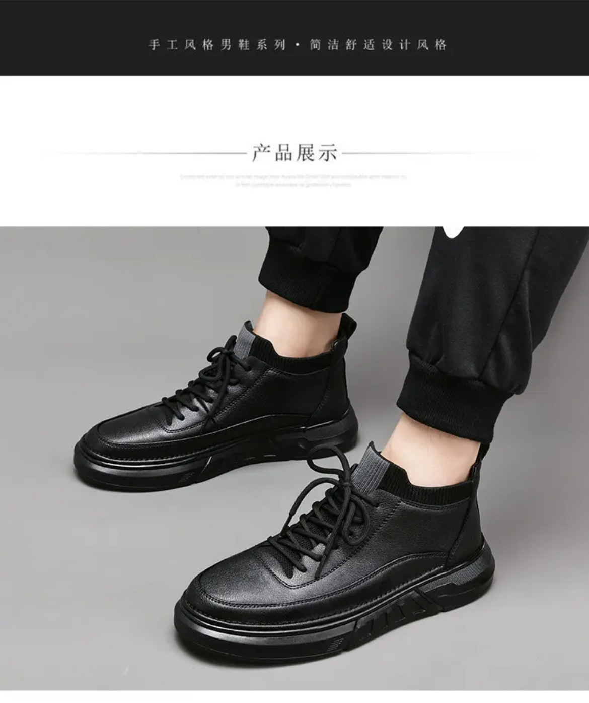 Черная модная обувь 2024 новая весна осень мужская обувь повседневная кожаная обувь доска противоскользящая спортивная обувь на открытом воздухе
