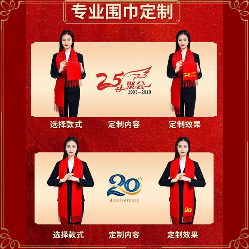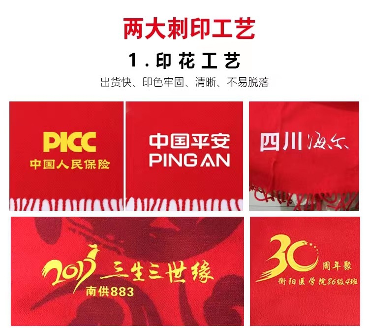 Шарф на заказ логотип печать китайского красного шарфа вышитый одноклассник вечеринка