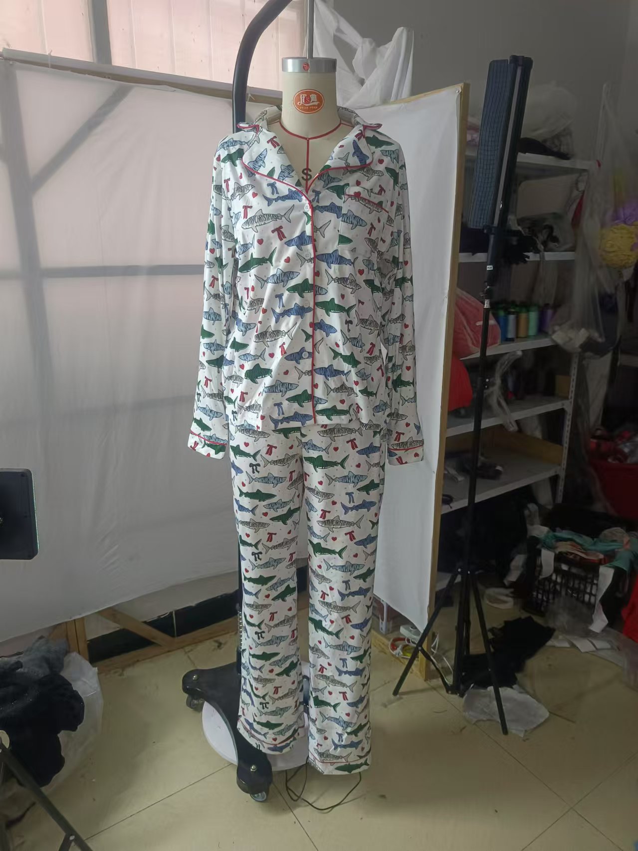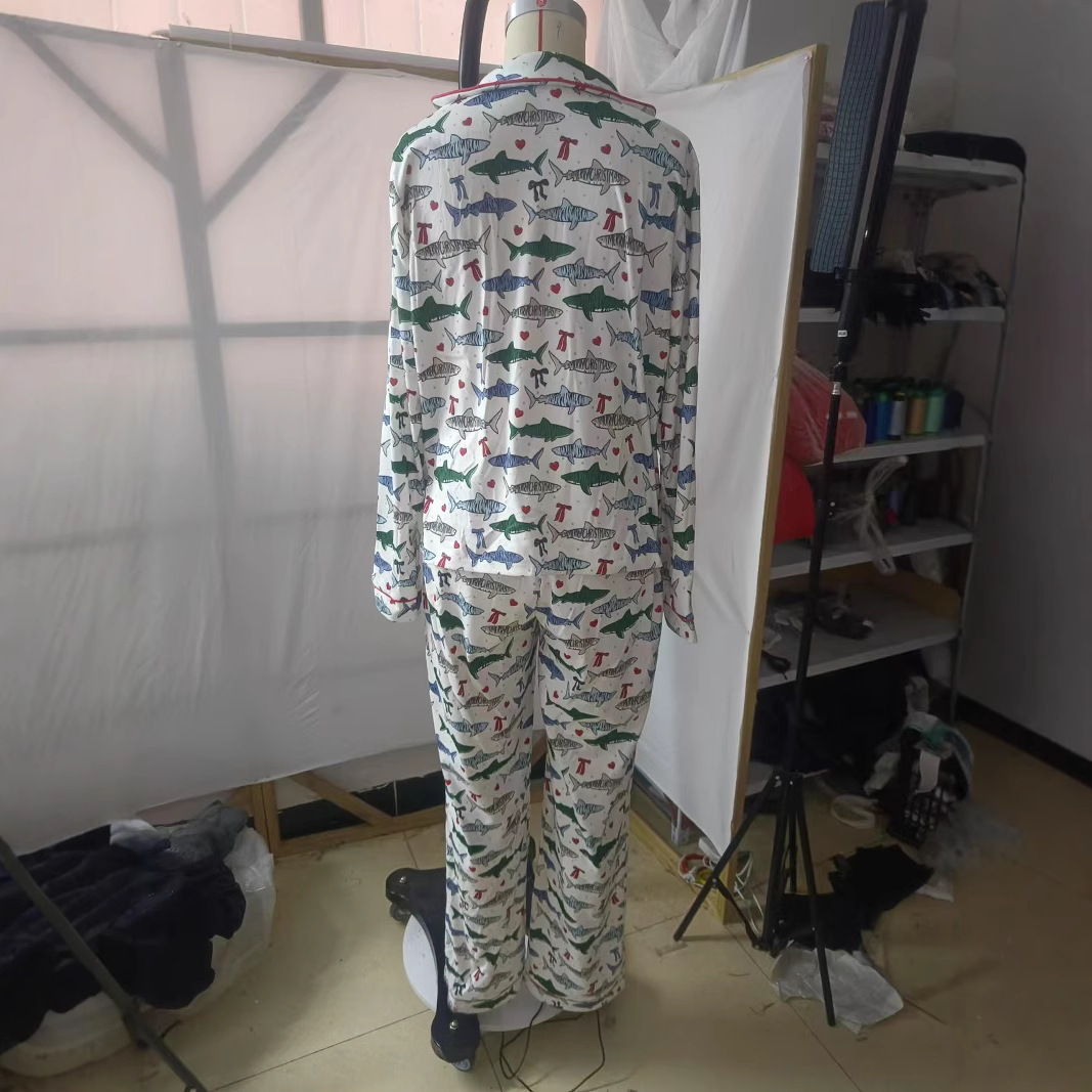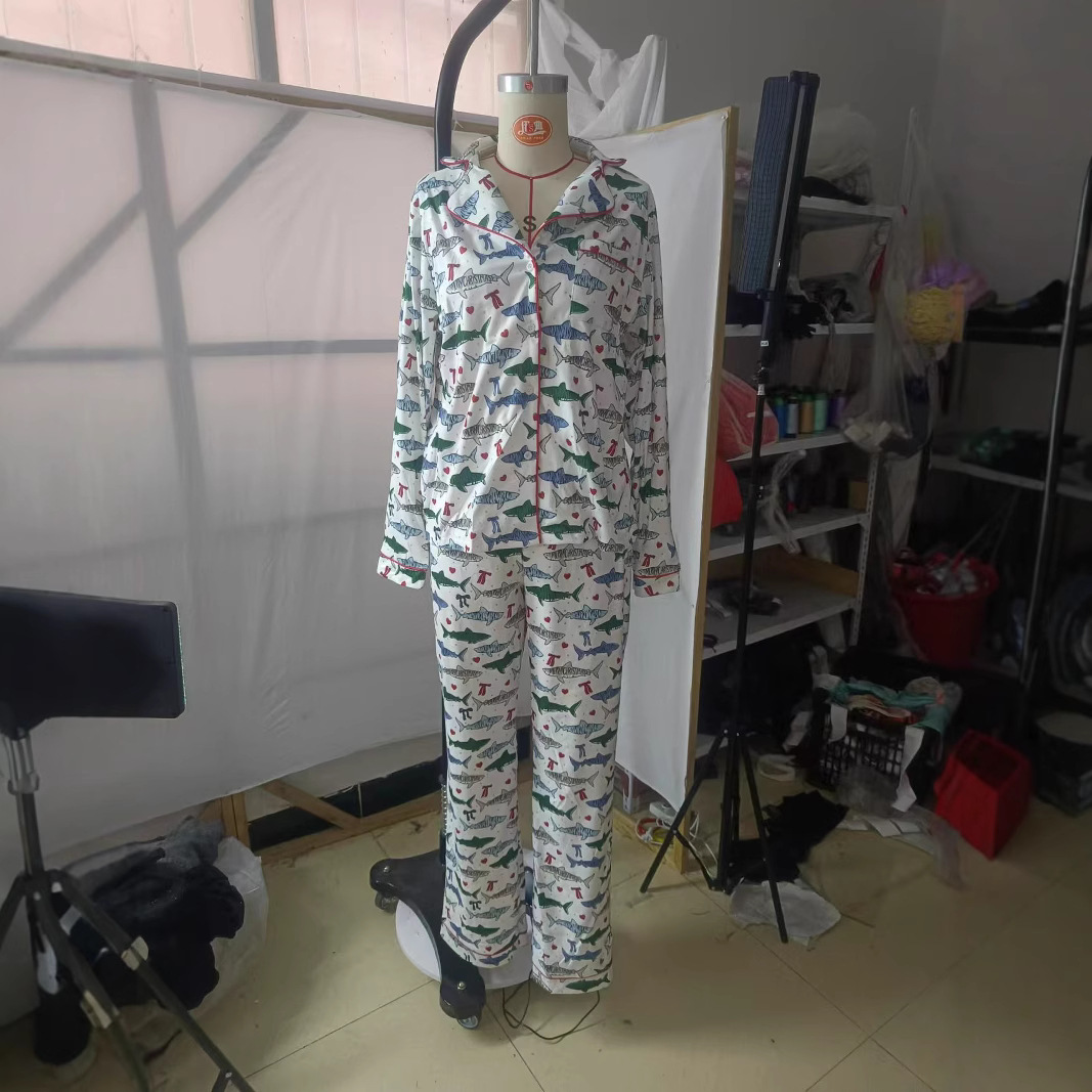 Хлопковая французская пижама осенняя женская хлопчатобумажная шерстяная ткань