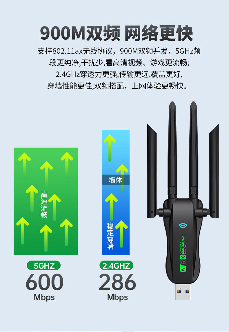Wifi6 бесприводной AX900 USB беспроводная сетевая карта 5G Gigabit двухдиапазонный ноутбук Wi-Fi приемник передачи