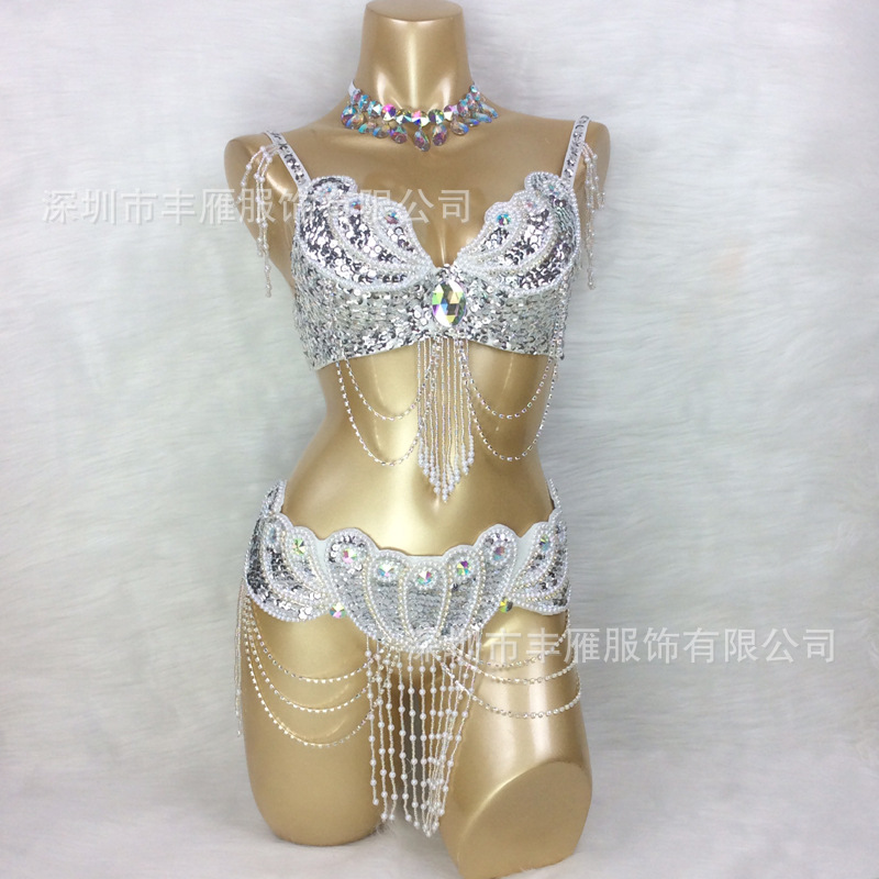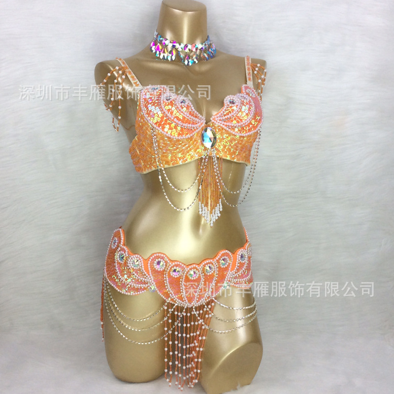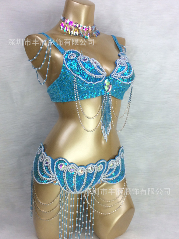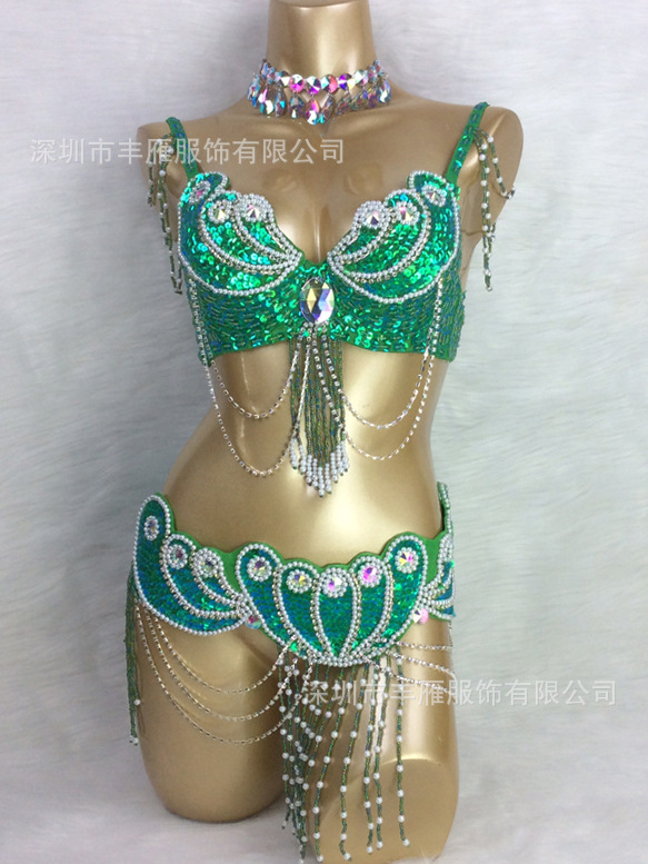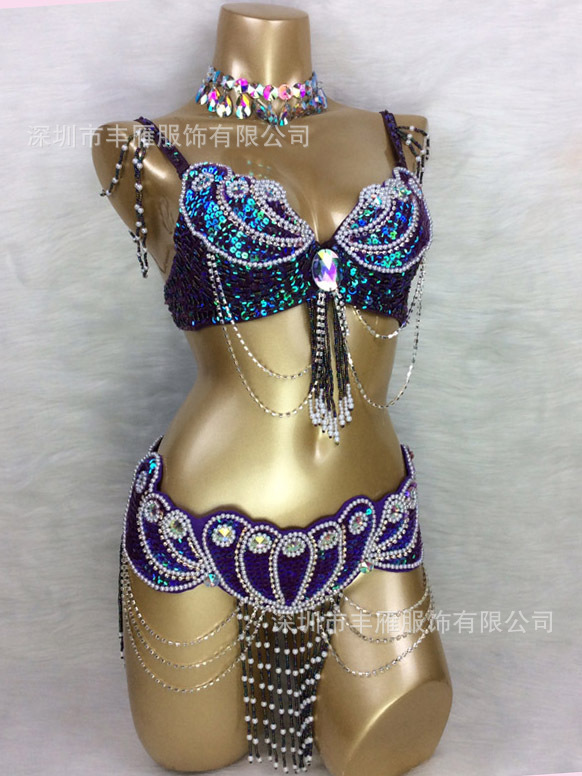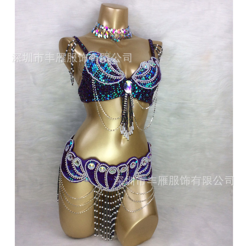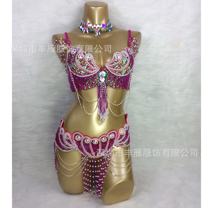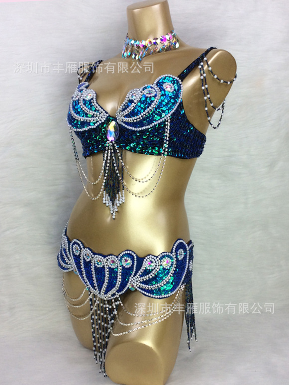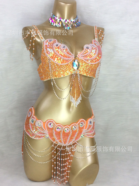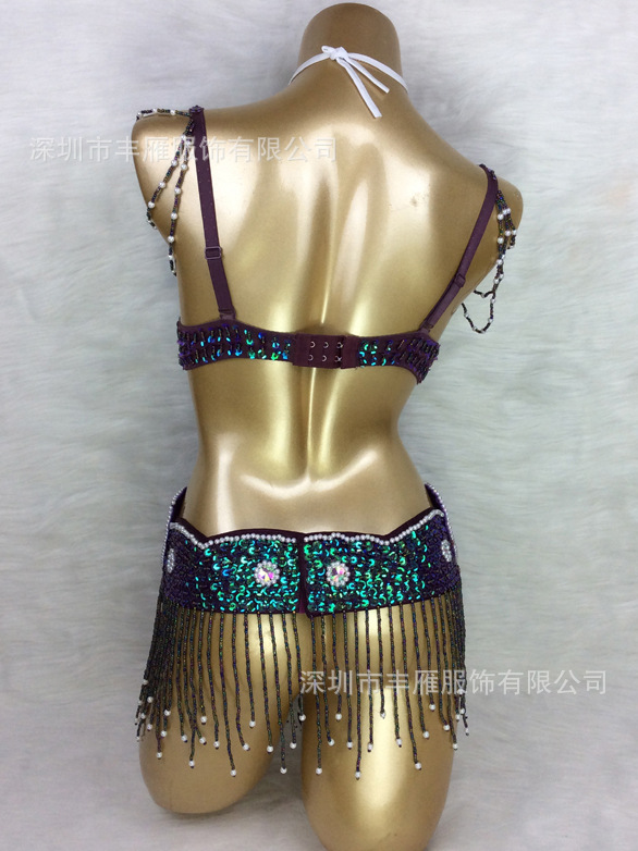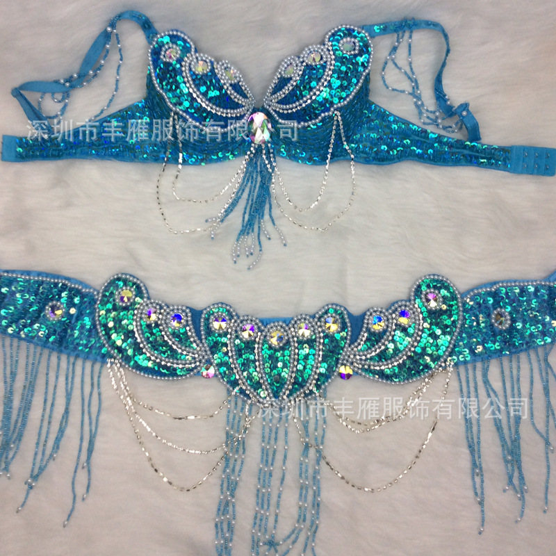 Оптовый производитель: комплект из бисерного топа и пояса для танца живота с пайетками, костюм для сценических и групповых выступлений для женщин.
