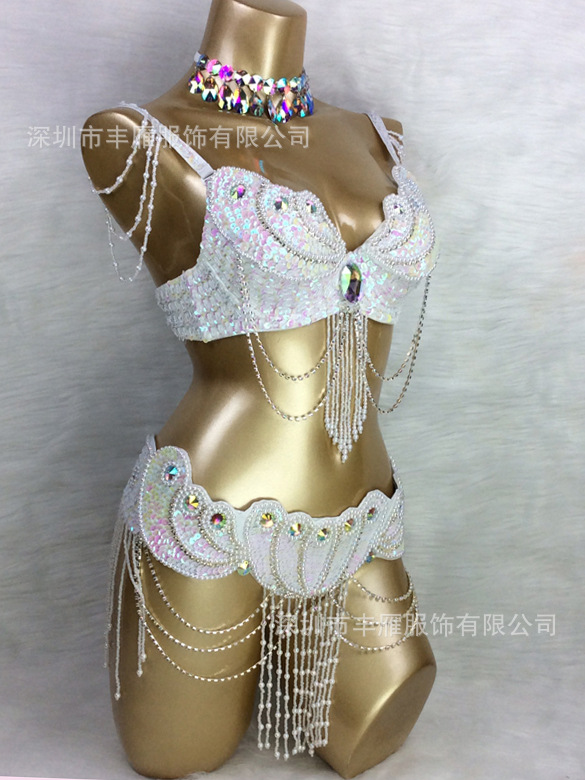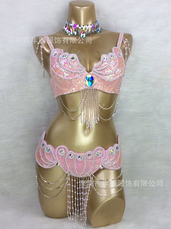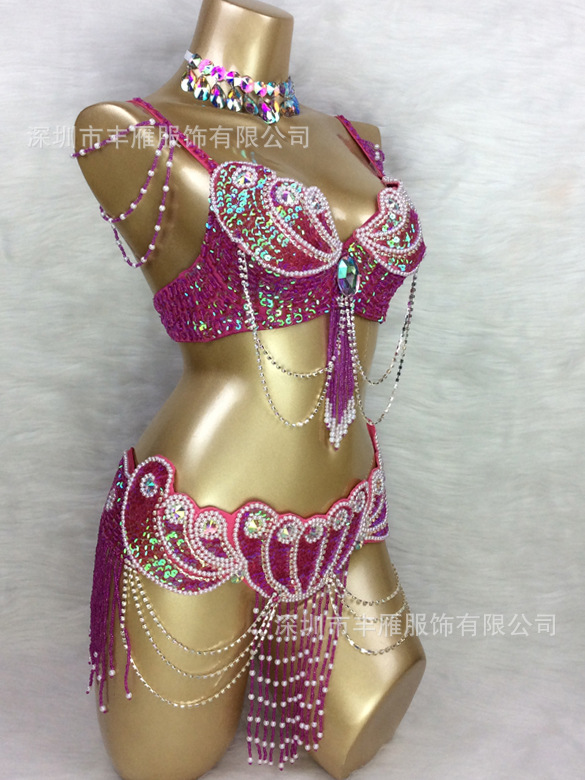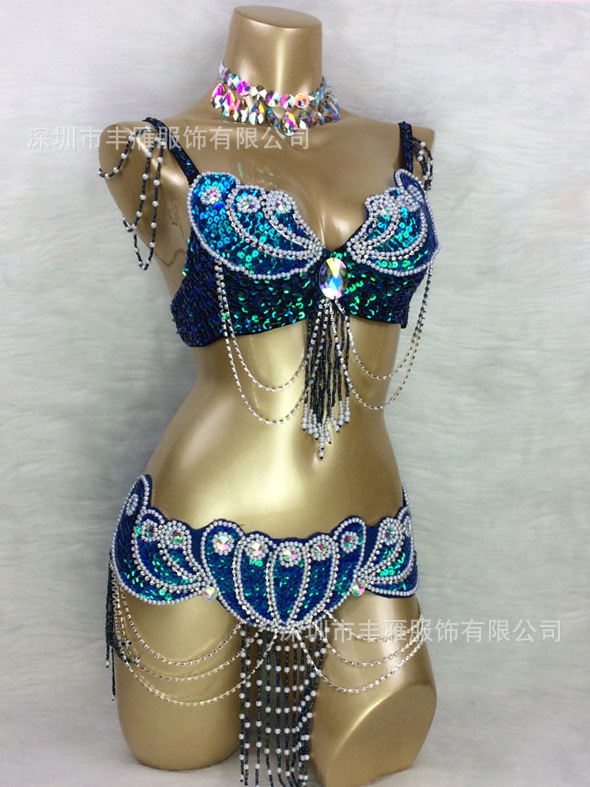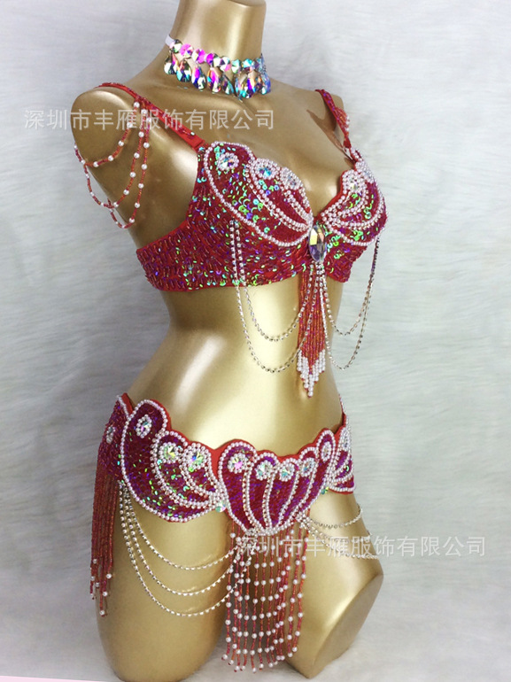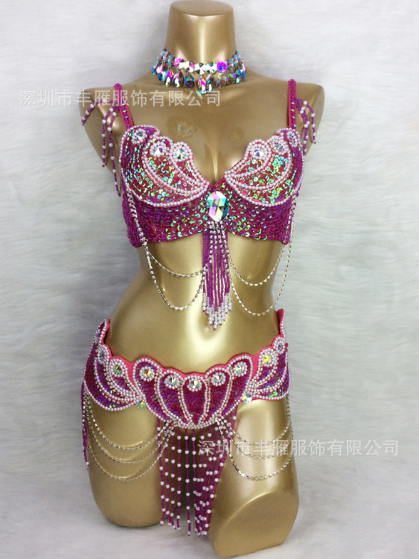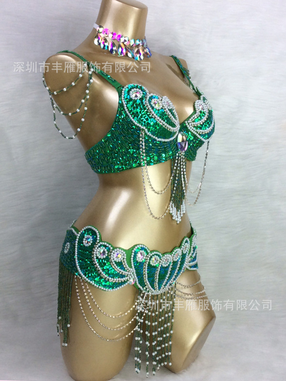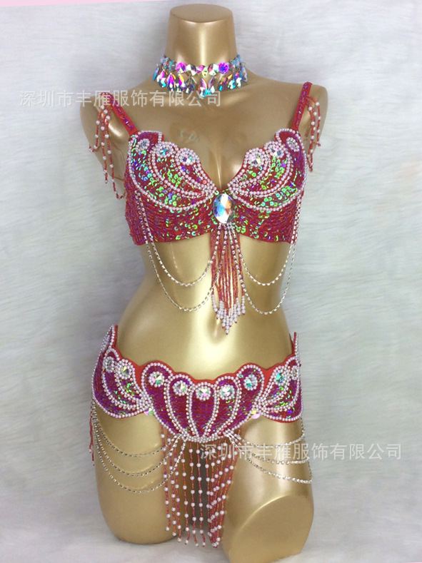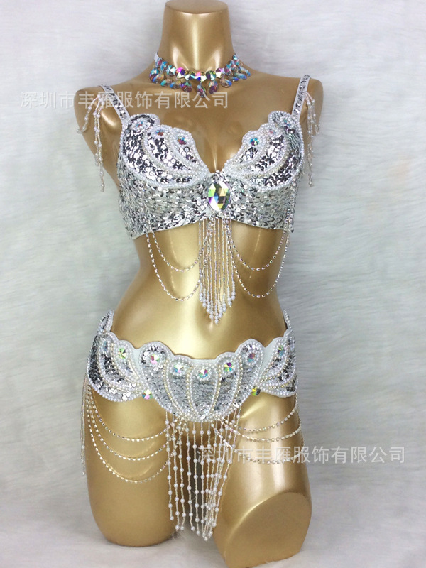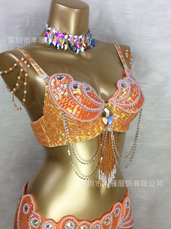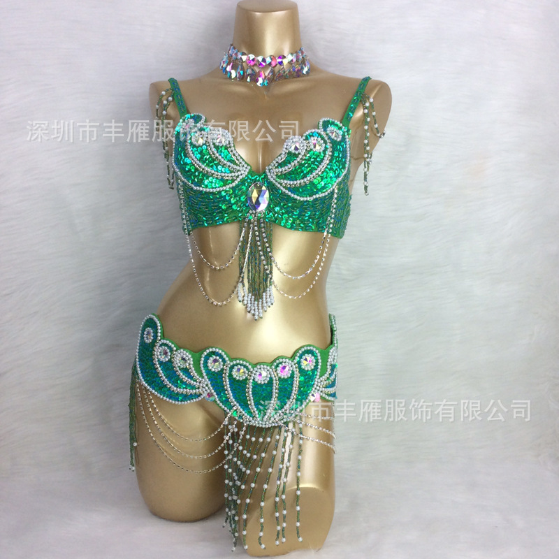 Оптовый производитель: комплект из бисерного топа и пояса для танца живота с пайетками, костюм для сценических и групповых выступлений для женщин.