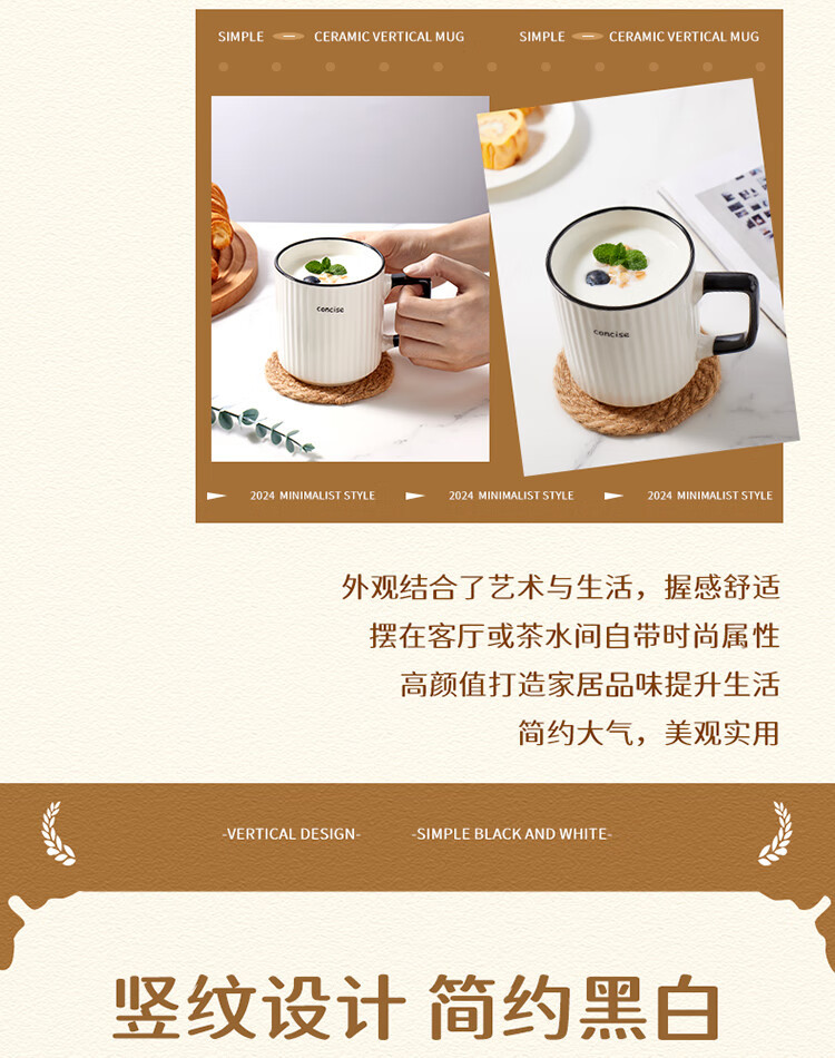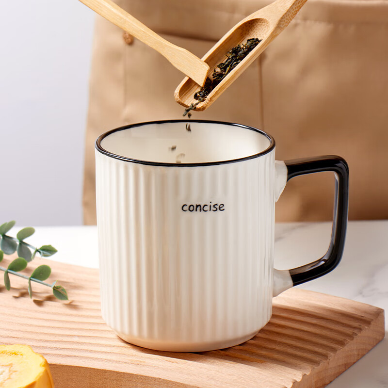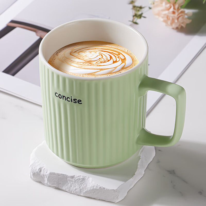[Белый цвет слоновой кости] Керамическая кружка с вертикальным узором; [Молочно-зеленый] Керамическая кружка с вертикальным узором