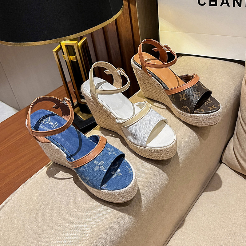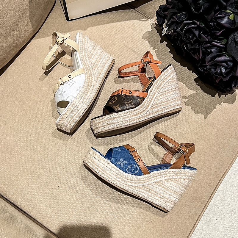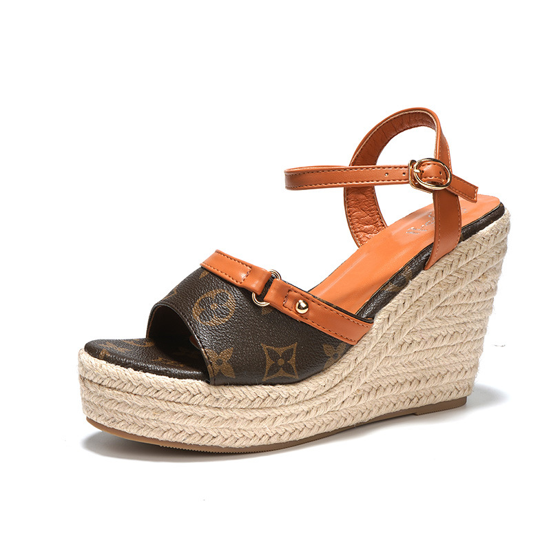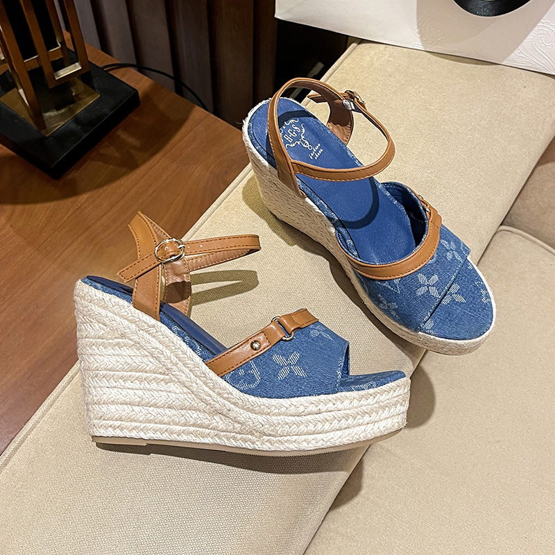 Сандалии на пятке с рыбьим ртом женский 2025 новый стиль соломенный шпагат с толстым дном