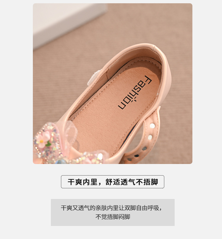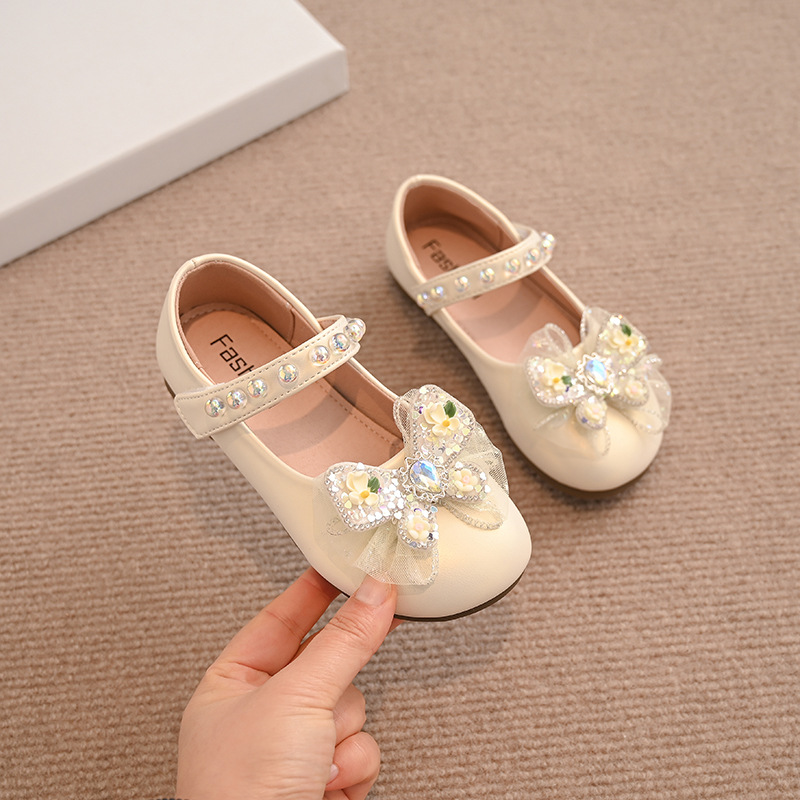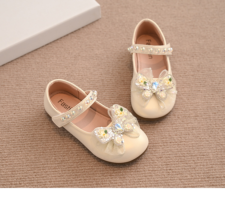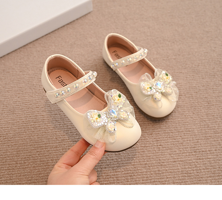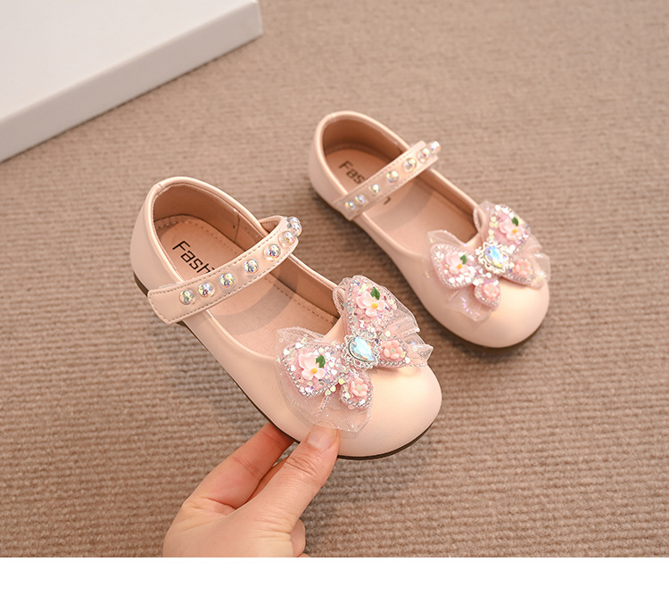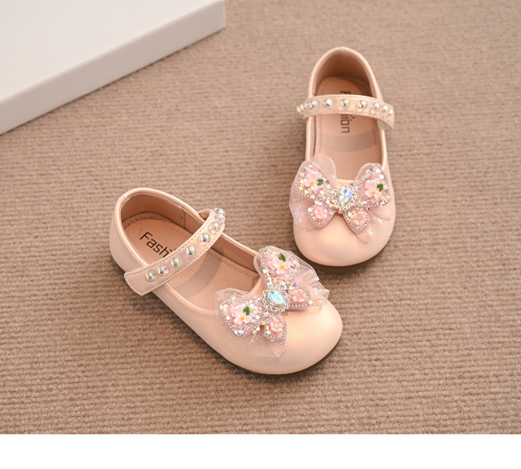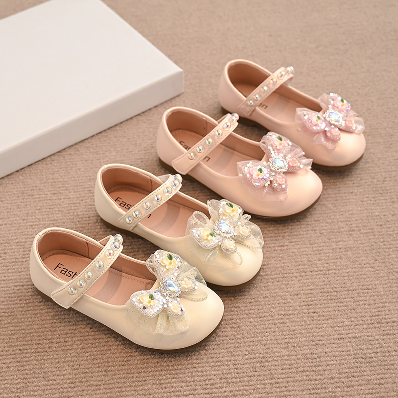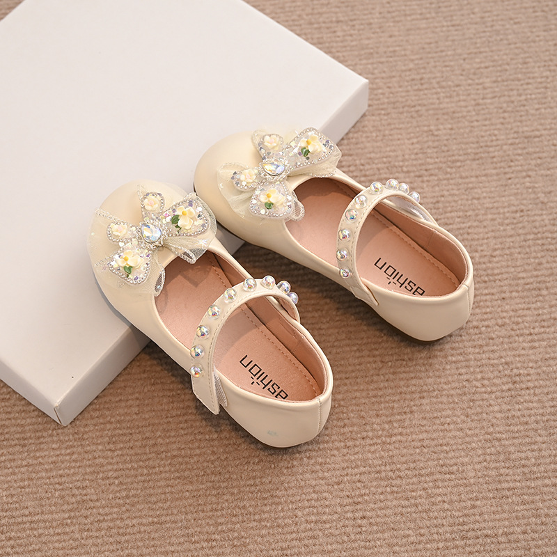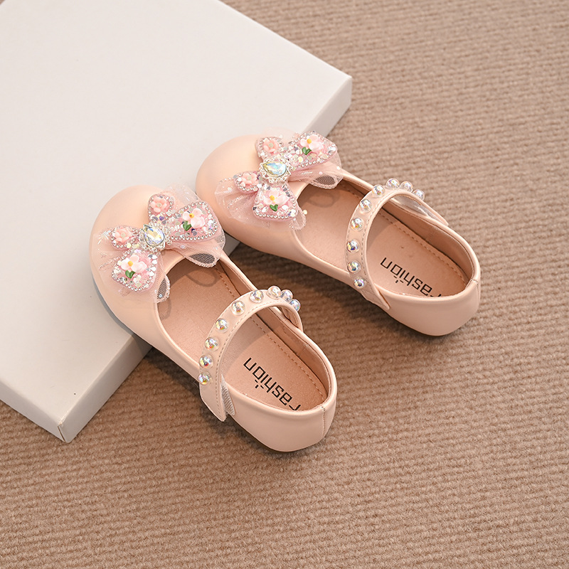 Детские туфли для девочек, кристальные туфли-принцессы в корейском стиле, мягкая подошва, стразы, плоская подошва, новая модель весна/лето 2025 года.