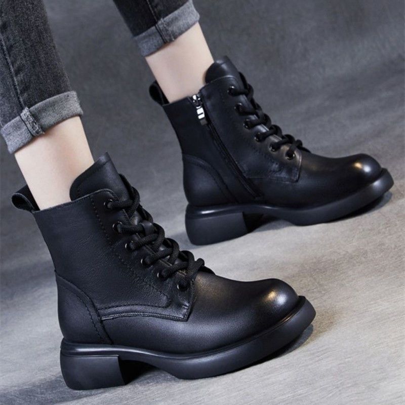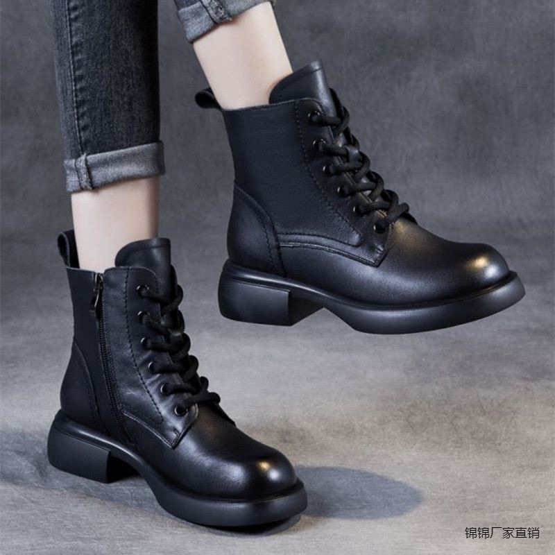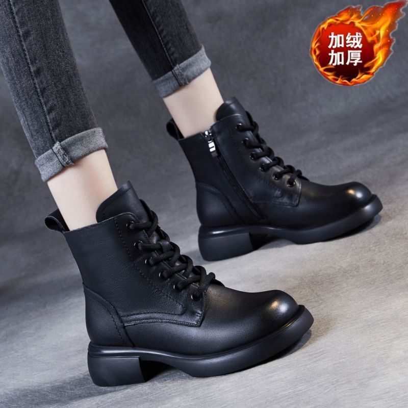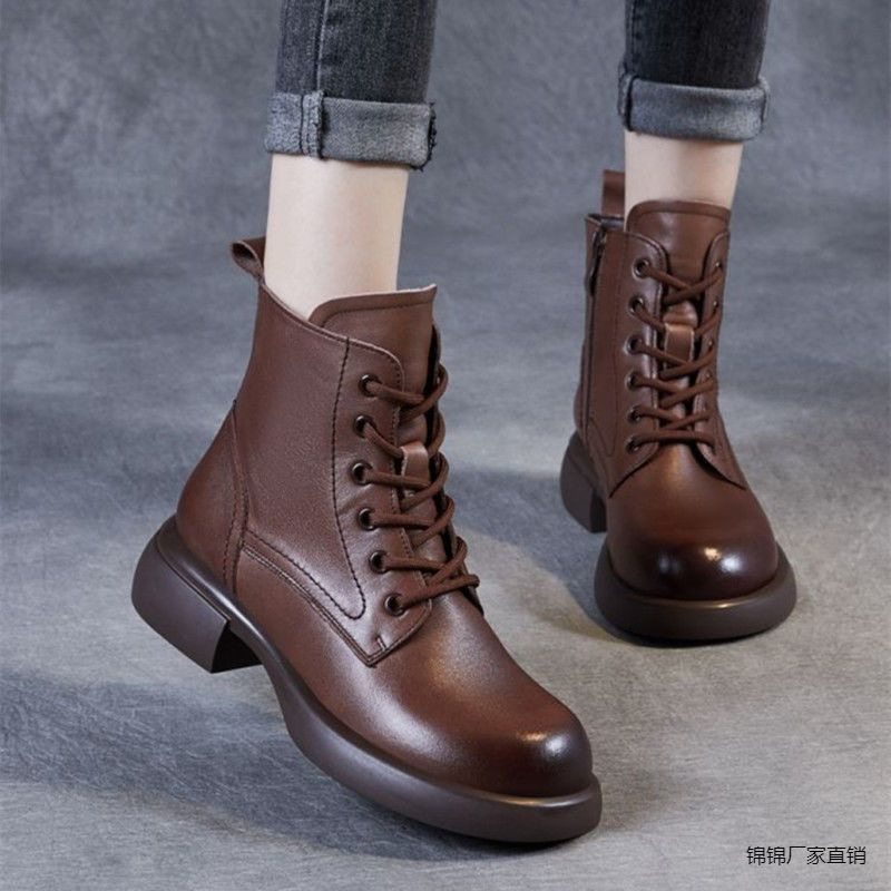 2024 весна и осень новая мягкая кожаная обувь на мягкой подошве женские бархатные толстые короткие сапоги противоскользящие сапоги женские сапоги тонкие