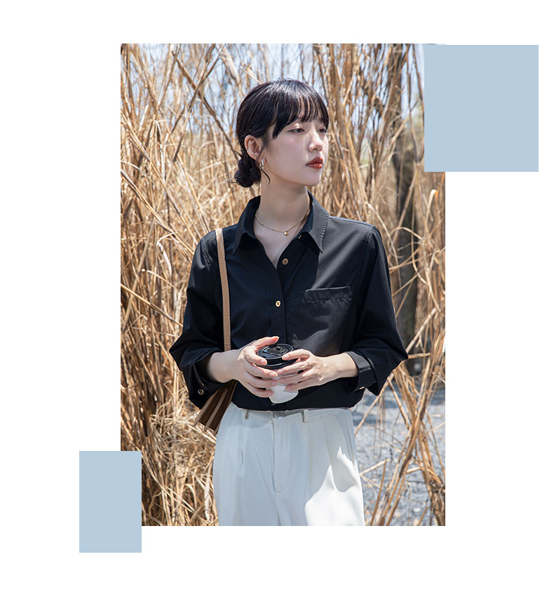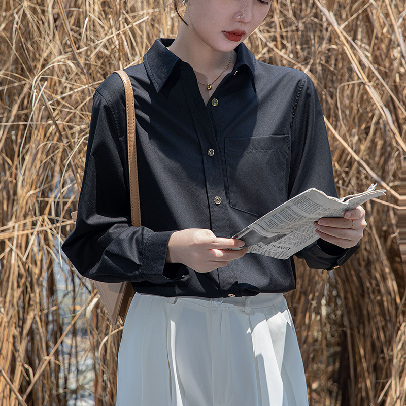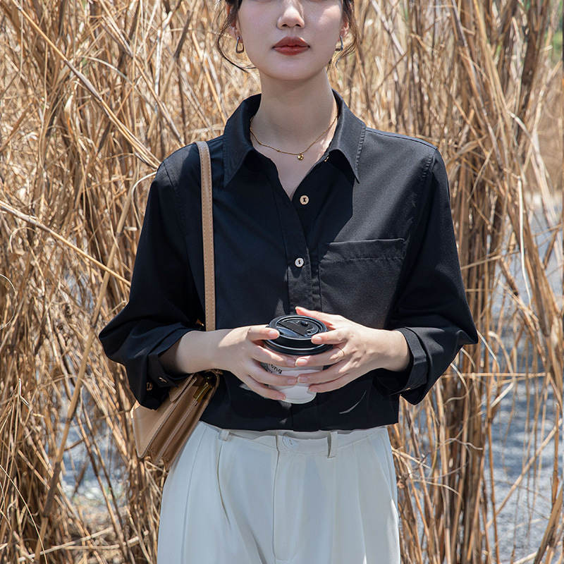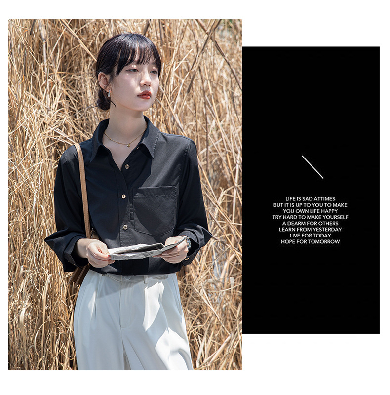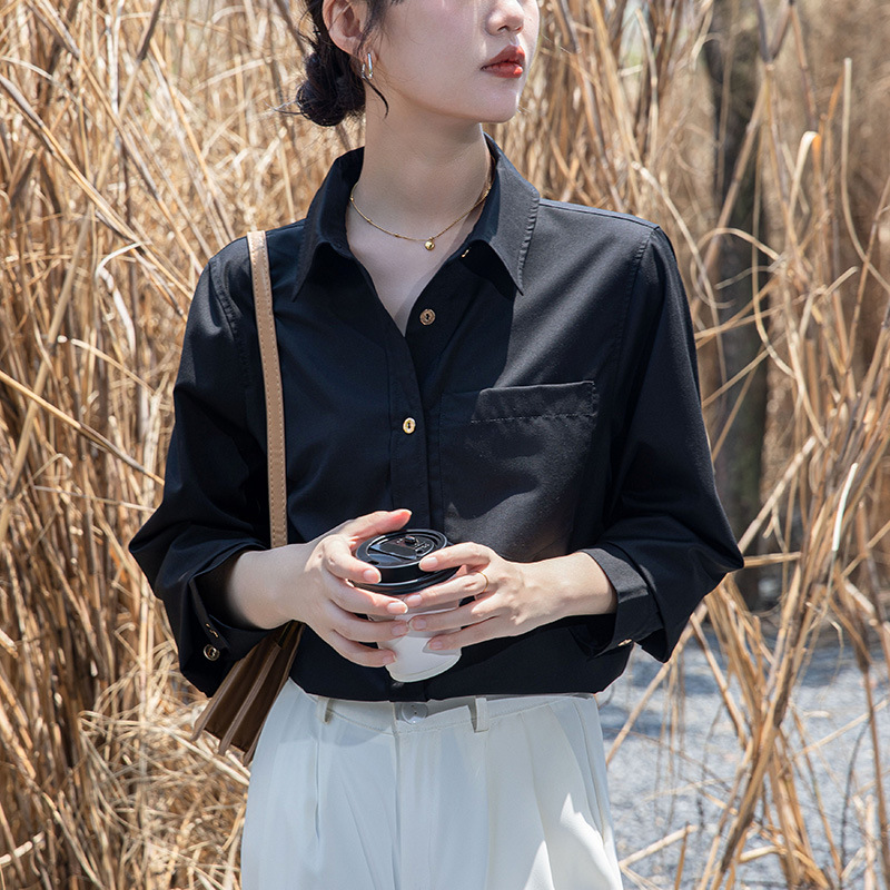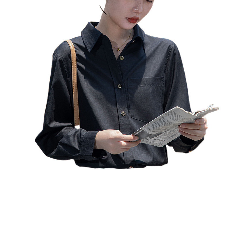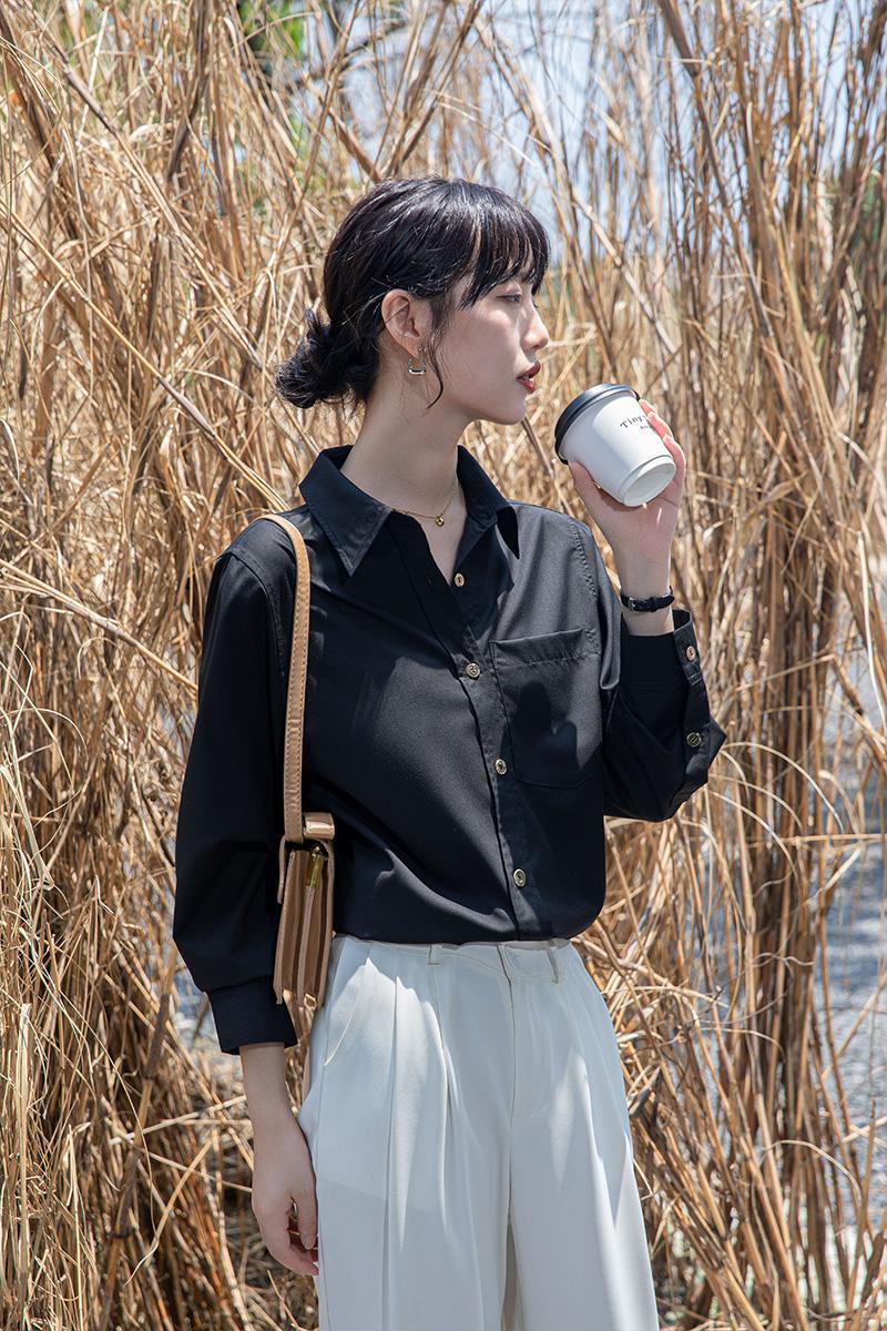Реальный выстрел новой черной рубашки женщины весной 2025 года