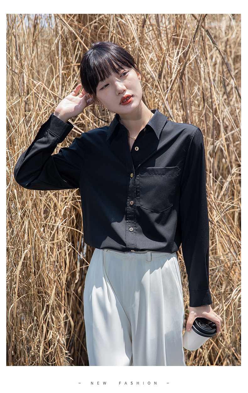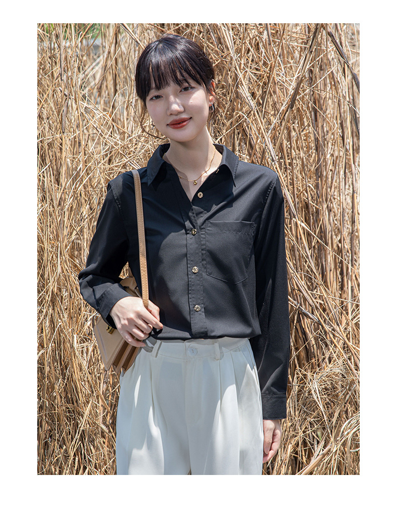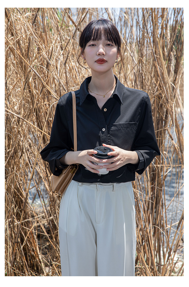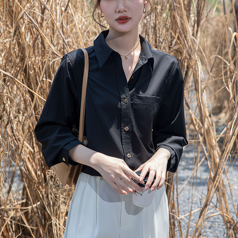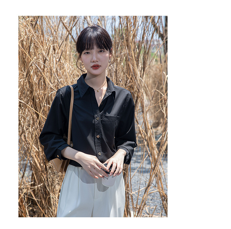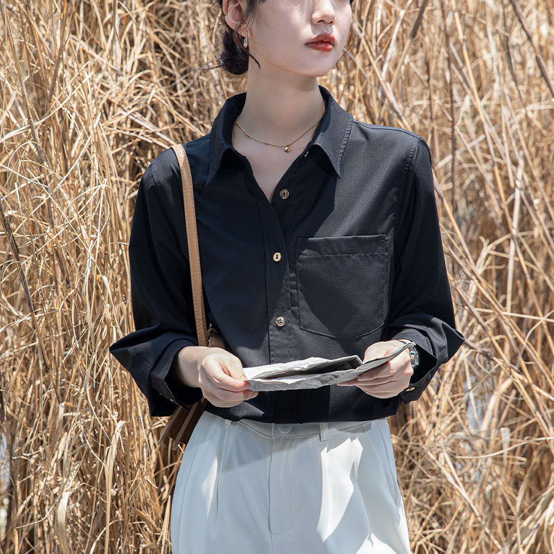 Реальный выстрел новой черной рубашки женщины весной 2025 года