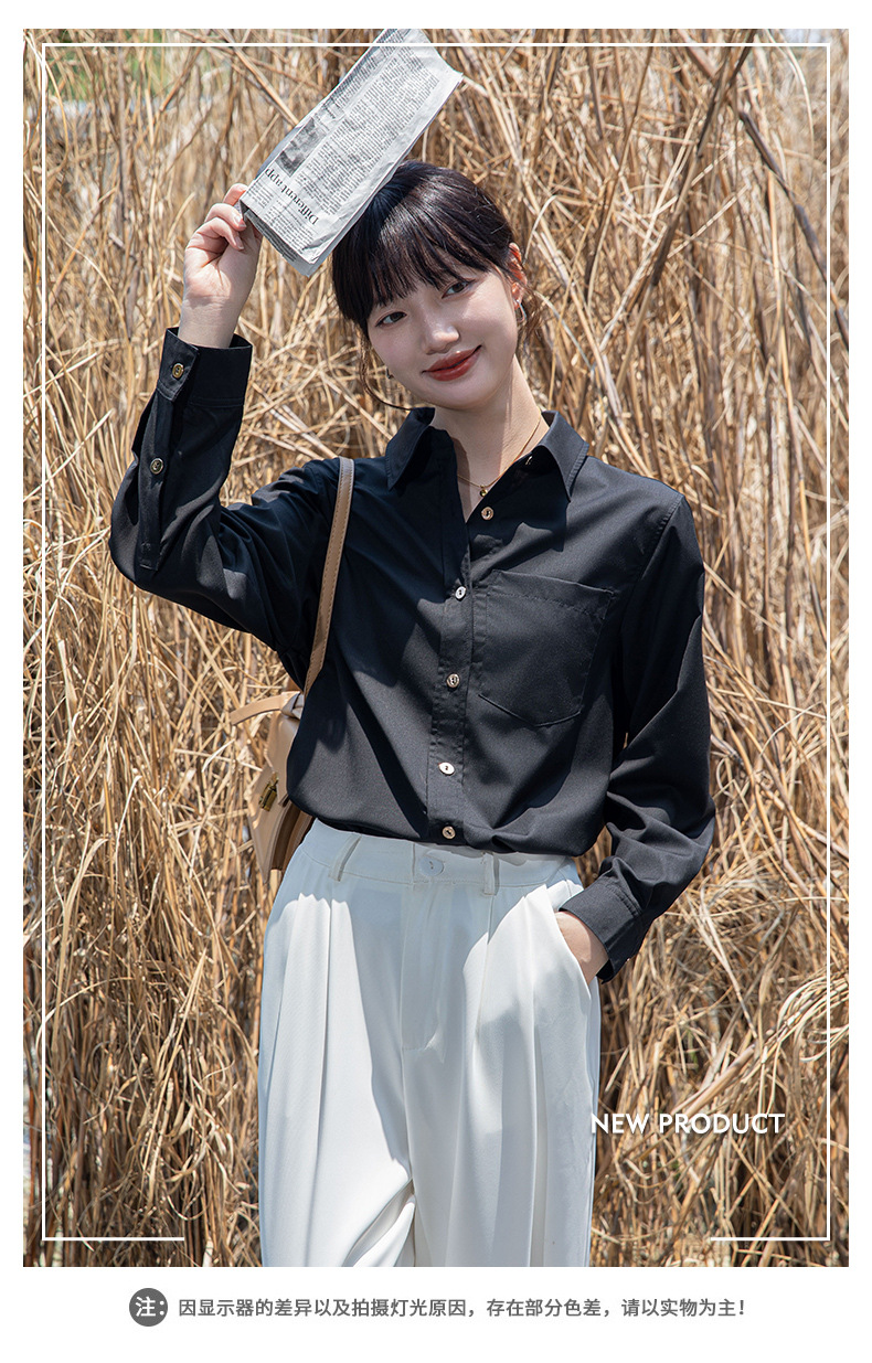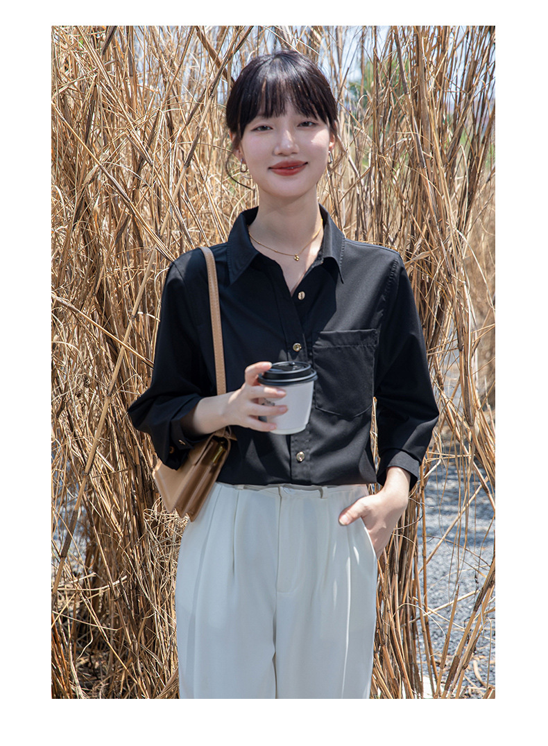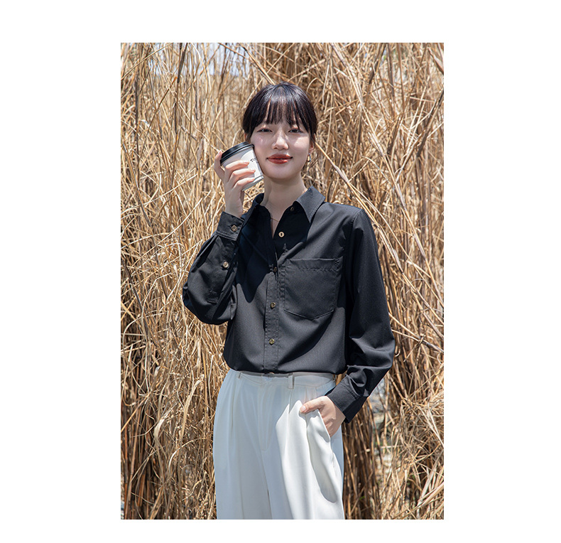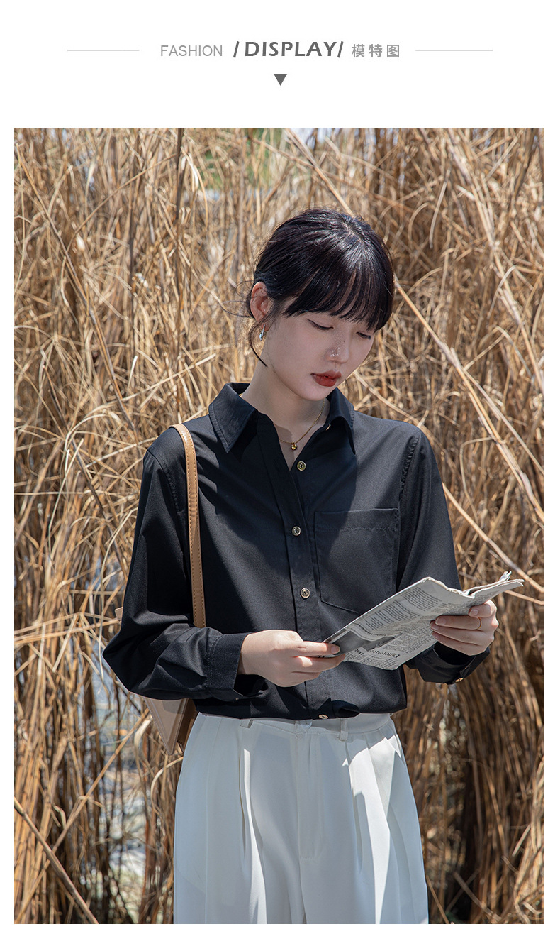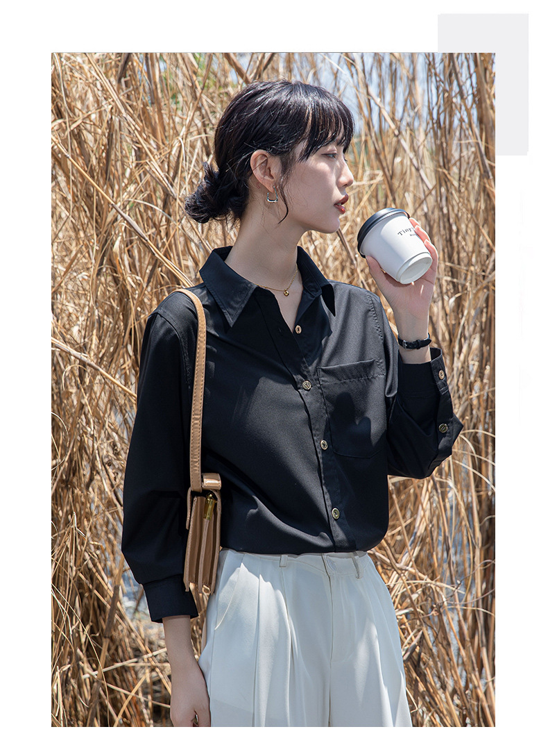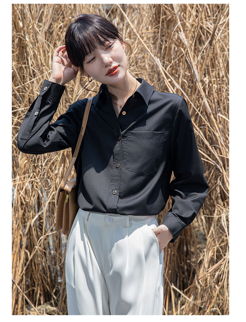 Реальный выстрел новой черной рубашки женщины весной 2025 года