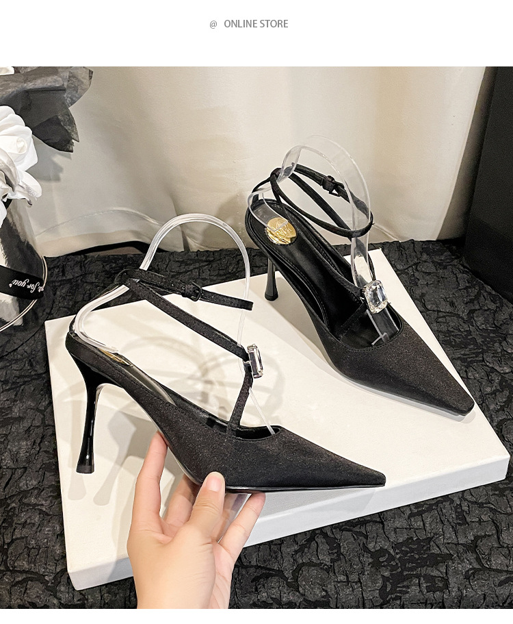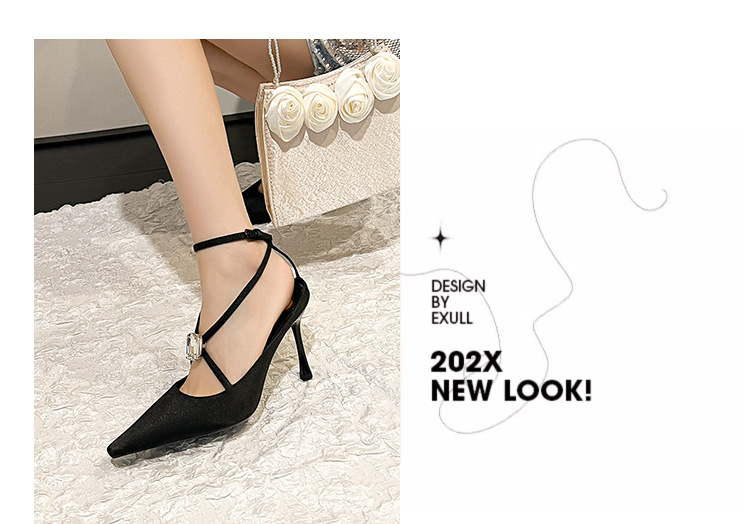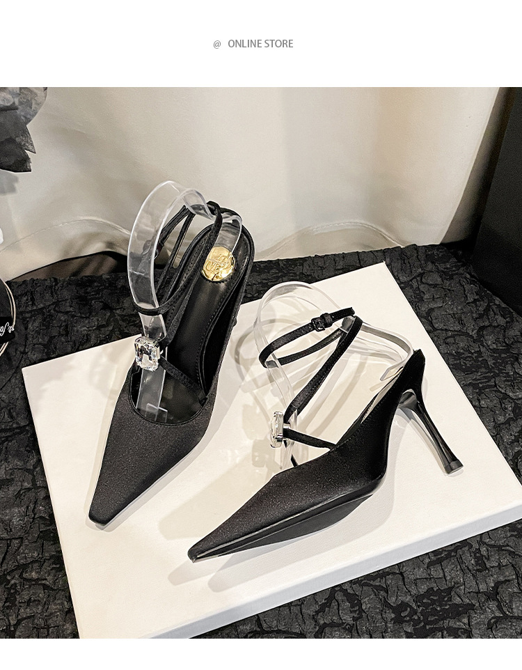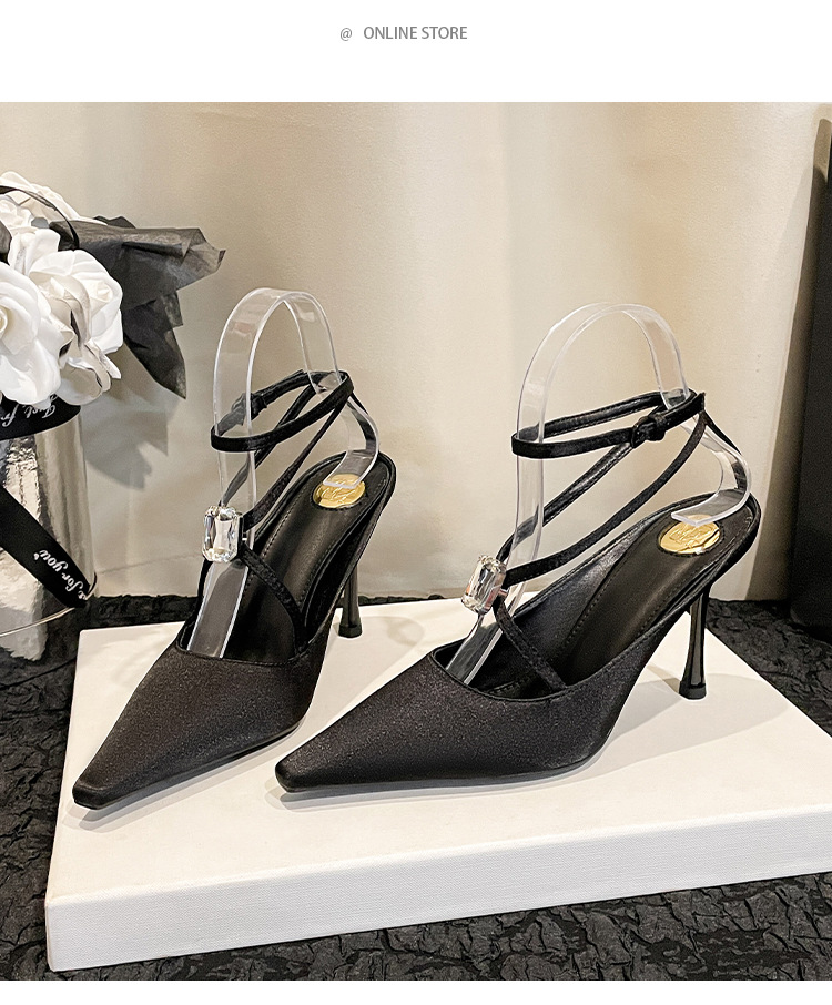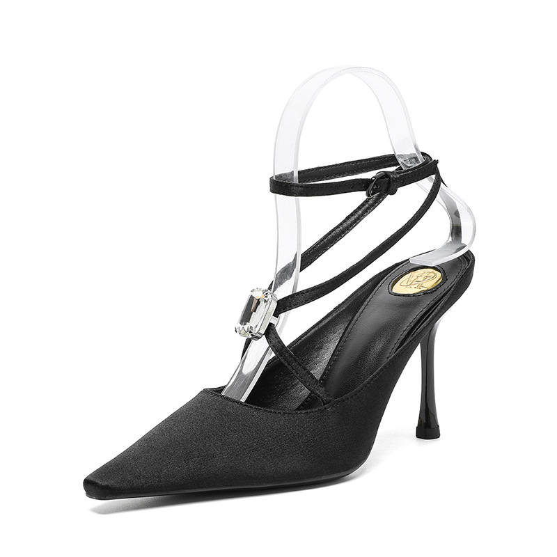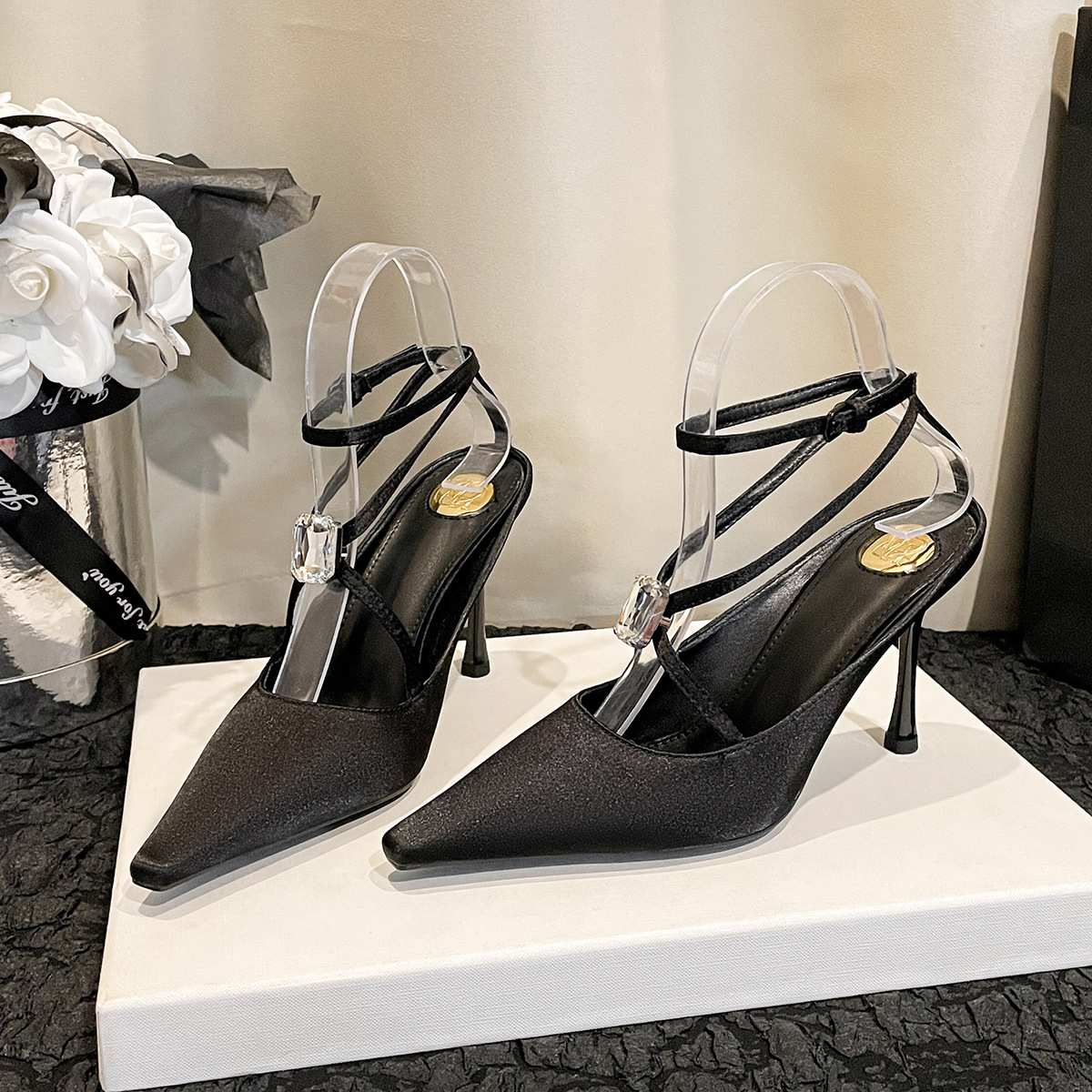 2025 весна и лето новые стразы скрещенные сексуальные туфли на высоком каблуке атласные большие каменные туфли на каблуках