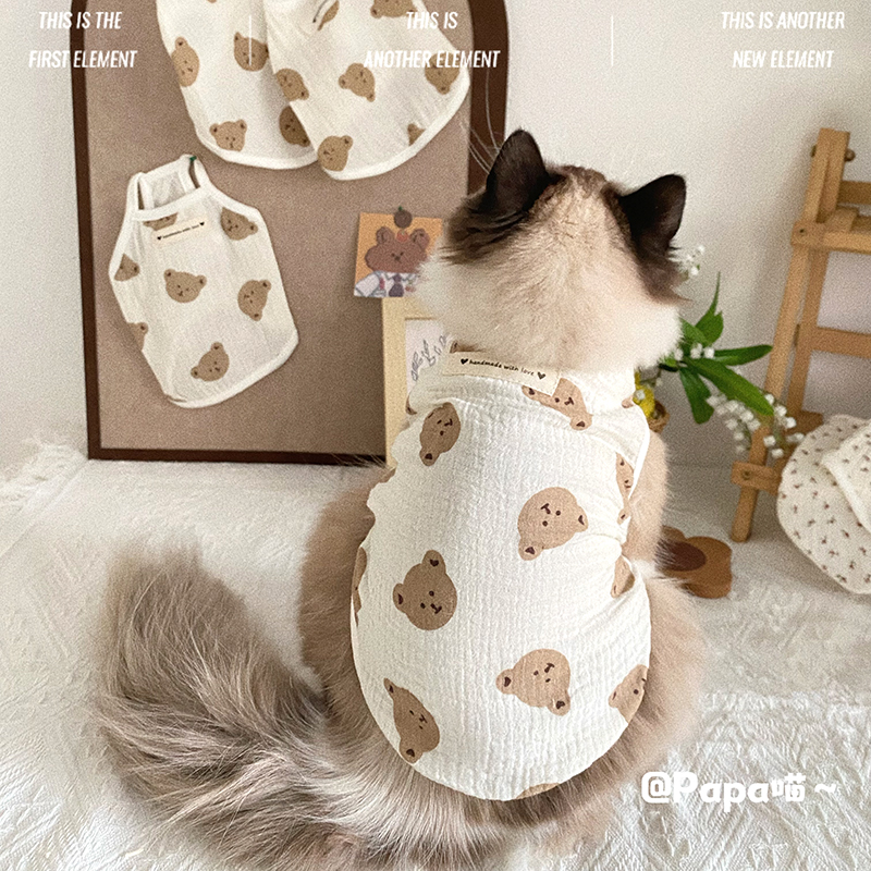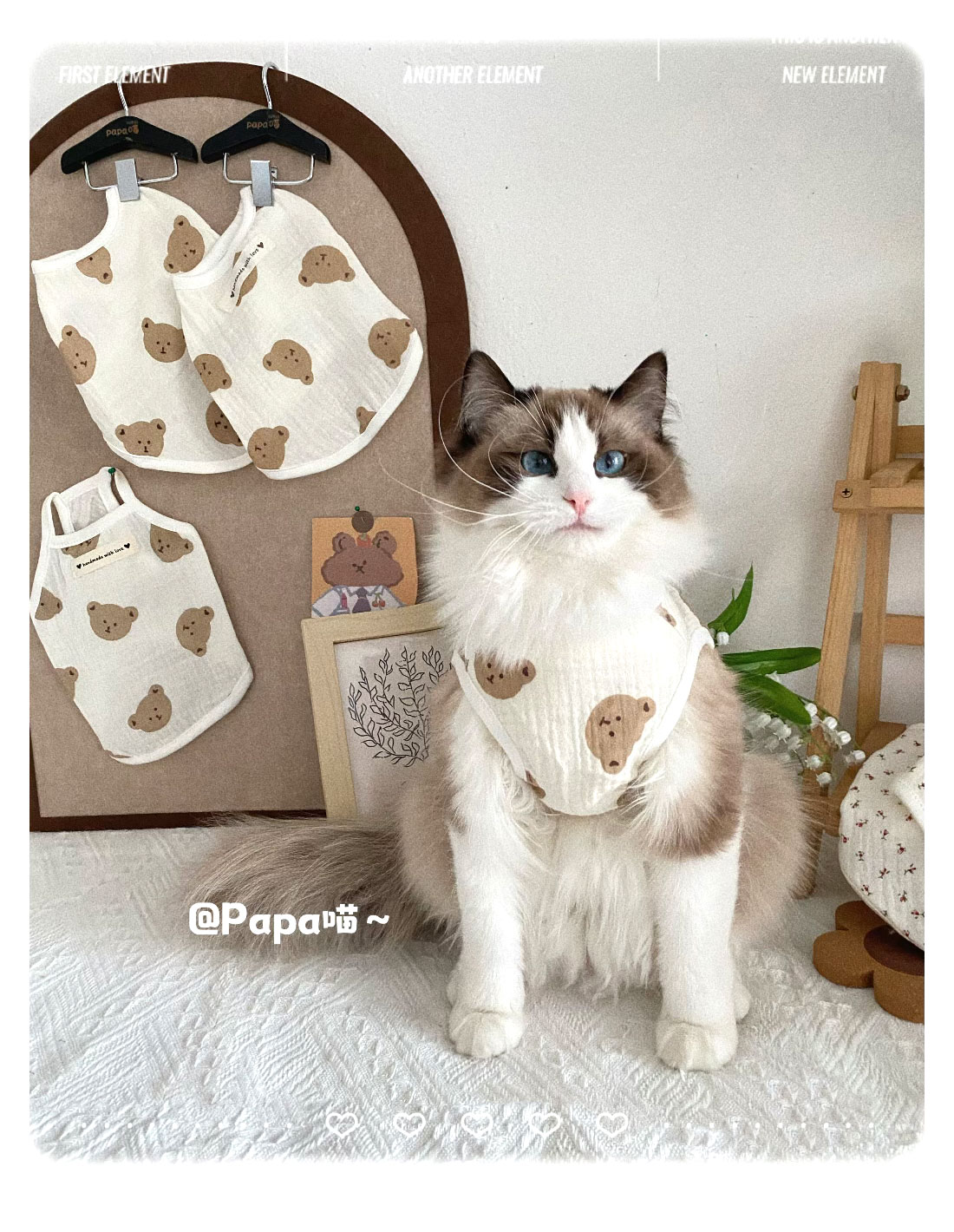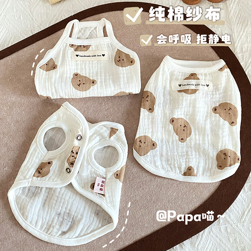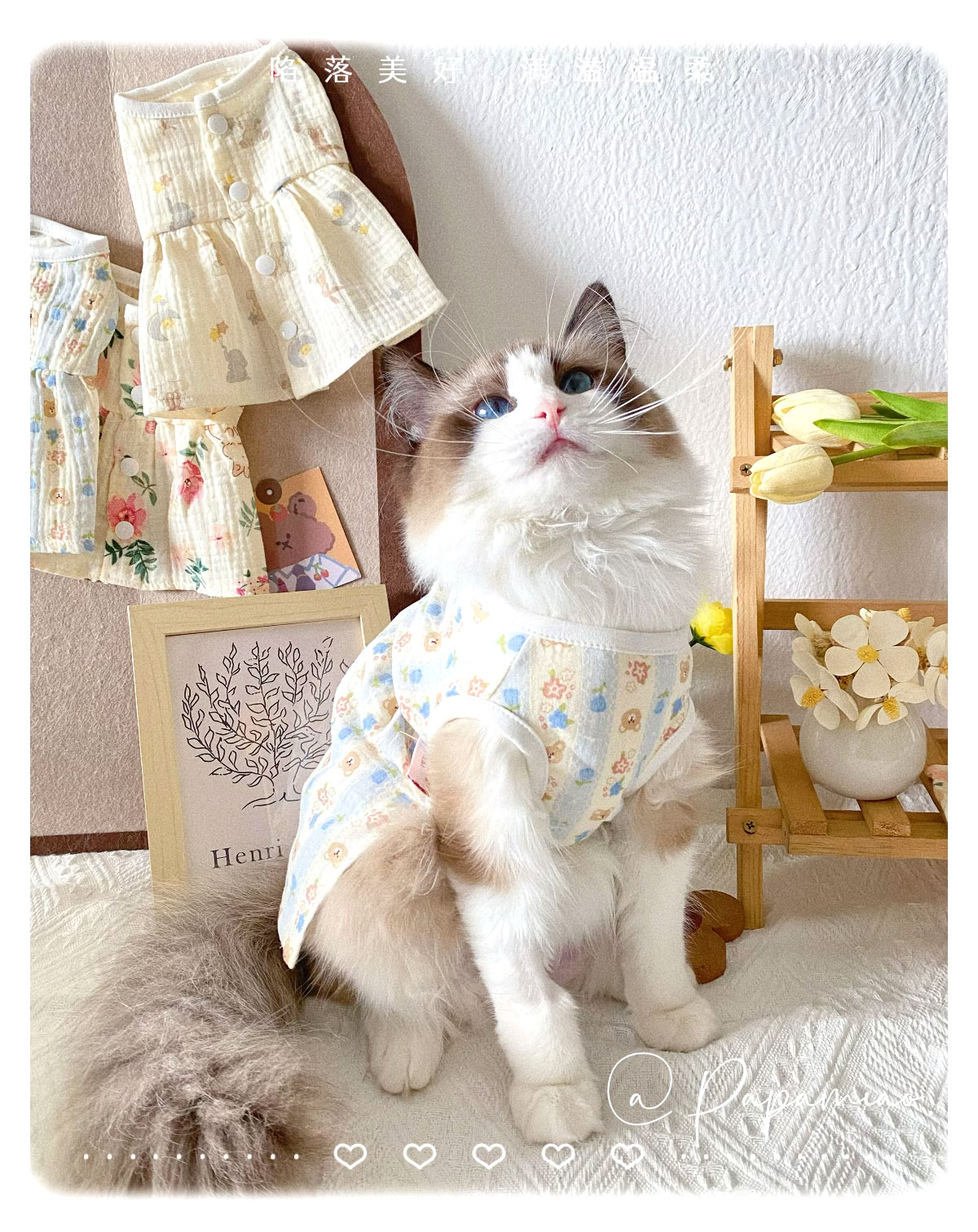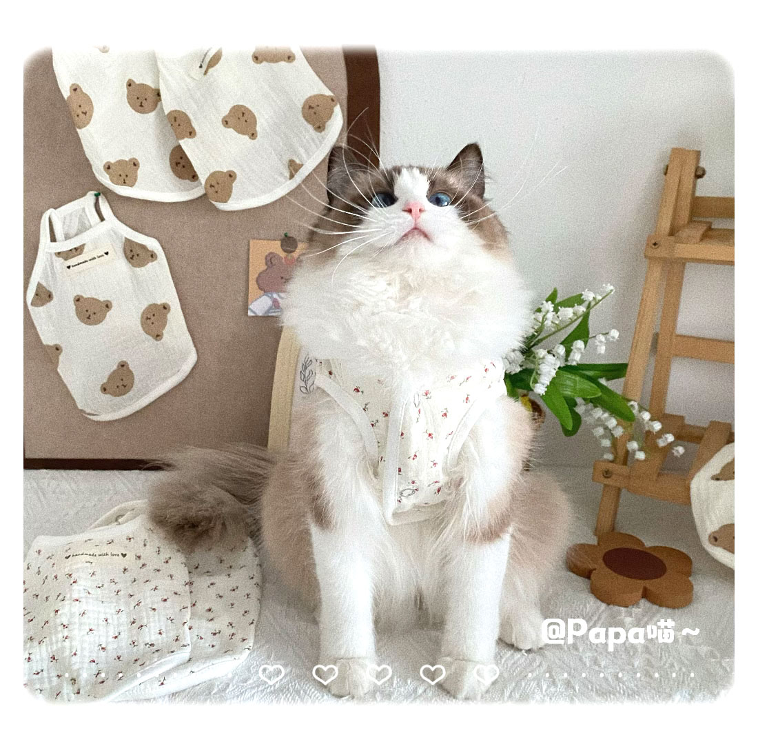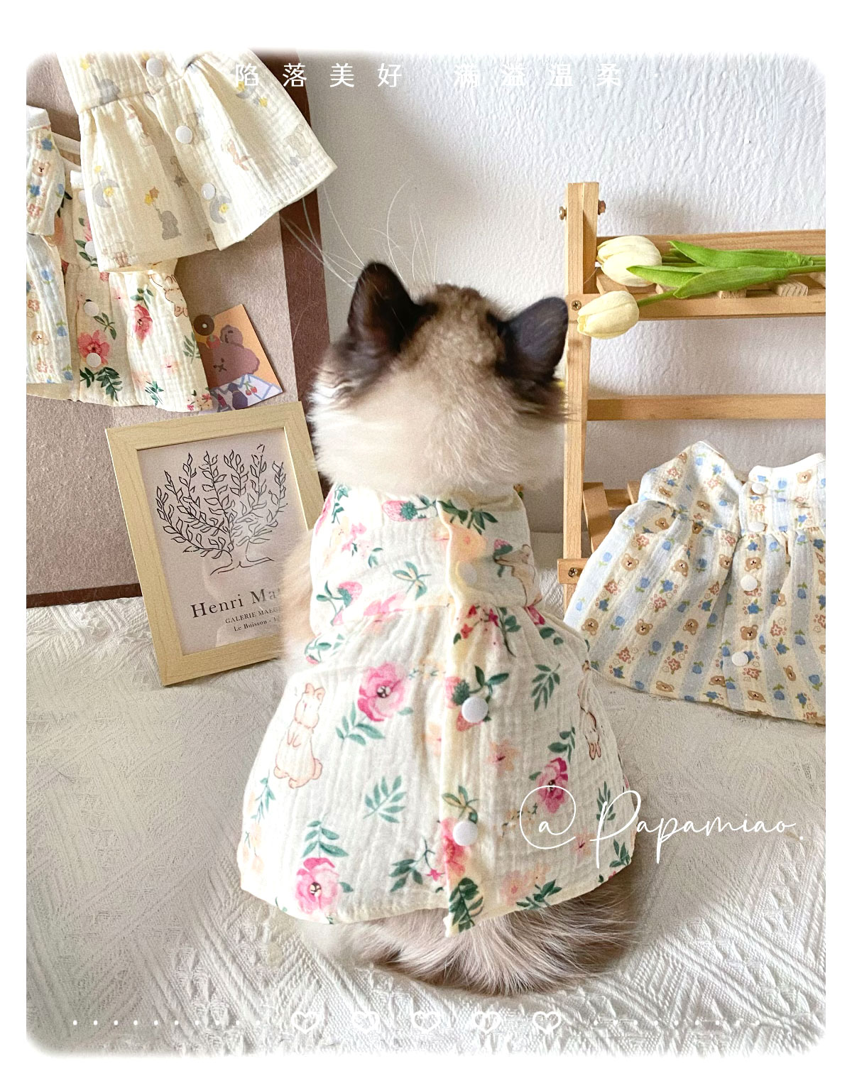 Хлопковая кошка одежда кардиган без рукавов весной и летом марля милый жилет собаки солнцезащитный жилет тонкая юбка против выпадения волос