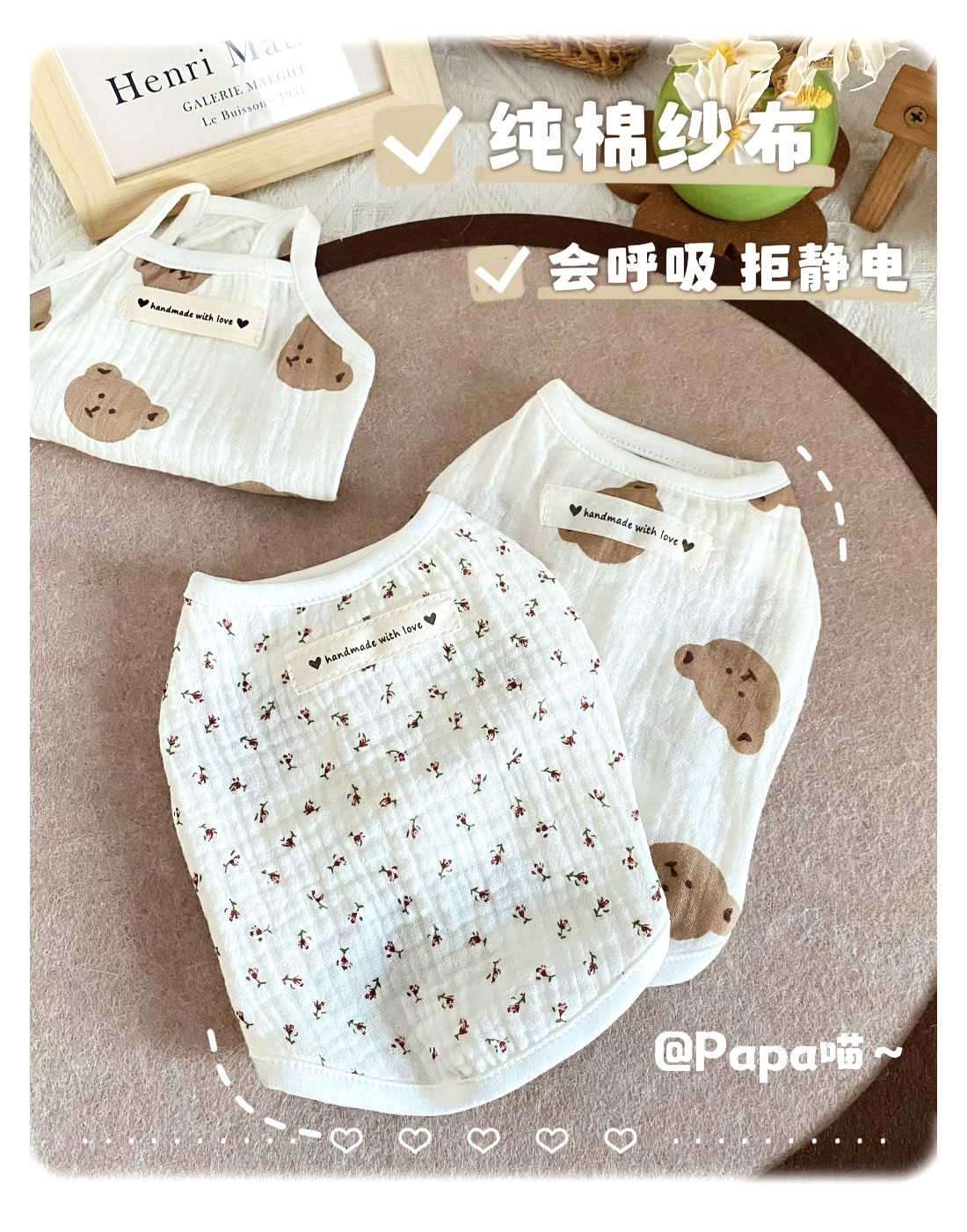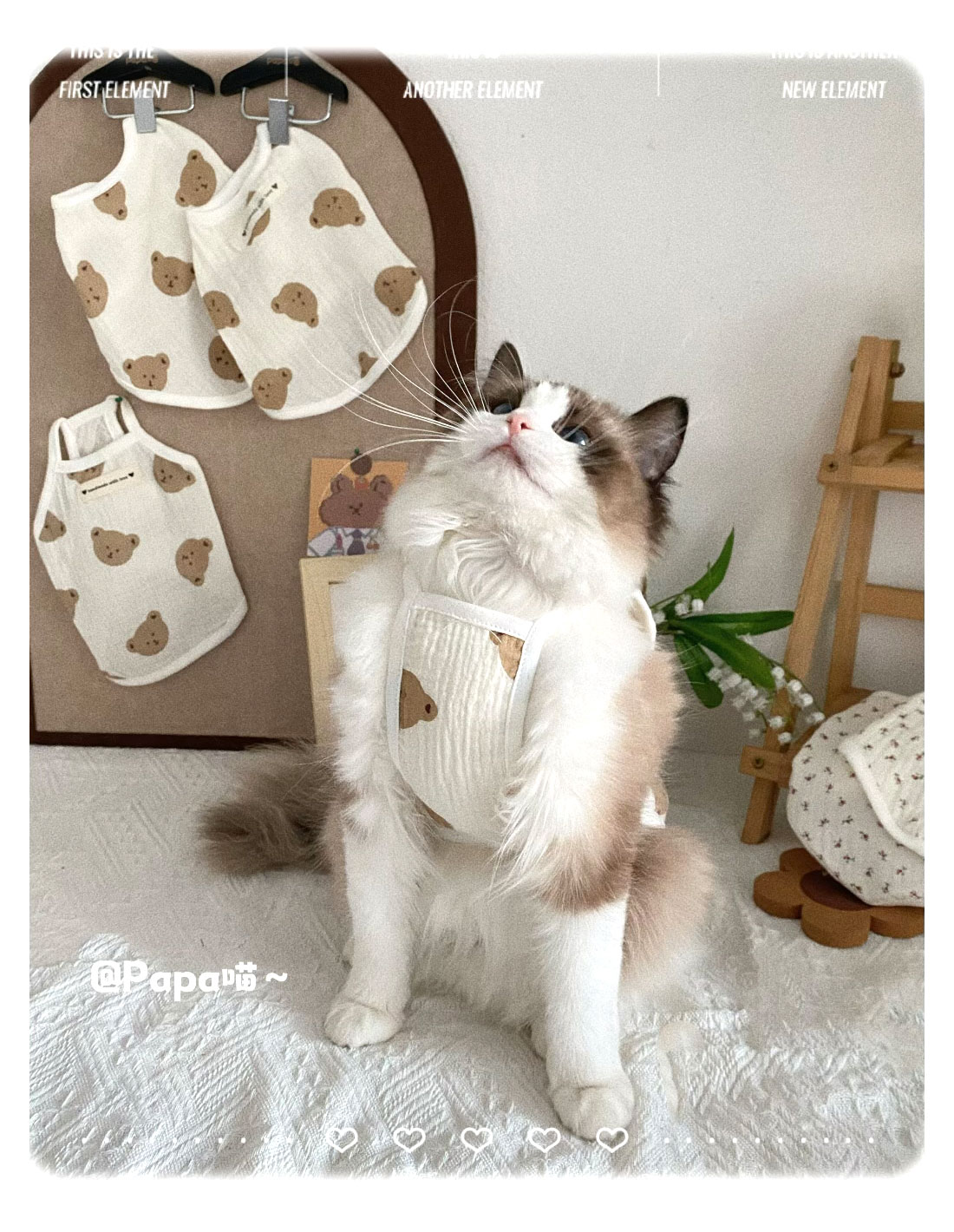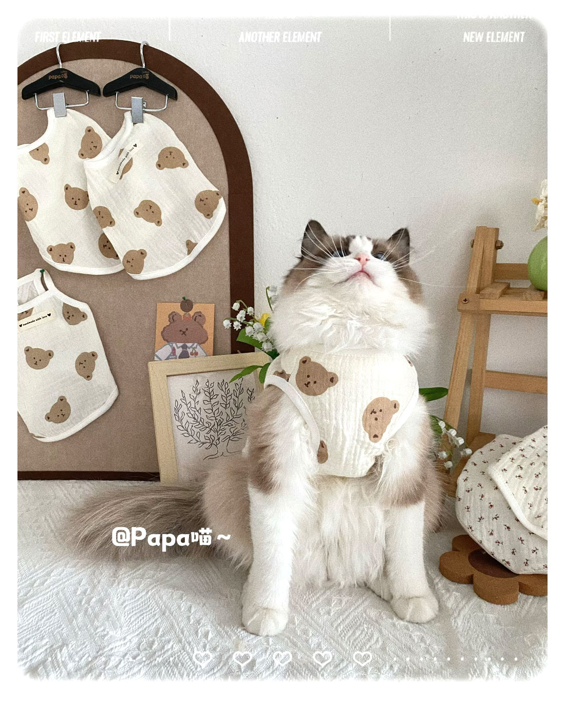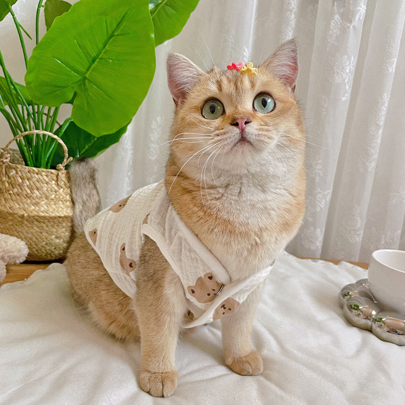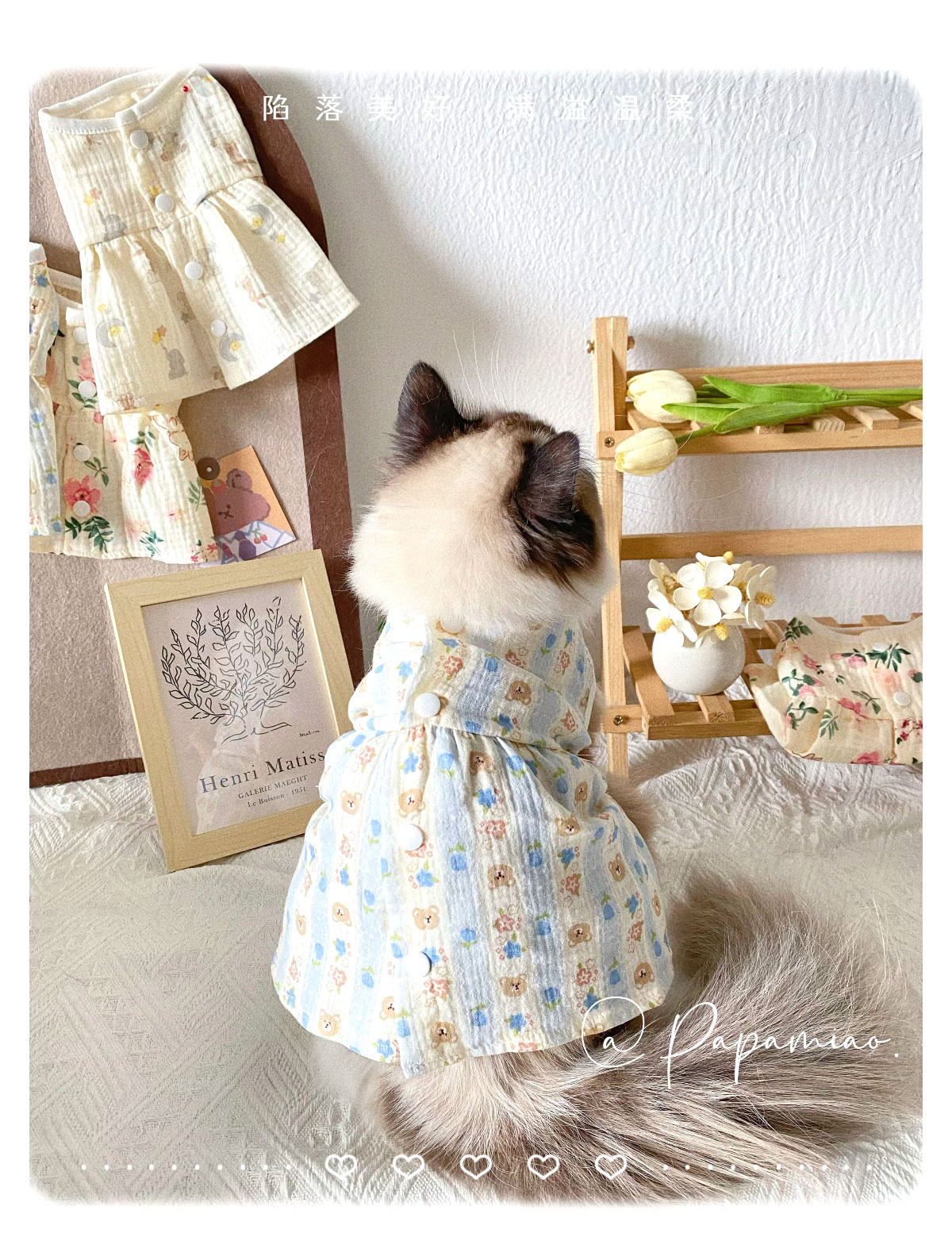 Хлопковая кошка одежда кардиган без рукавов весной и летом марля милый жилет собаки солнцезащитный жилет тонкая юбка против выпадения волос