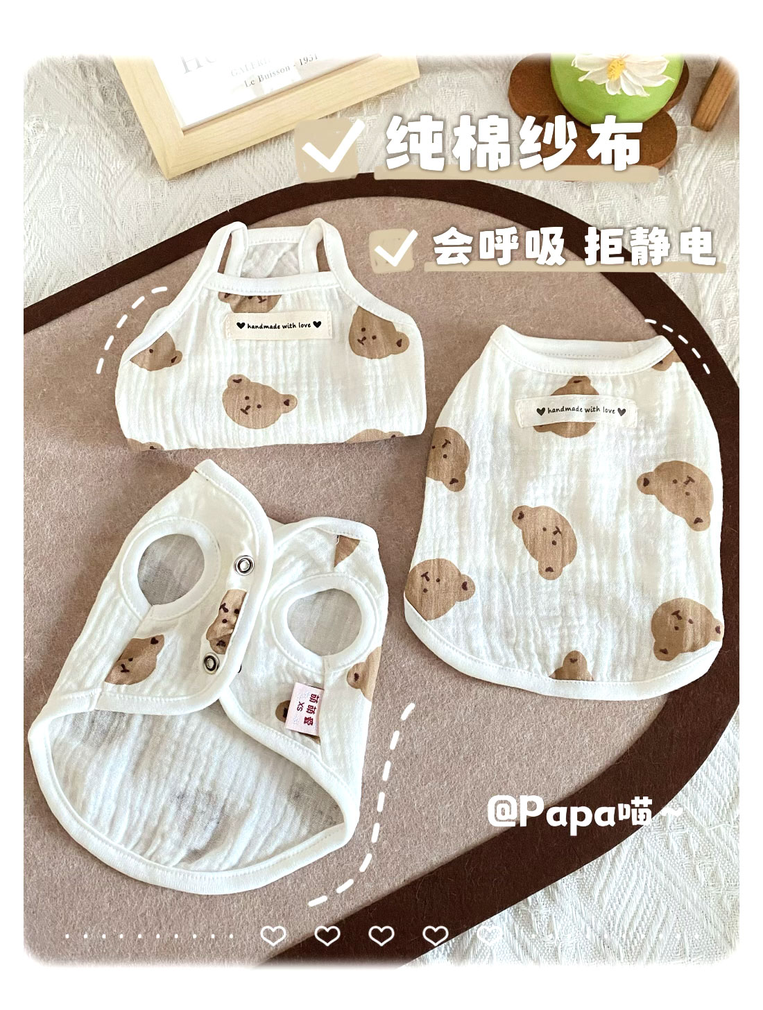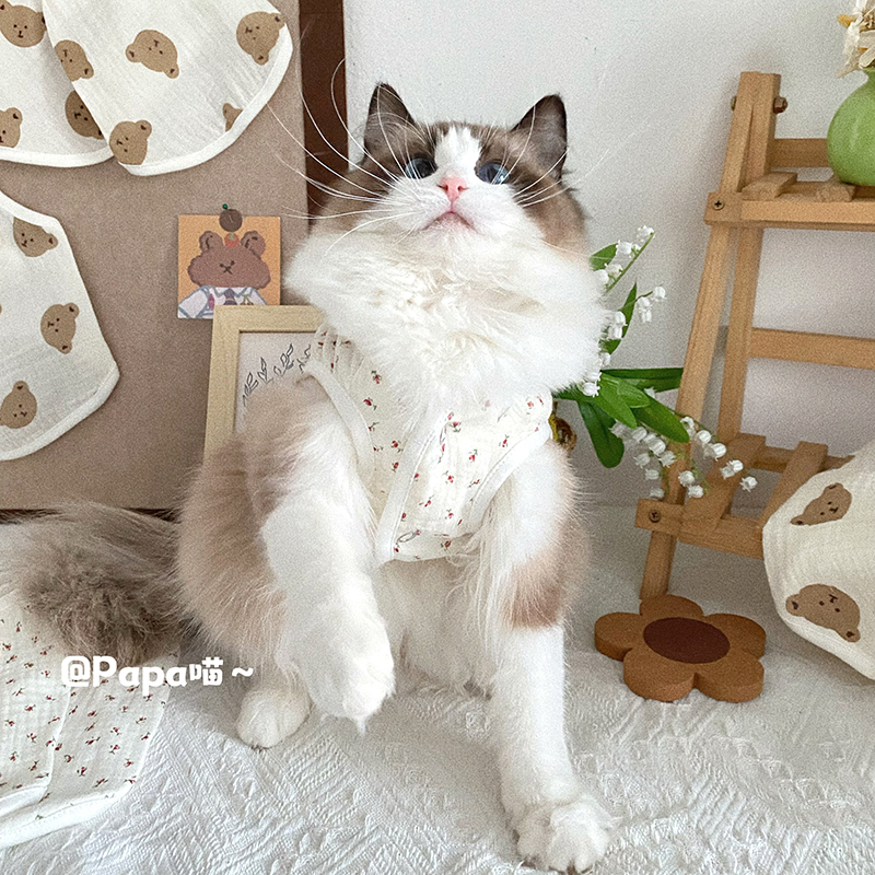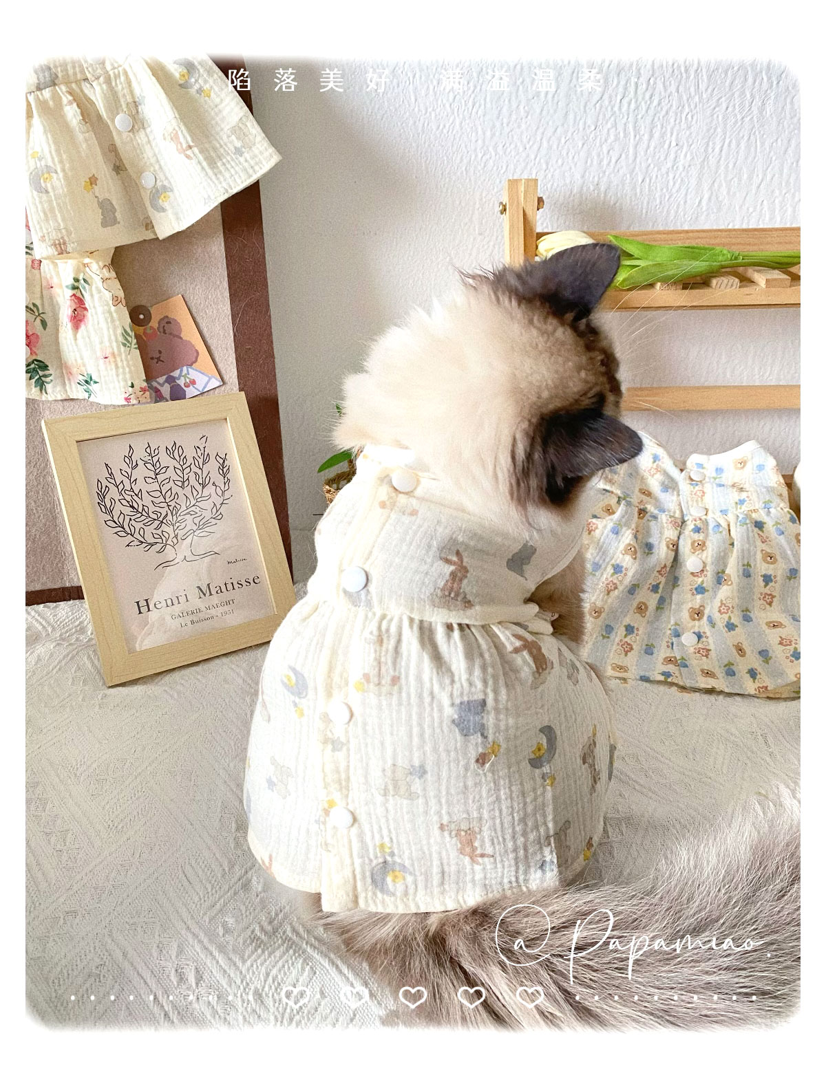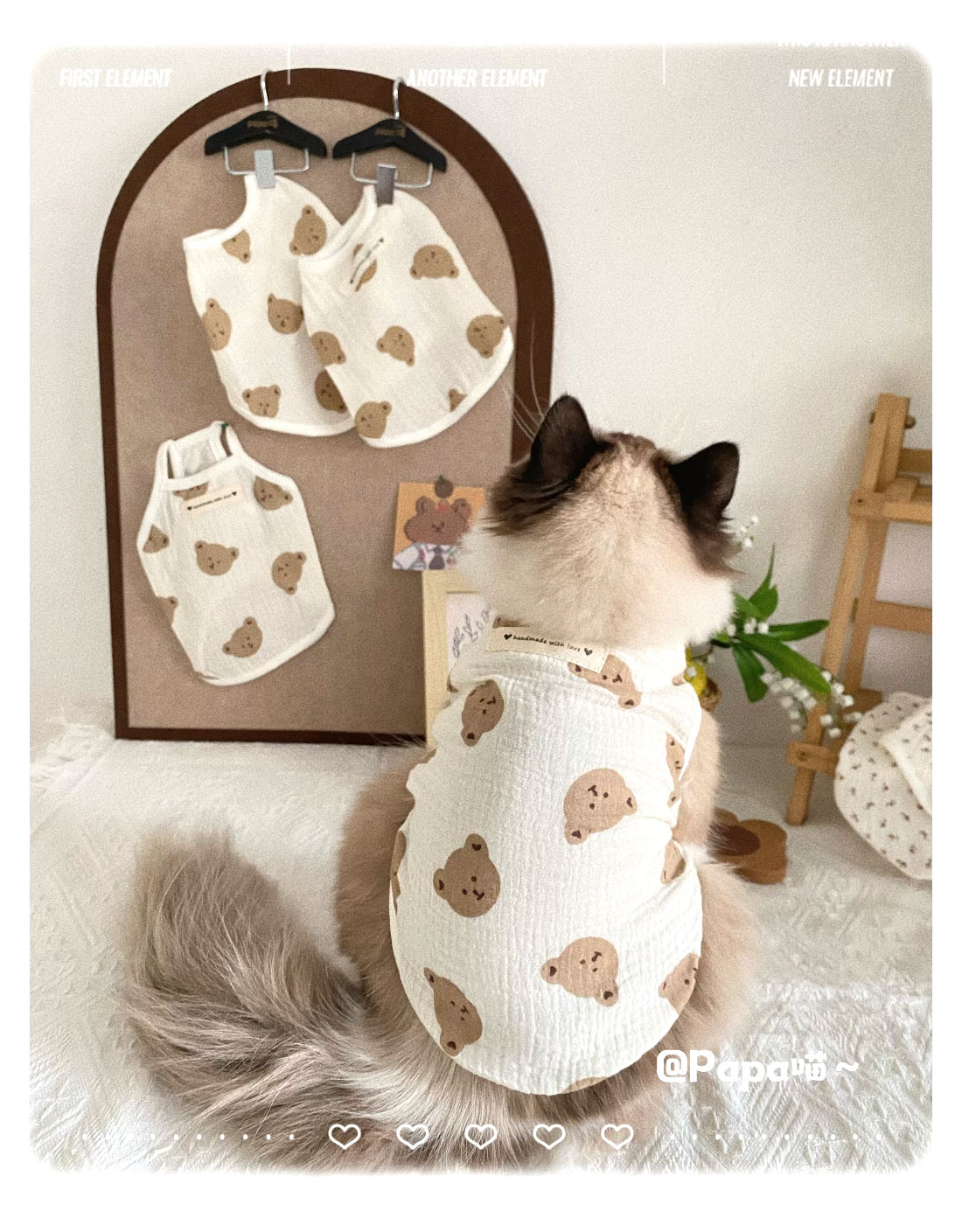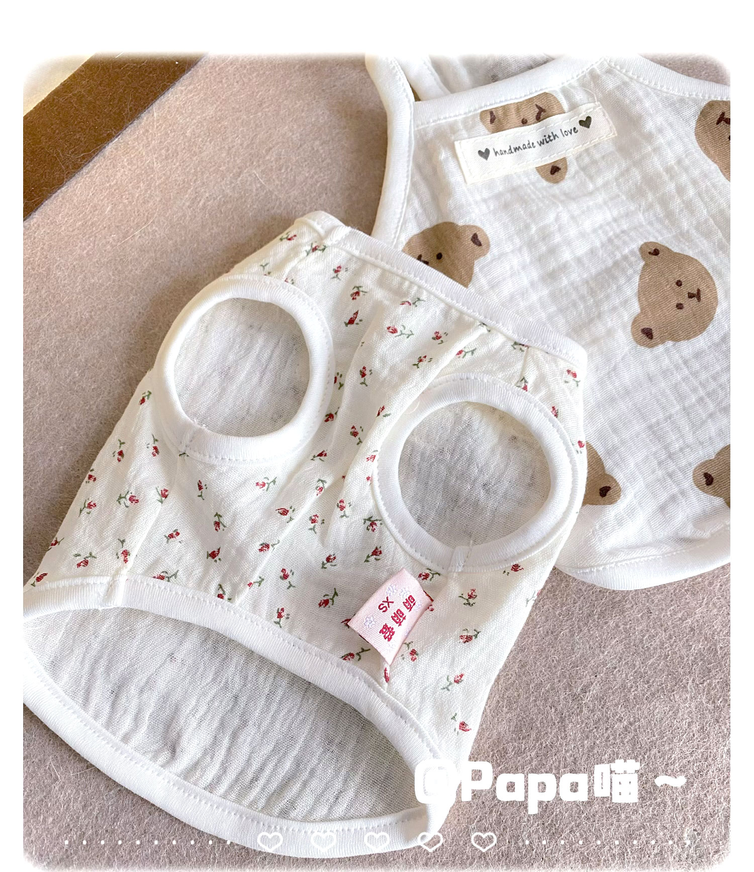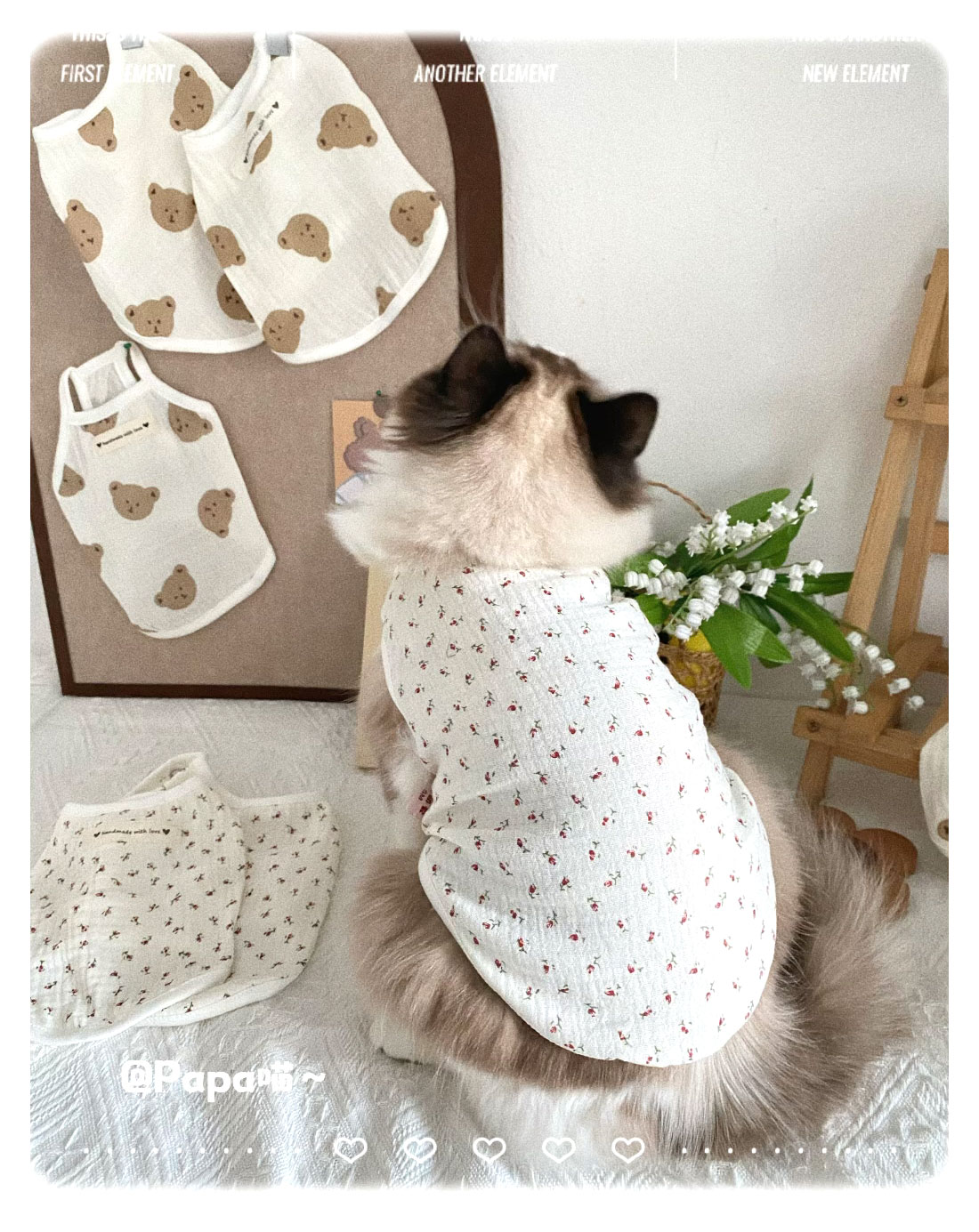 Хлопковая кошка одежда кардиган без рукавов весной и летом марля милый жилет собаки солнцезащитный жилет тонкая юбка против выпадения волос