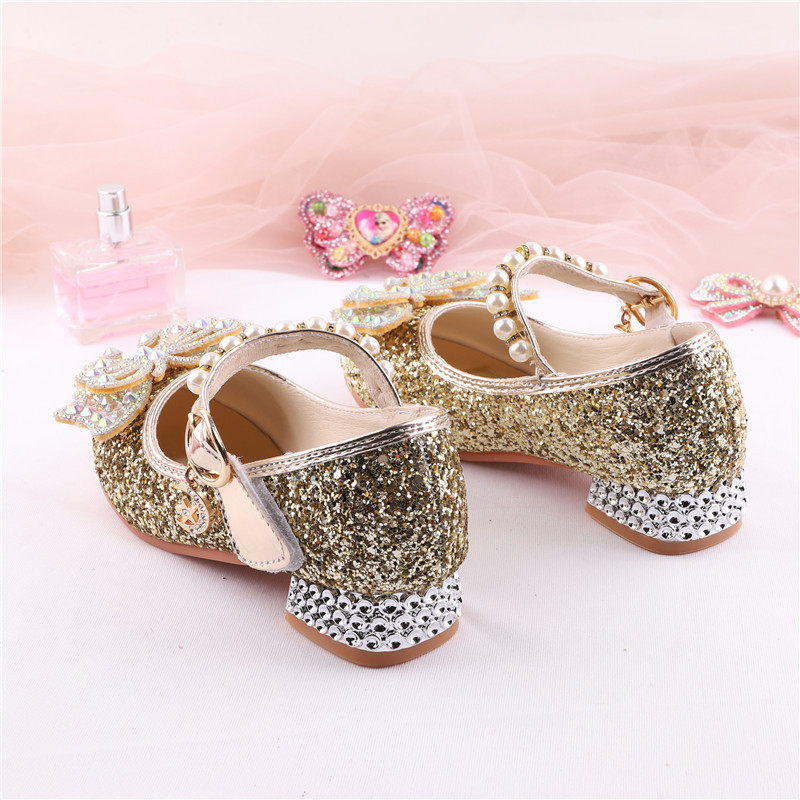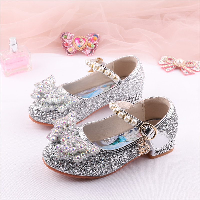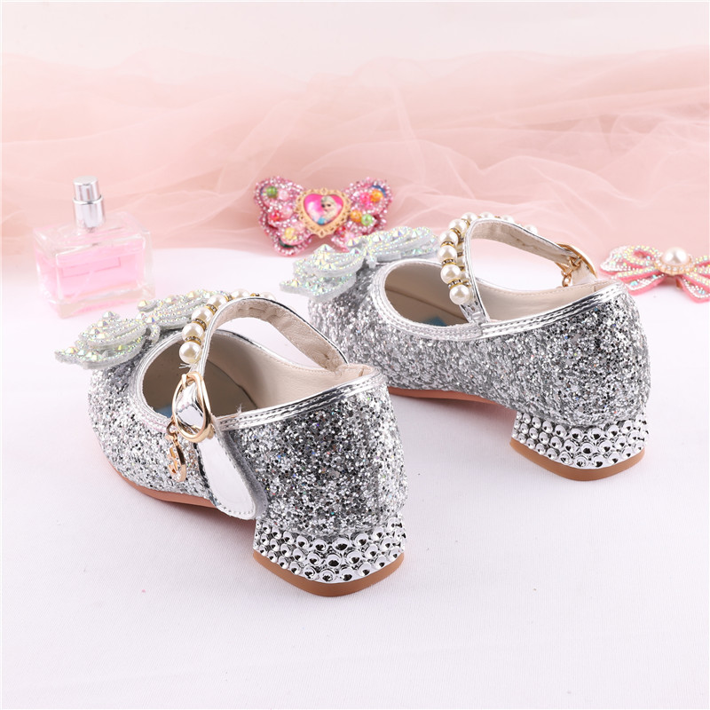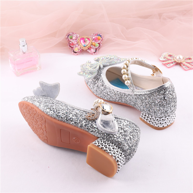 Принцесса Айша обувь корейские детские туфли на высоком каблуке одиночные туфли новые стразы хрустальные туфли студенческие танцевальные туфли серебряные