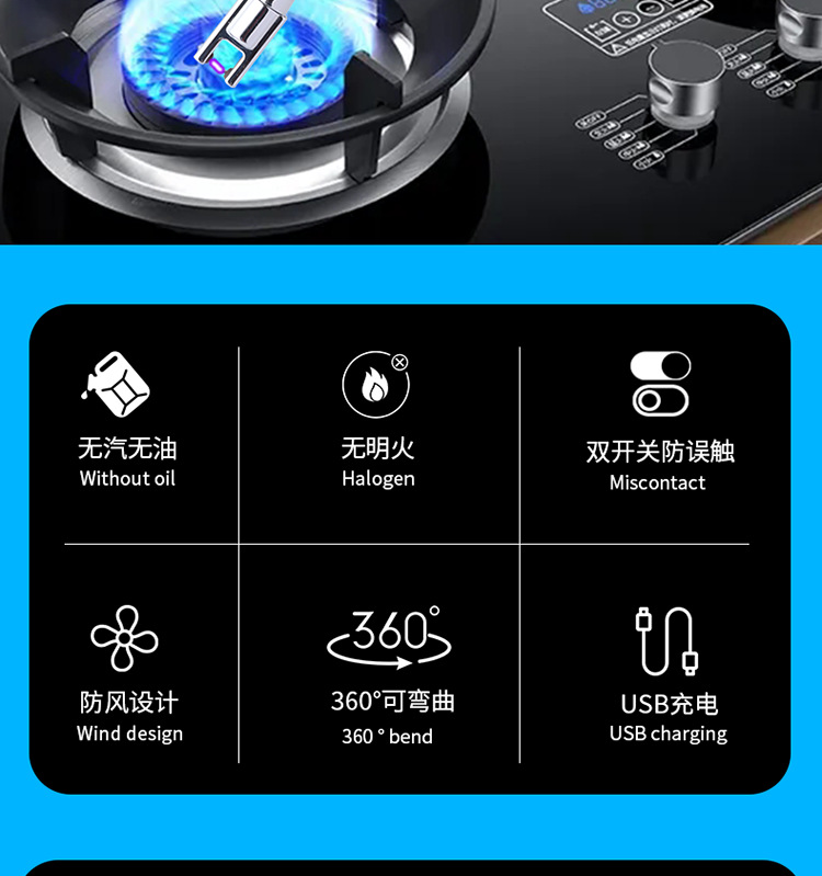Кухонная зажигалка для бытовой газовой плиты, электронная импульсная зажигалка, палочка для зажигания