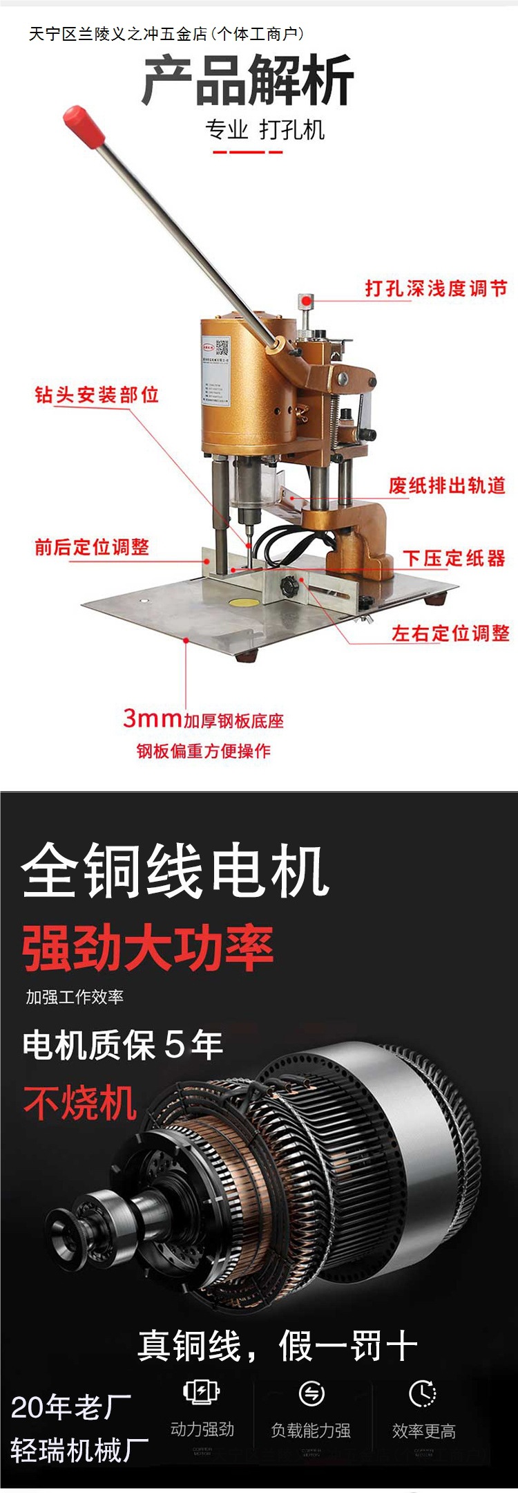 Электрическая бирка перфоратор с одним круглым отверстием ваучер перфорация бумаги перфоратор медная проволока мотор для одежды перфоратор