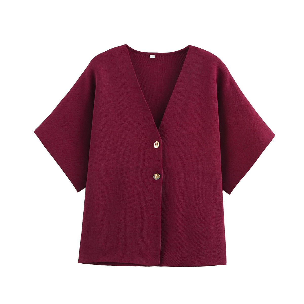 PB & ZA Женская одежда 2025 новая весна мода темперамент дикий V-образный вырез с плоским рукавом свитер с короткими рукавами