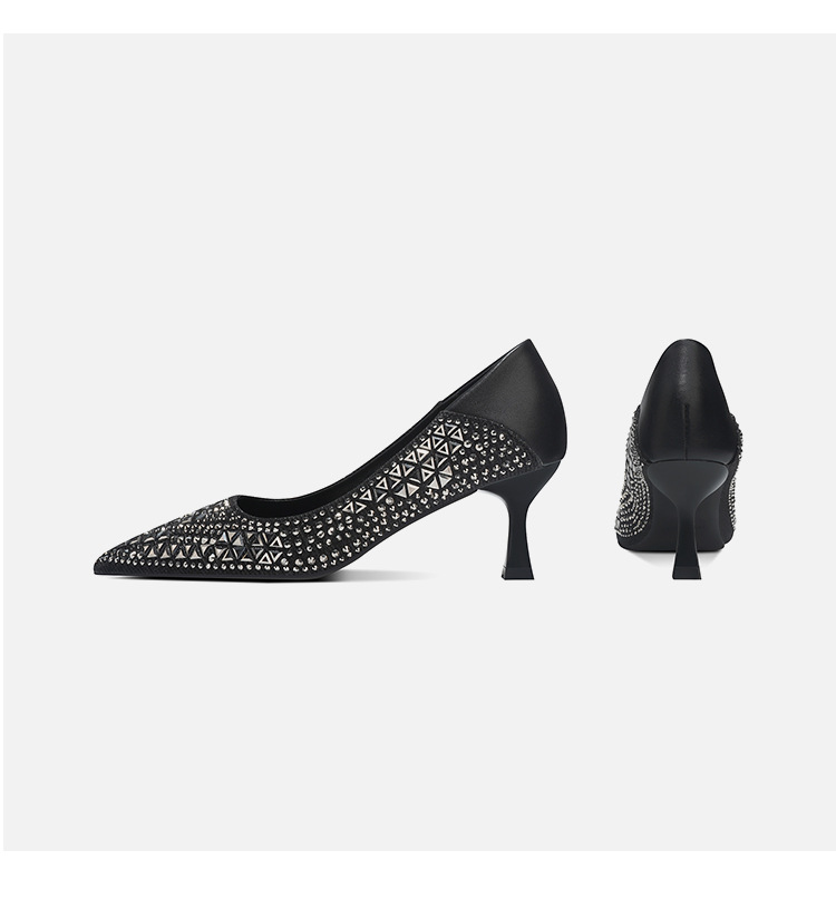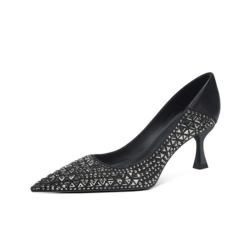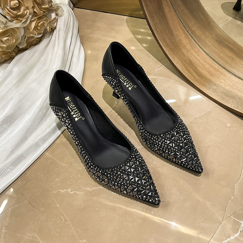 Новая весна и осень 2025 года с острыми стразами и мелкими туфлями на высоких каблуках