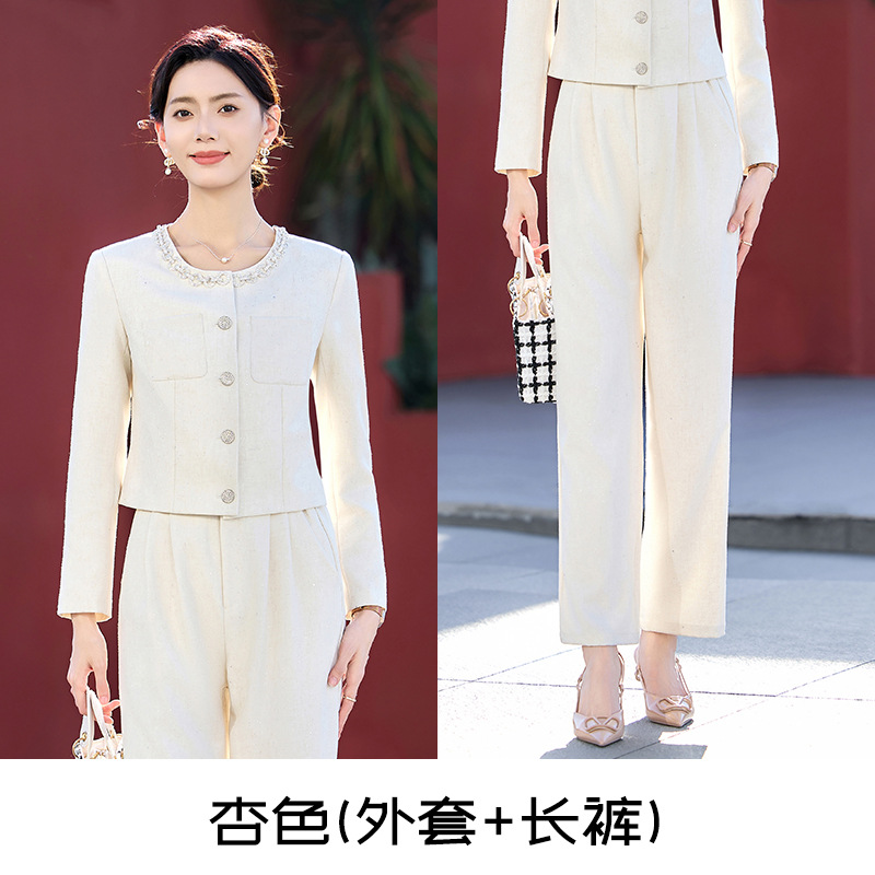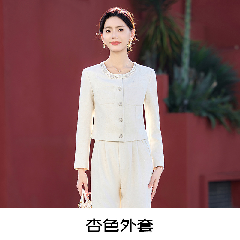 杏色小香风西装外套女春秋季款时尚休闲御姐风穿搭短款小西服上衣