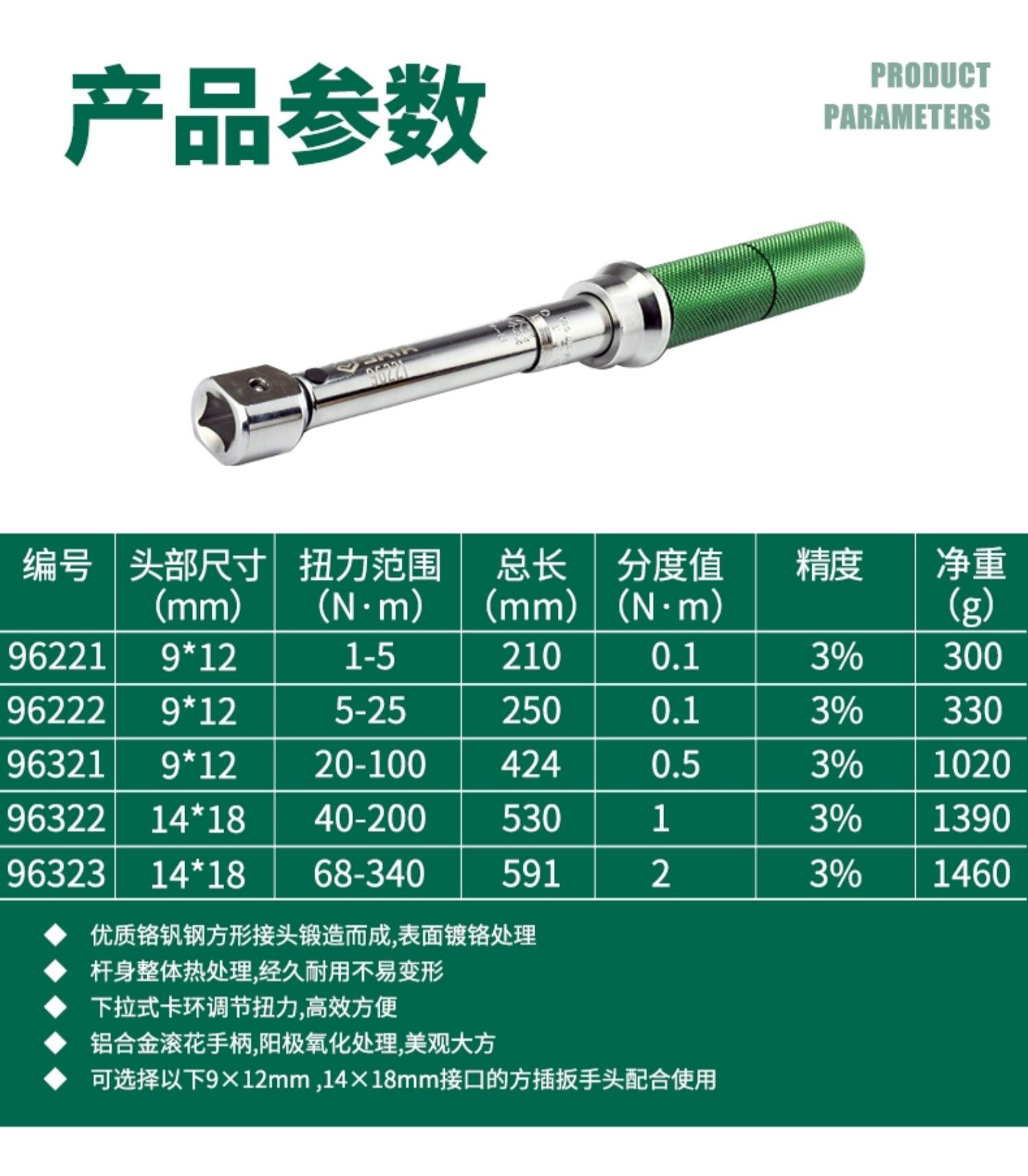96411/регулируемый 110-550 Нм; 96412/регулируемый 160-800 Нм; 96323/регулируемая замена головки 68-340 Нм