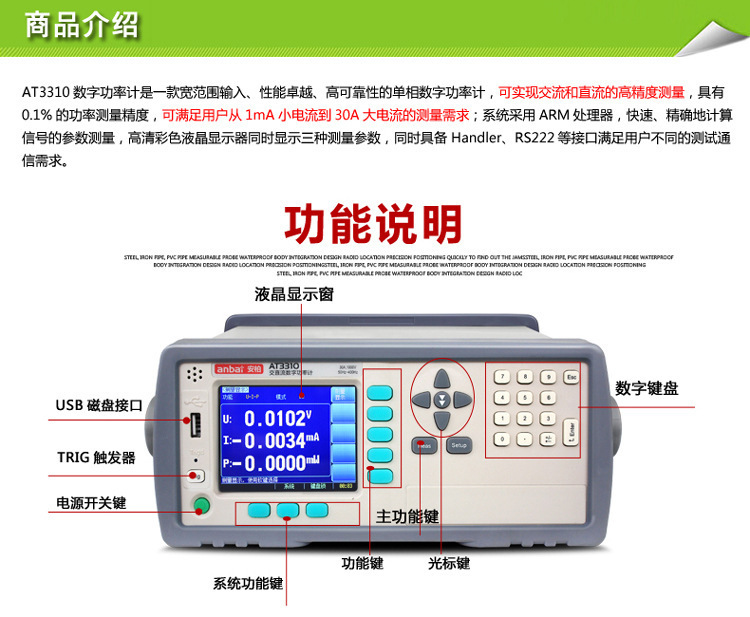 Amber AT3310 переменный и постоянный ток цифровой измеритель мощности измеритель электрических параметров Напряжение 1000V/ток 20A