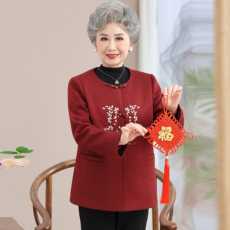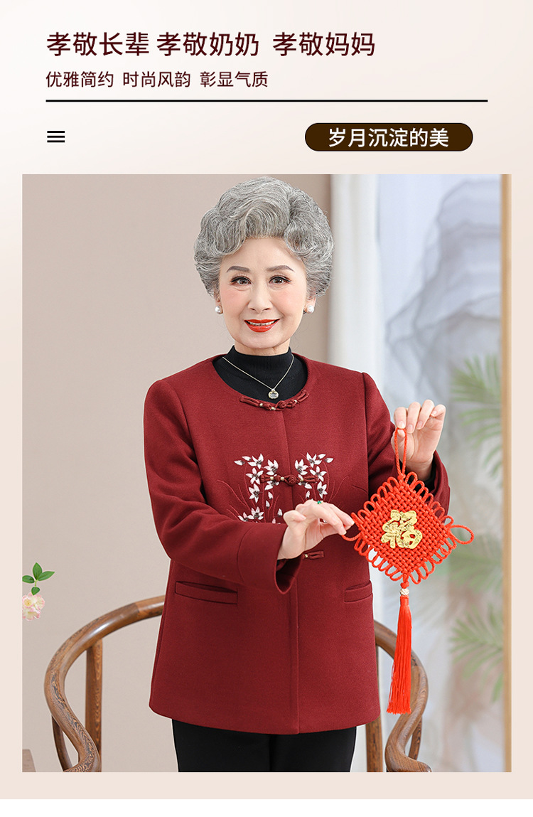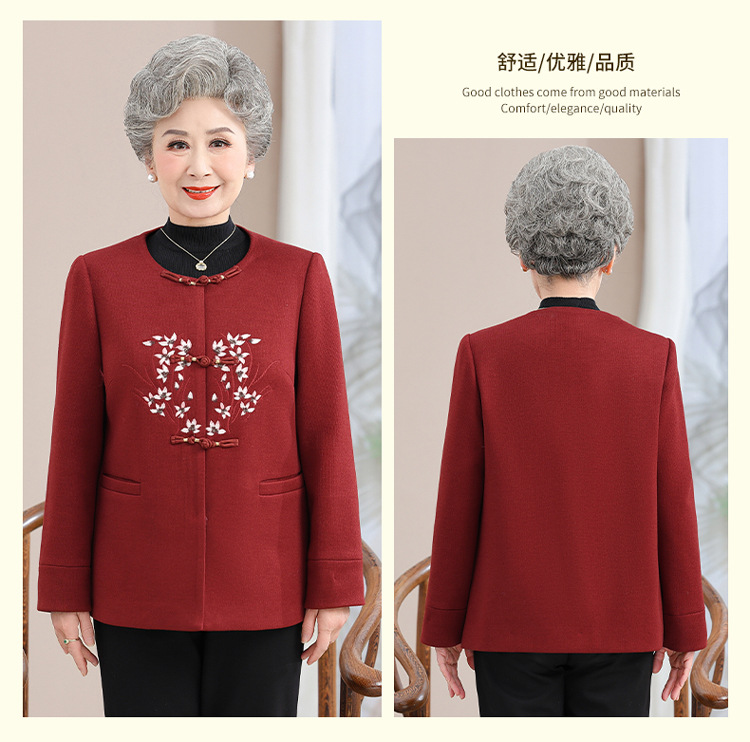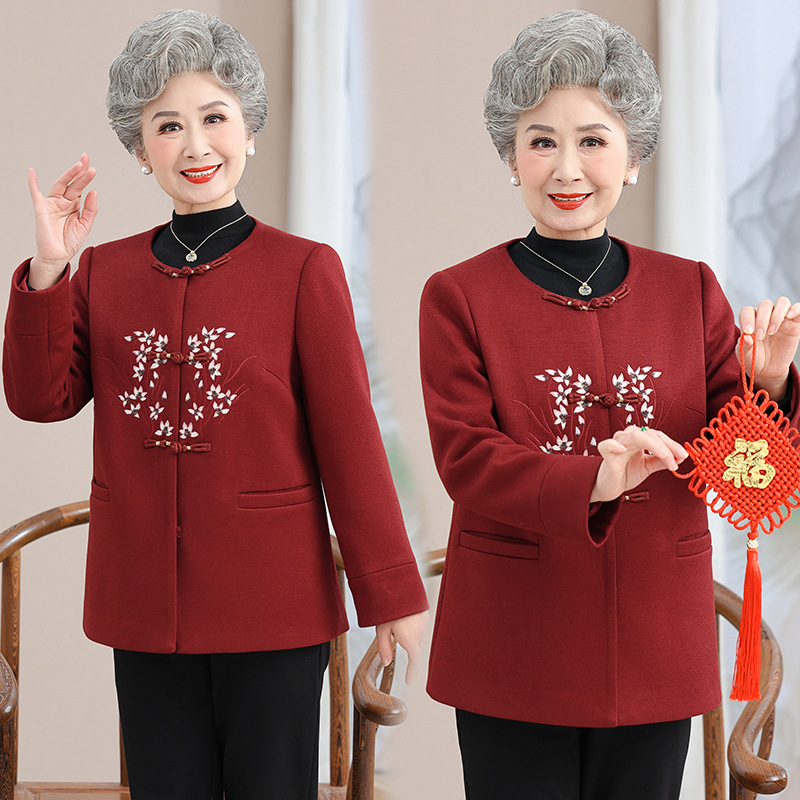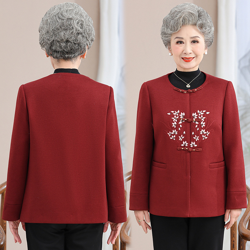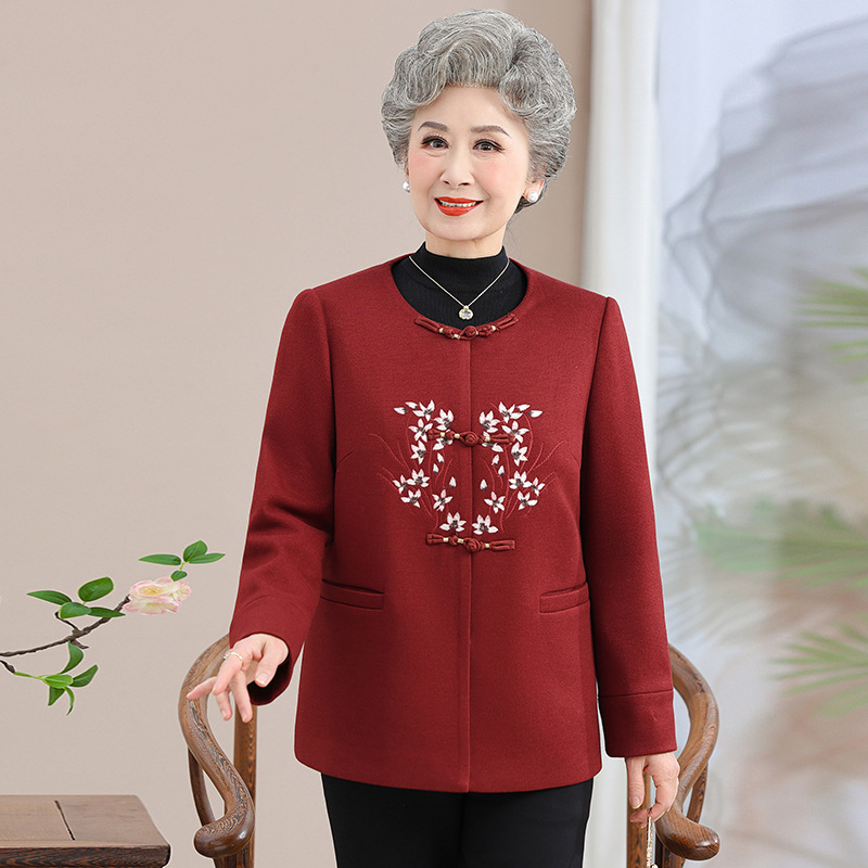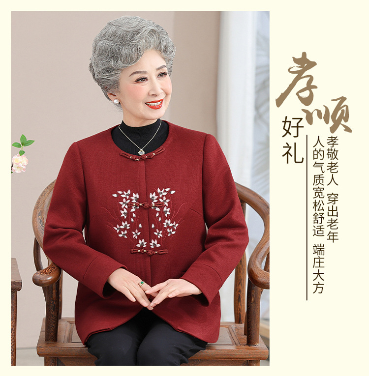 Новая китайская мама осенью и зимой вышитая шерстяная куртка для пожилых женщин весна и осень благородный национальный стиль кардиган топ