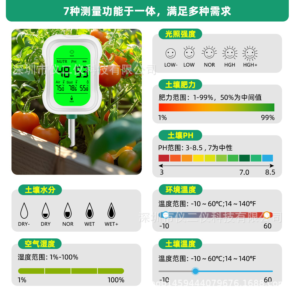 7 в 1 Измеритель почвы PH/температура/свет/плодородие почвы Детектор сада почвы