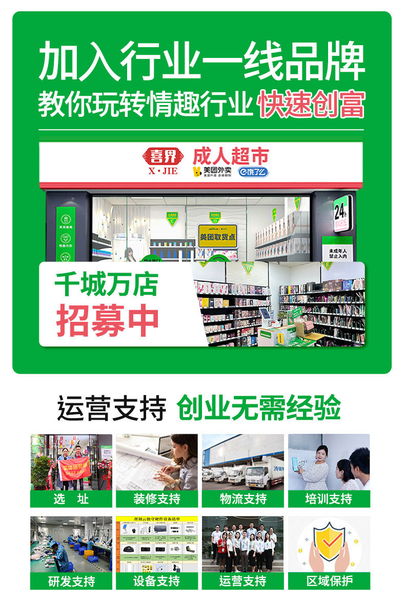 深圳市喜界生物科技有限公司成立于2019年,主营产品有成人体验馆招商加盟、实体娃娃、情趣倒膜、成人用品、情趣用品招商加盟、名器倒模、情趣无人仓、成人美团外卖店、情趣用品等。喜界作为全国加盟连锁店品牌,智能陪护娃娃4S店集销售、体验、休闲(娃友会所) 、私人订制、文化交流、售后服务于一体的新零售模式,专业的销售讲解,让每个消费者不仅可以看到产品,而且还能充分了解和切身体验产品,从而使每个消费者找到适合自己的产品。 喜界生物科技公司始终坚持自主研发与创新,拥有实力雄厚的技术研发中心,为公司发展提供源源不断的动力。2020年,喜界生物科技斥资扩大工厂,新迁到近10000平方的大型生产基地,2000平方物流中心和研发中心、1000平方品牌运营中心,打造娃娃行业合作连锁品牌,同时与多国众多行业品牌交流合作,定期互访,不断技术升级迭代,力求满足市场各类需求。拥有完整、科学的质量管理体系。深圳市喜界生物科技有限公司的诚信、实力和产品质量获得业界的认可。欢迎各界朋友莅临参观、指导和业务洽谈。