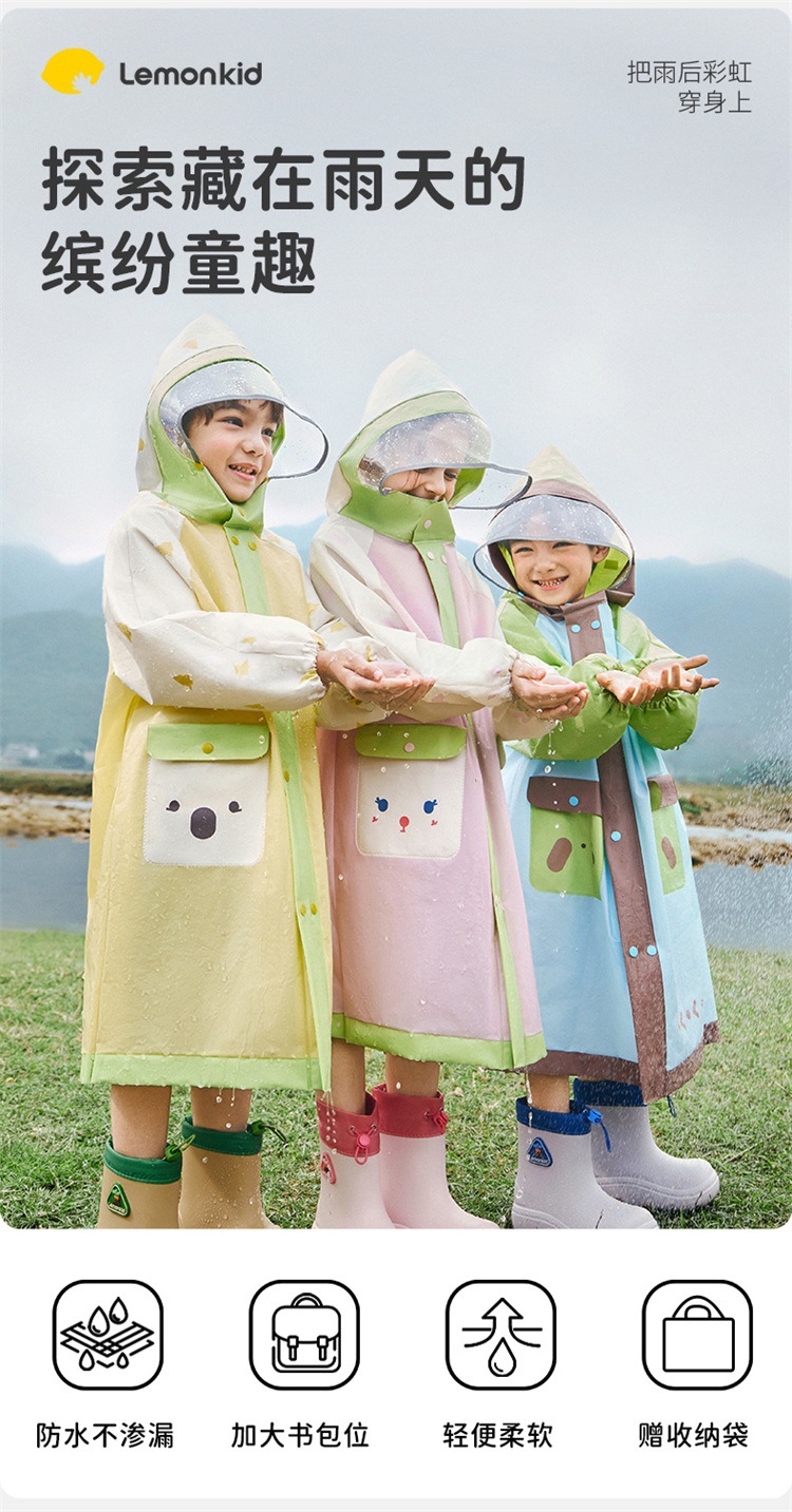 Детский дождевик Lemon Baby для мальчиков и девочек со скрытым отделением для школьного рюкзака, водонепроницаемый дождевик для школы, оптом.