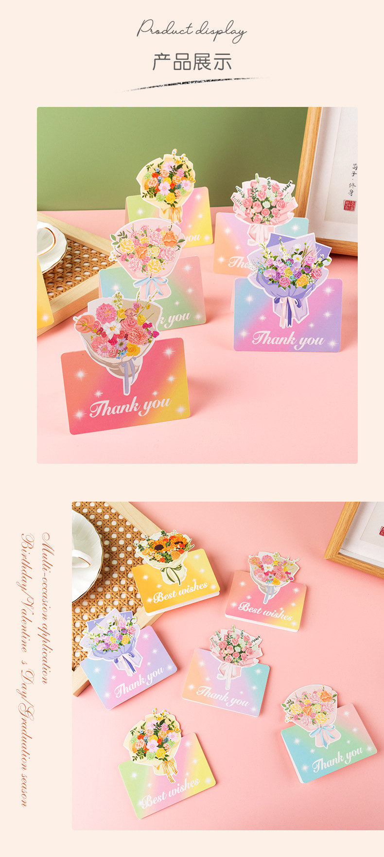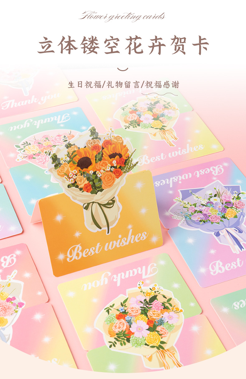 Трансграничные новые цветы спасибо благословение трехмерные поздравительные открытки поздравительные открытки