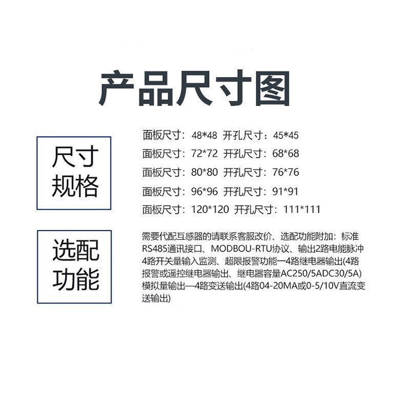 Умечания по размеру однофазного цифрового вольтметра/отверстия; Однофазный цифровой амперметр/уведомления по размеру открытия; Трехфазный цифровой вольтметр/размер отверстия; Трехфазный цифровой амперметр/размер отверстия; Трехфазный цифровой многофункциональный прибор/уведомления к размеру открытия; Трехфазный многофункциональный прибор питания с ЖК-дисплеем/уведомления по размеру открытия; Примечания по консультации по размеру открытия