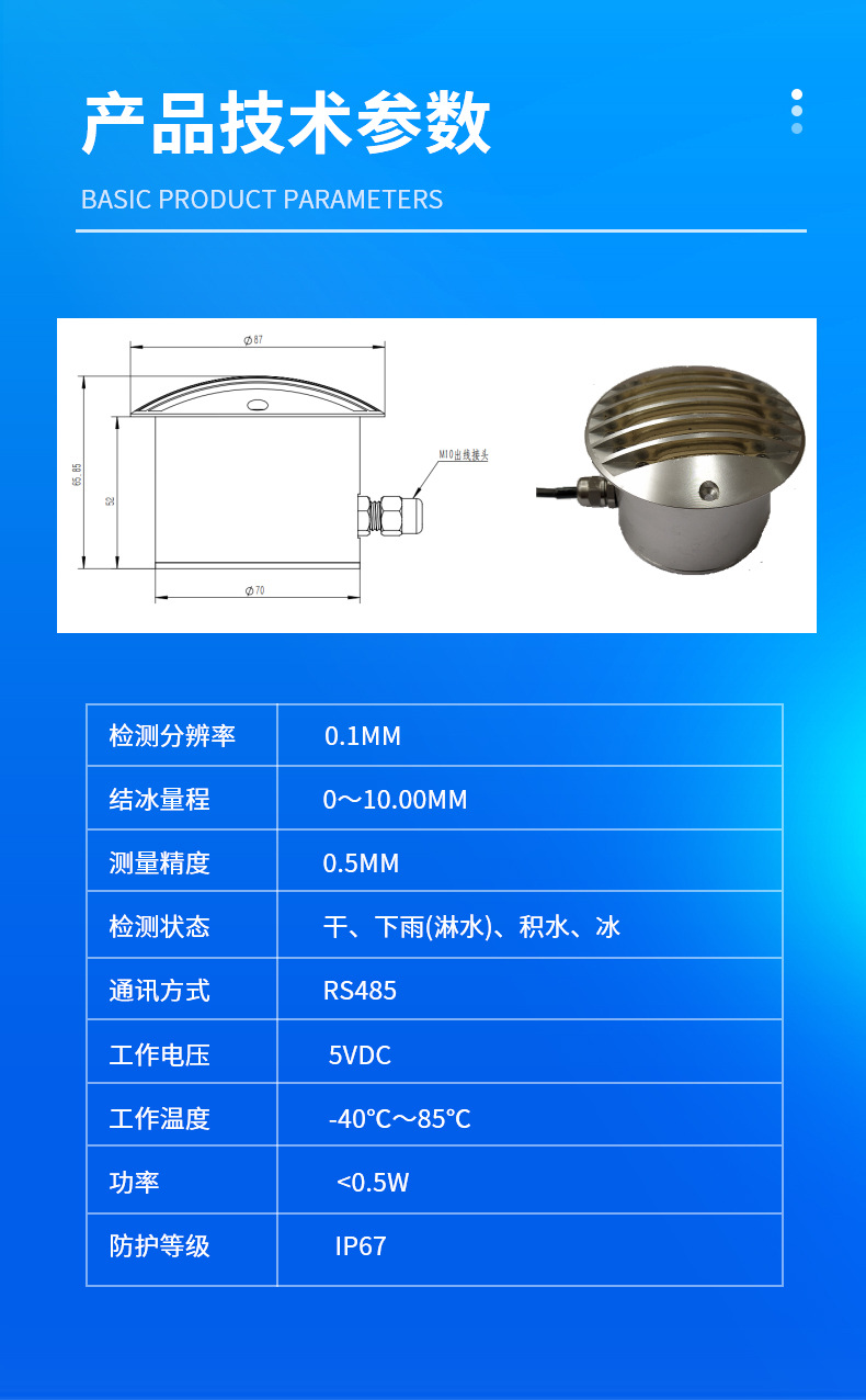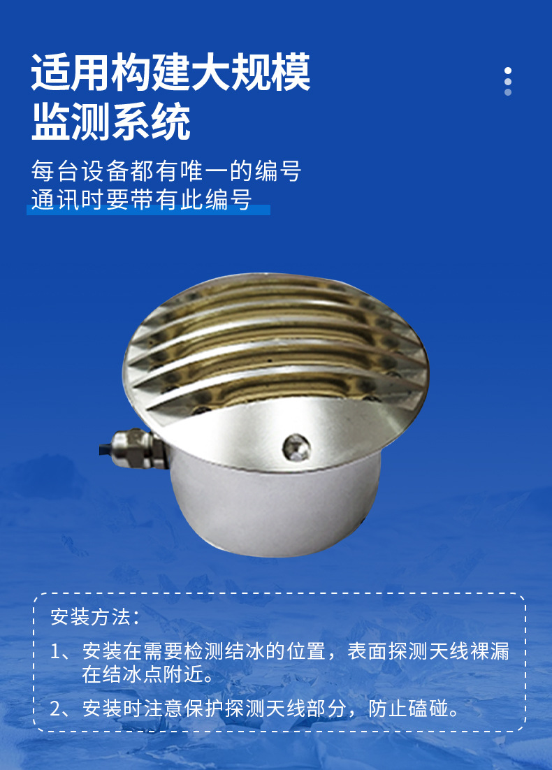 Датчик толщины замерзания линии передачи; Датчик толщины дорожного льда; Датчик толщины замораживания лопастей вентилятора; Датчик толщины льда Bridge; Система мониторинга замерзания конвейерной линии; Система мониторинга льда ветроэнергетики