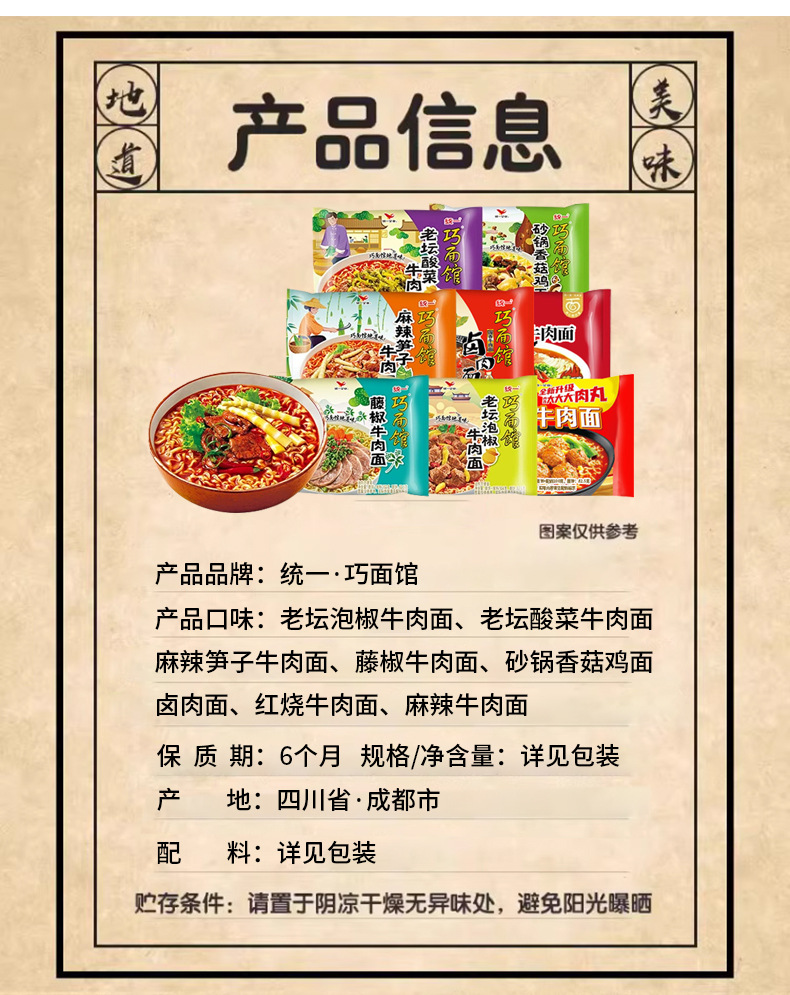 Зал локшины Цяо*Локшина из локшины из перцовой говядины*1 пакетик; Унифицированная*Пряная говяжья лапша*1 пакет; Унифицированная* Запеканка Гриб Куриная лапша*1 пакетик; Унифицированная* тушенная говяжья лапша*1 пакетик; Qiao Noodle Hall*Латанский Sauerkunum Явяжья лапша*1 пакет; Унифицированная*затушенная говяжья лапша*1 пакетик; Qiao Лапша Hall*Пряные бамбуковые лапши для стрельбы из говядины*1 пакетик; Зал лапши* Лоза, перцовая говядина, лапша
