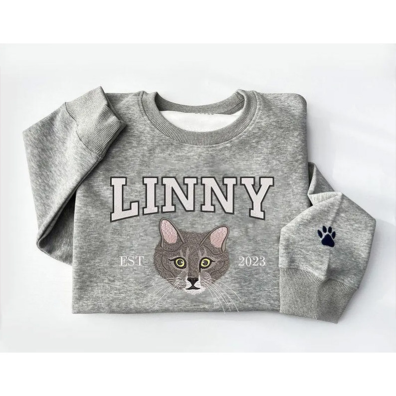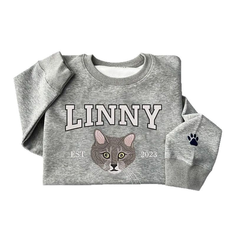 Вышитый портрет питомца имя с круглым воротником свитер щенок толстовка толстовка с вышивкой