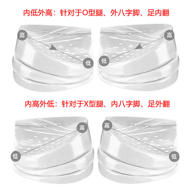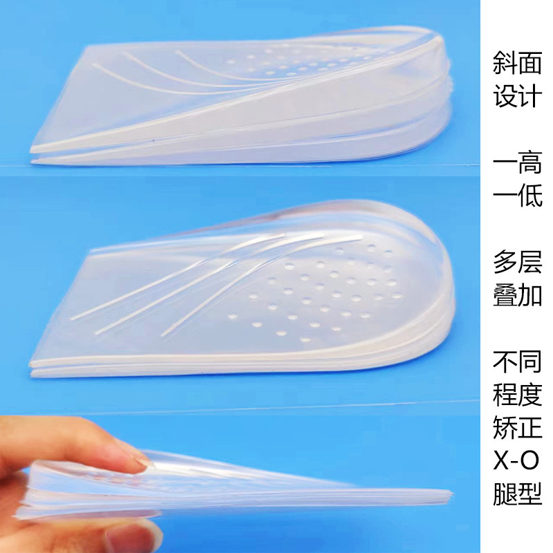 可自由叠加不同高度,针对不同程度的XO型腿症状,撕开底部透明膜后有粘性。